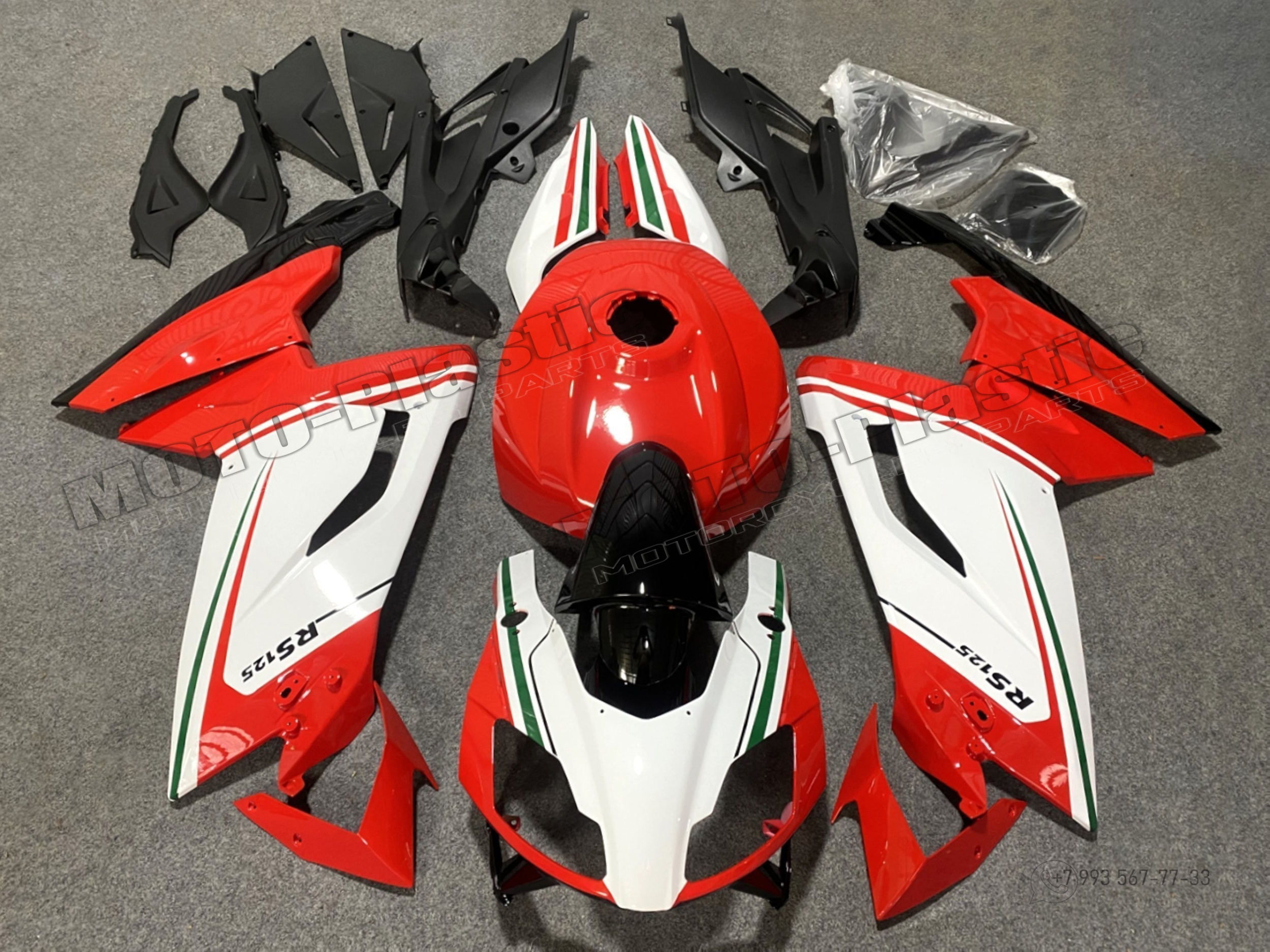 Комплект пластика Aprilia RS125 2006-2011 Черный Красный Зеленый Белый