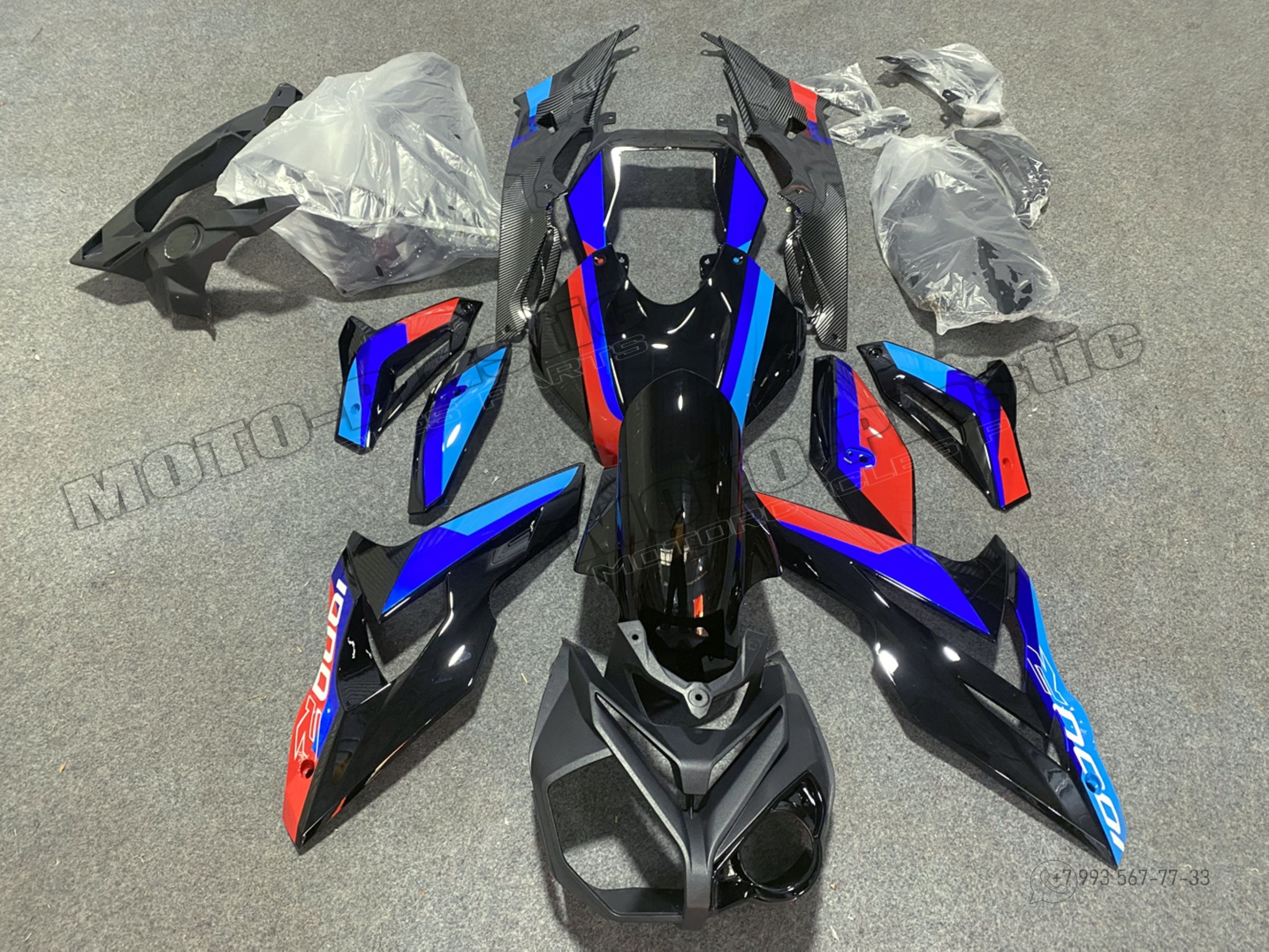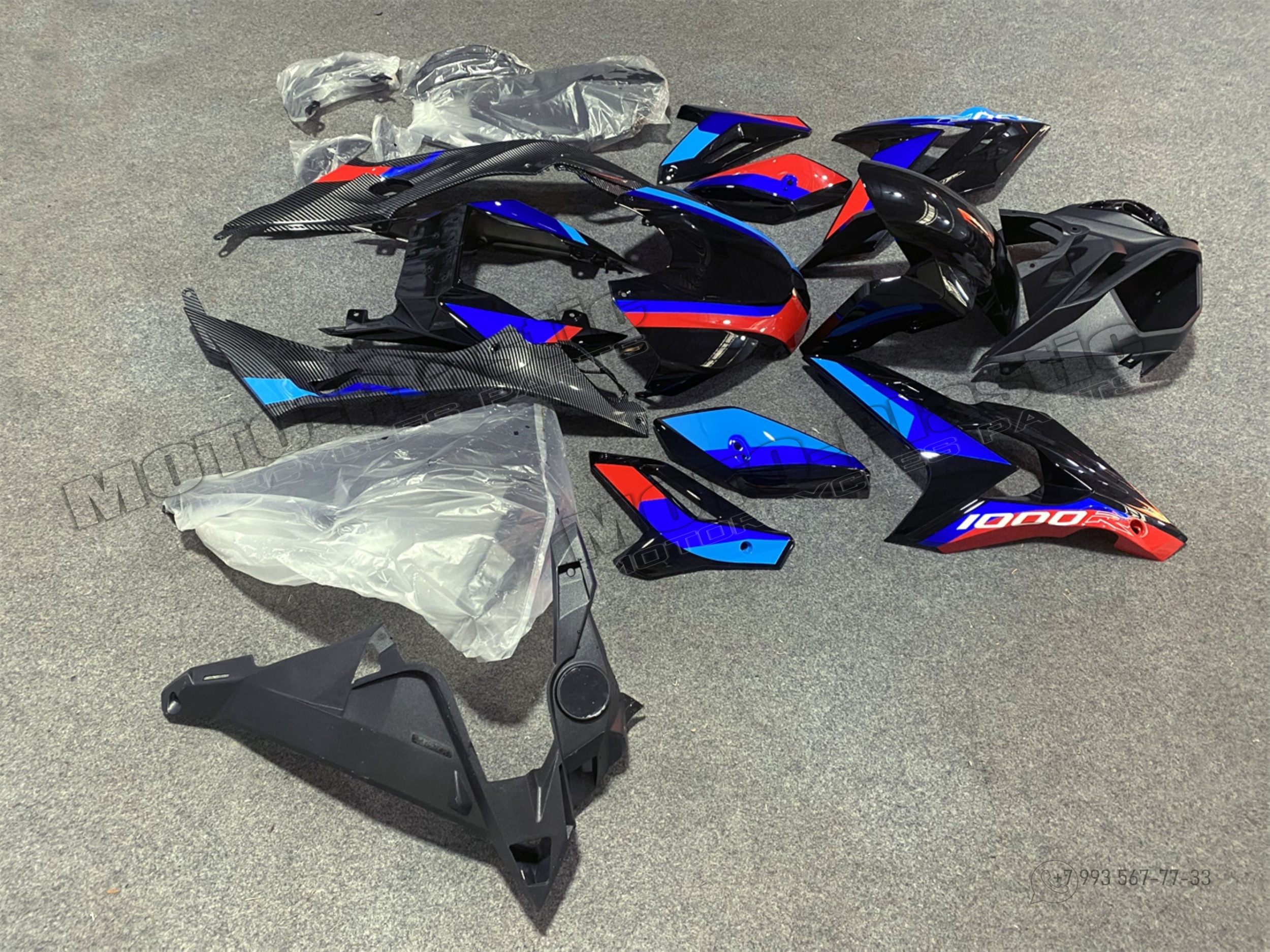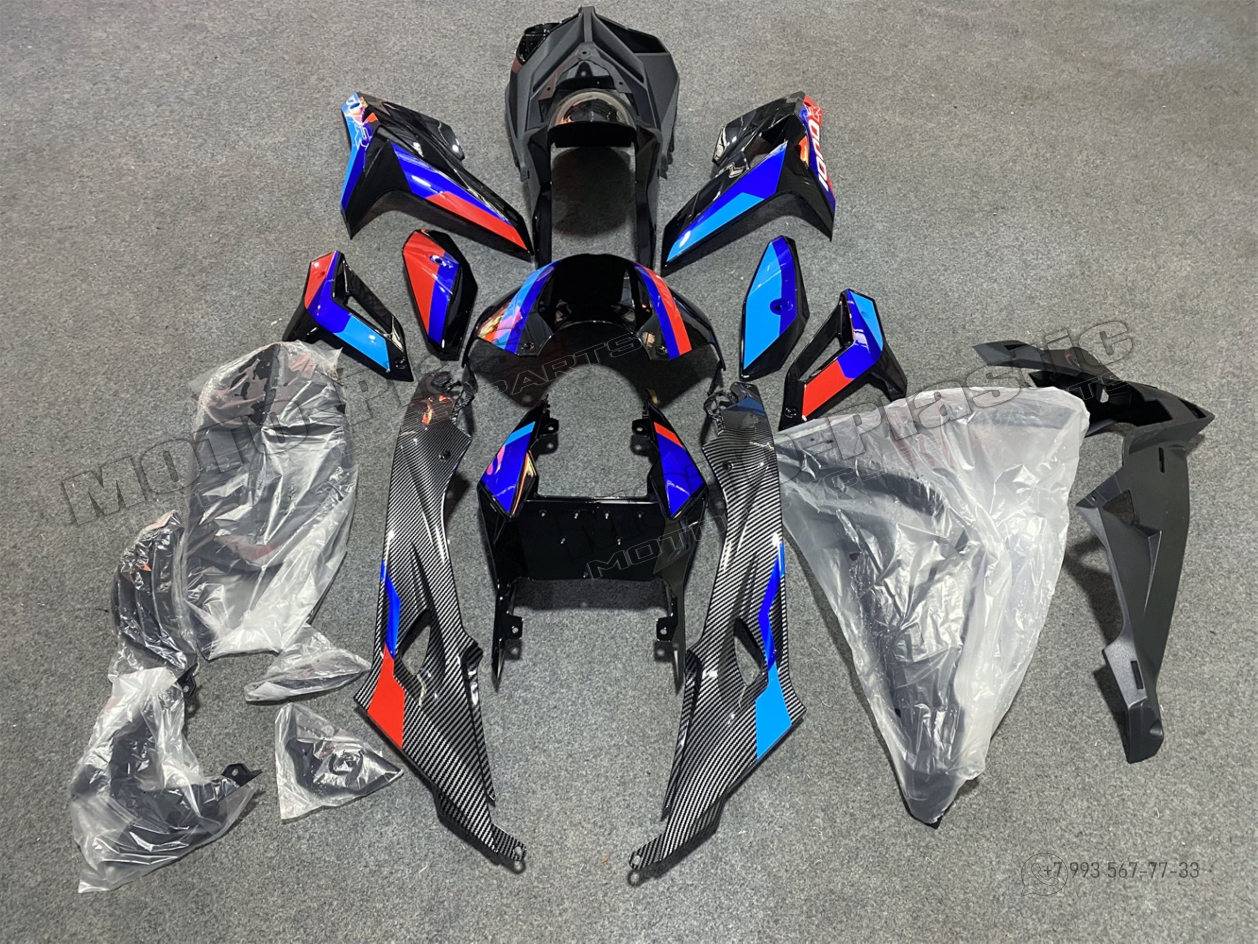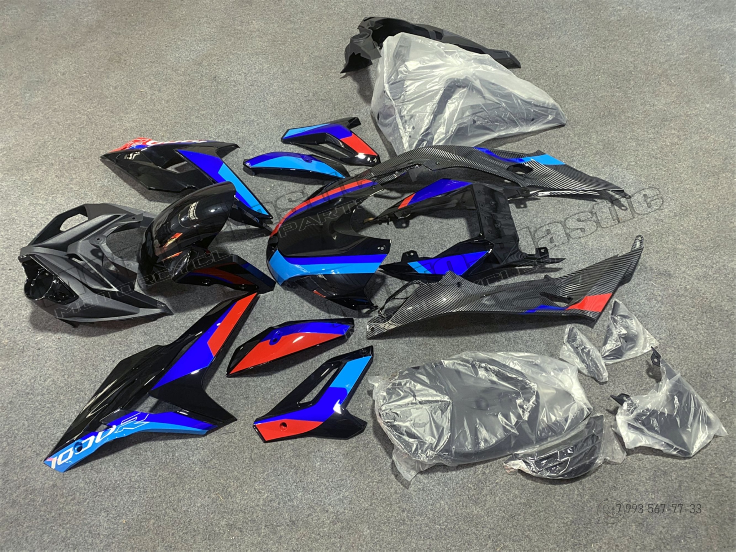 Комплект пластика BMW S1000R 2016. Аквапринт карбон (углеткань) Черный Синий Красный