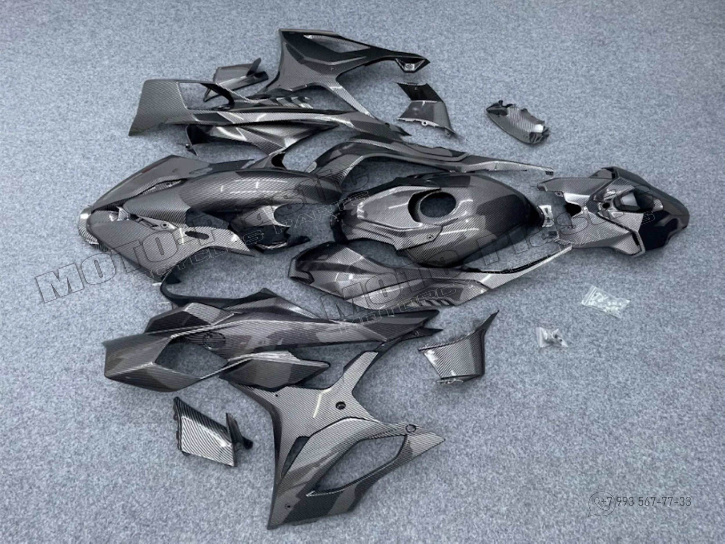 Комплект пластика BMW S1000RR 2025. / аквапринт карбон (углеткань) Карбон аквапринт Серый Черный