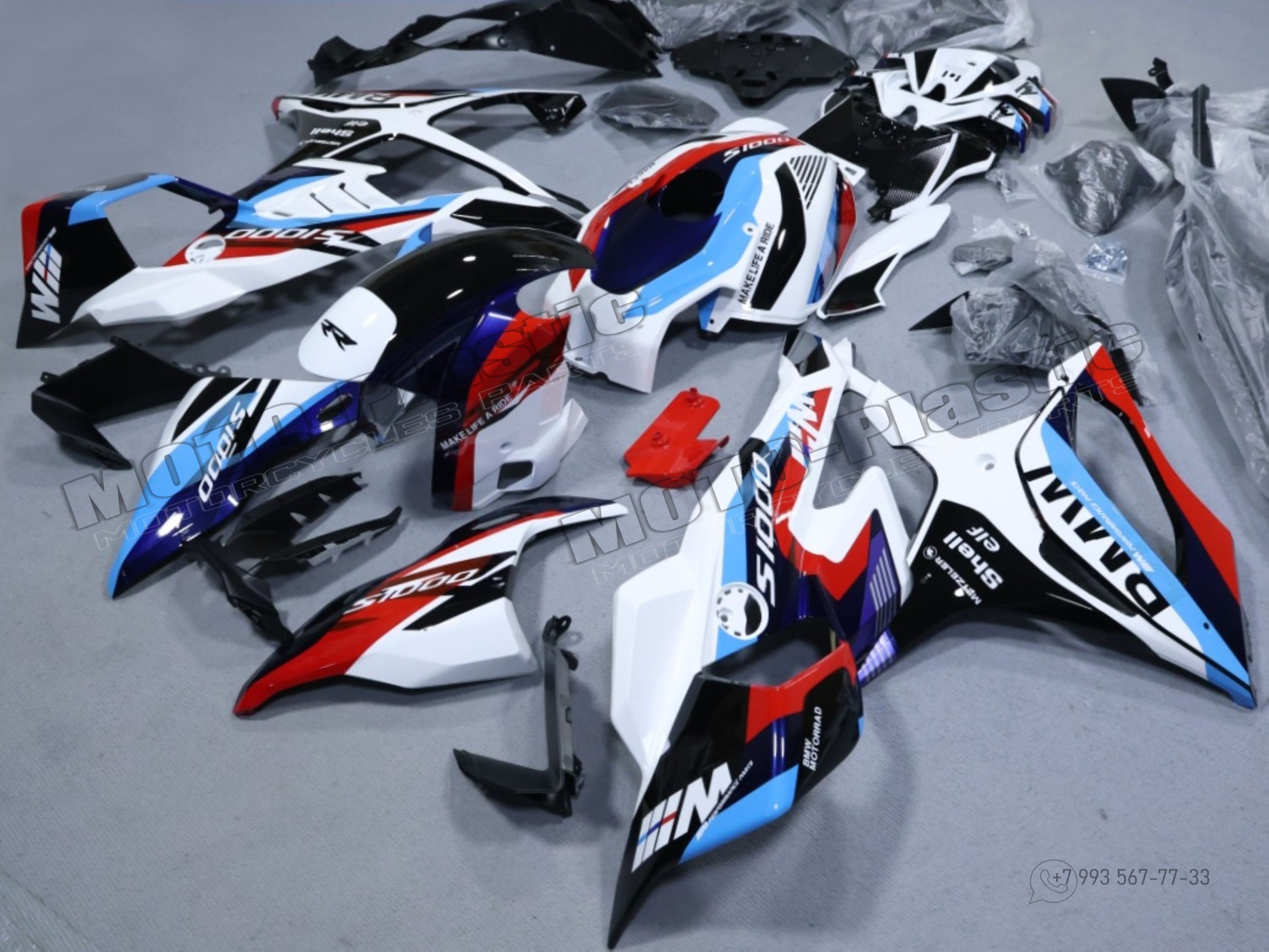 Комплект пластика BMW S1000RR 2025. Голубой Черный Красный Белый