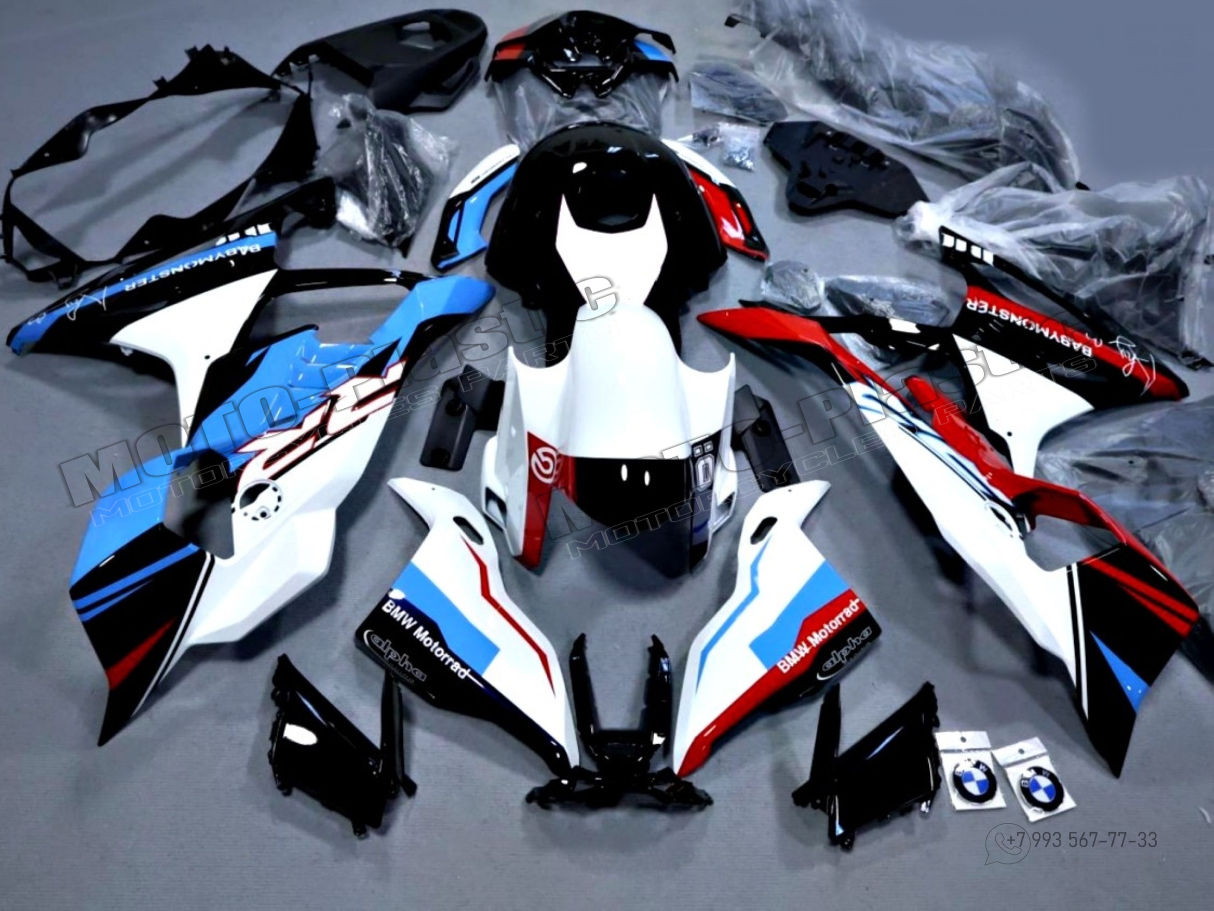 Комплект пластика BMW S1000RR 2025. Голубой Черный Красный Белый
