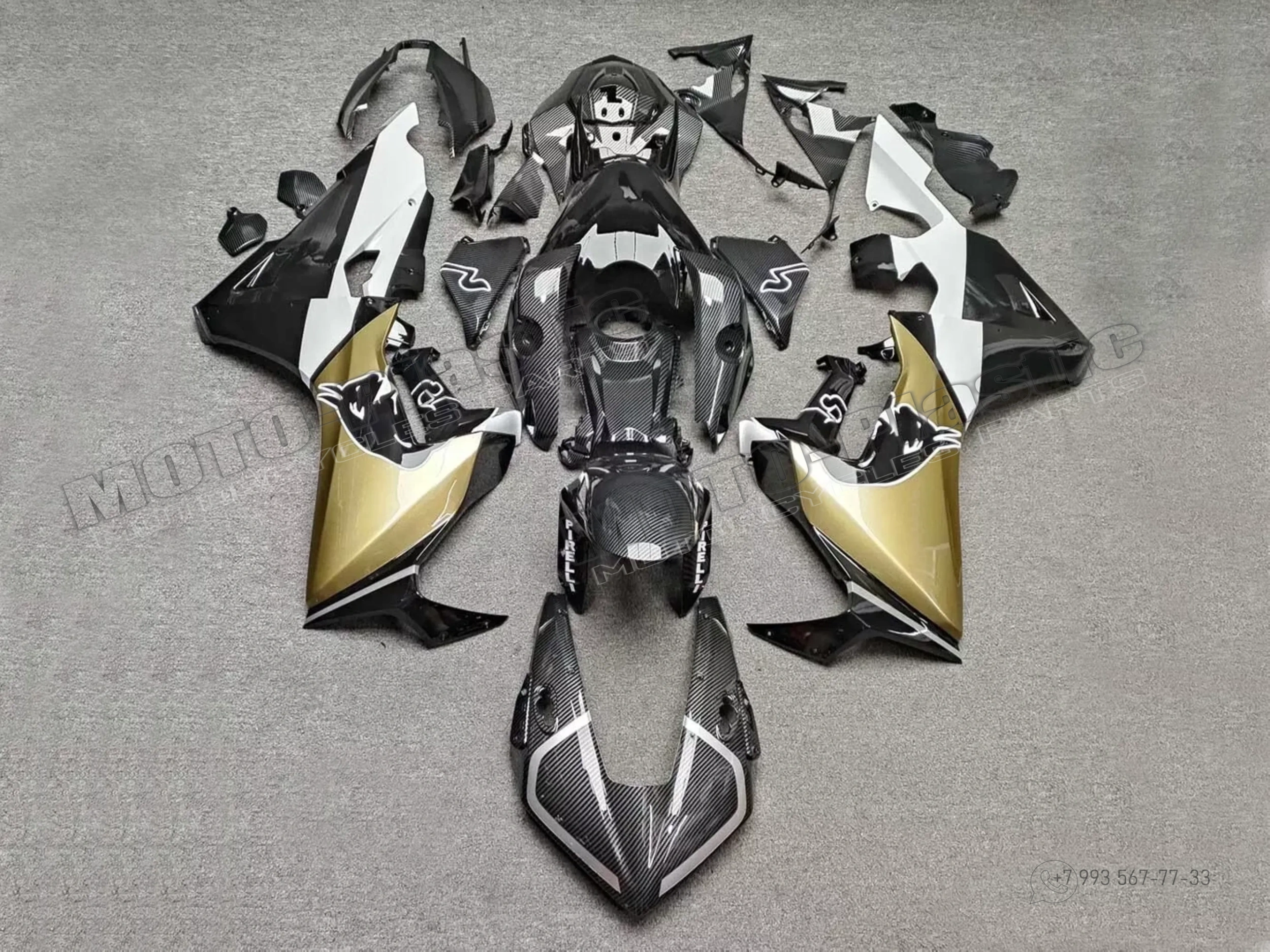 Комплект пластика Honda CBR1000RR 2017-2019. Аквапринт карбон (углеткань) Золотистый Карбон аквапринт Черный