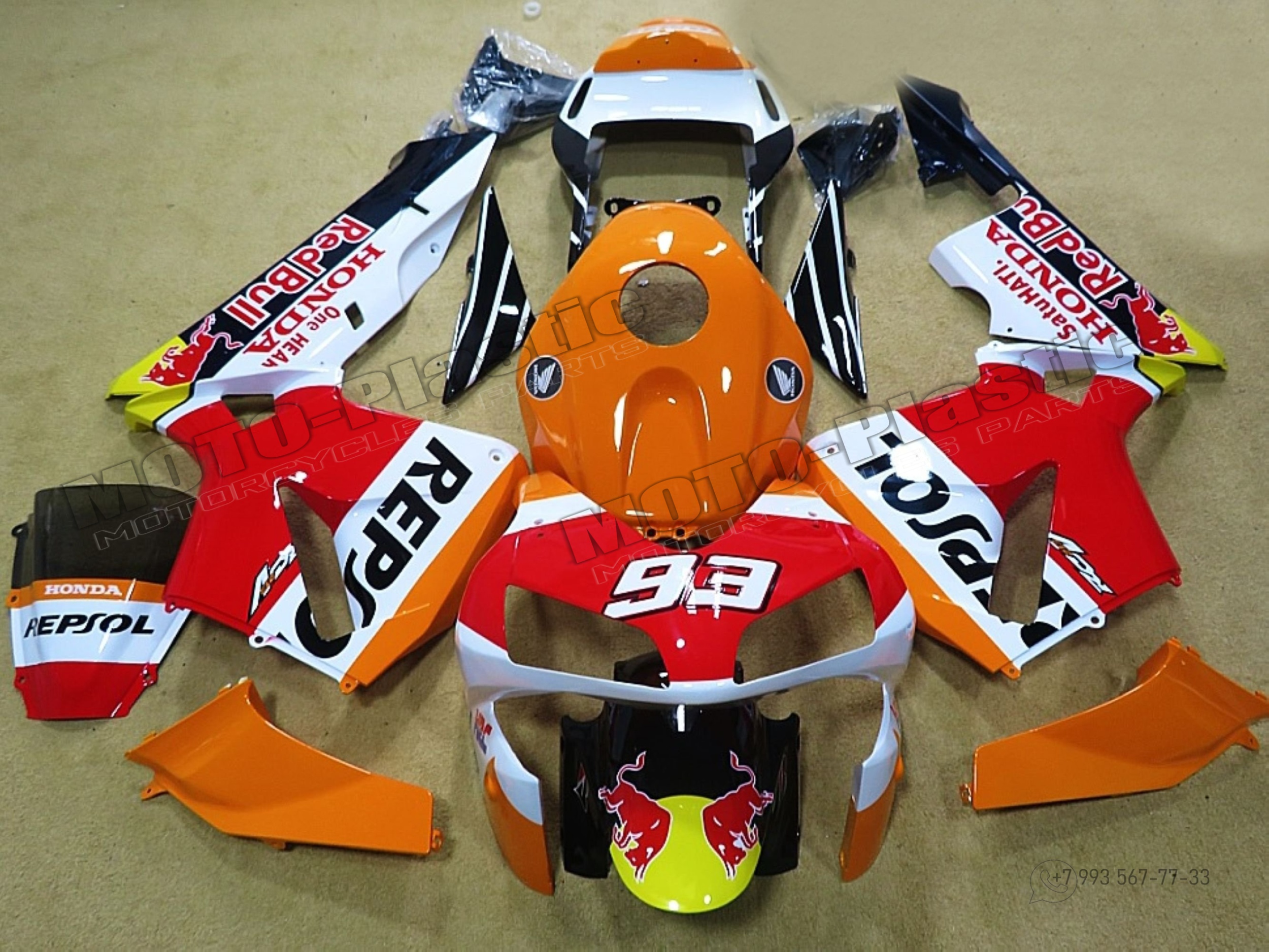 Комплект пластика Honda CBR600RR 2003-2004 Repsol Черный Оранжевый Красный Белый