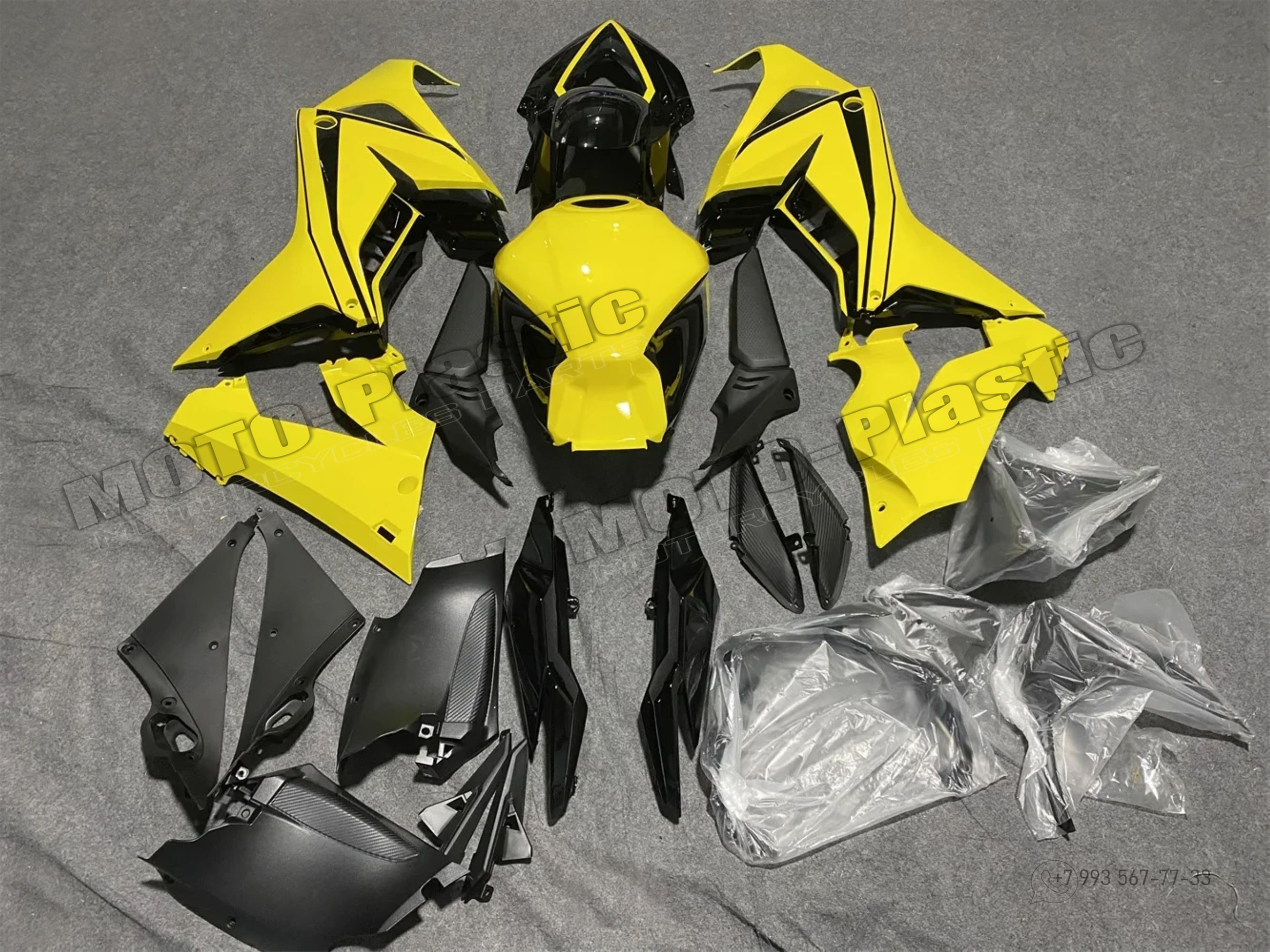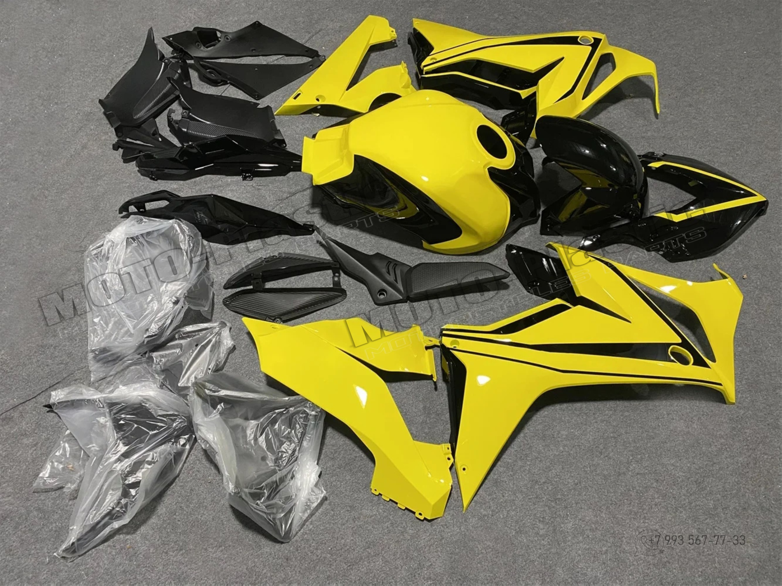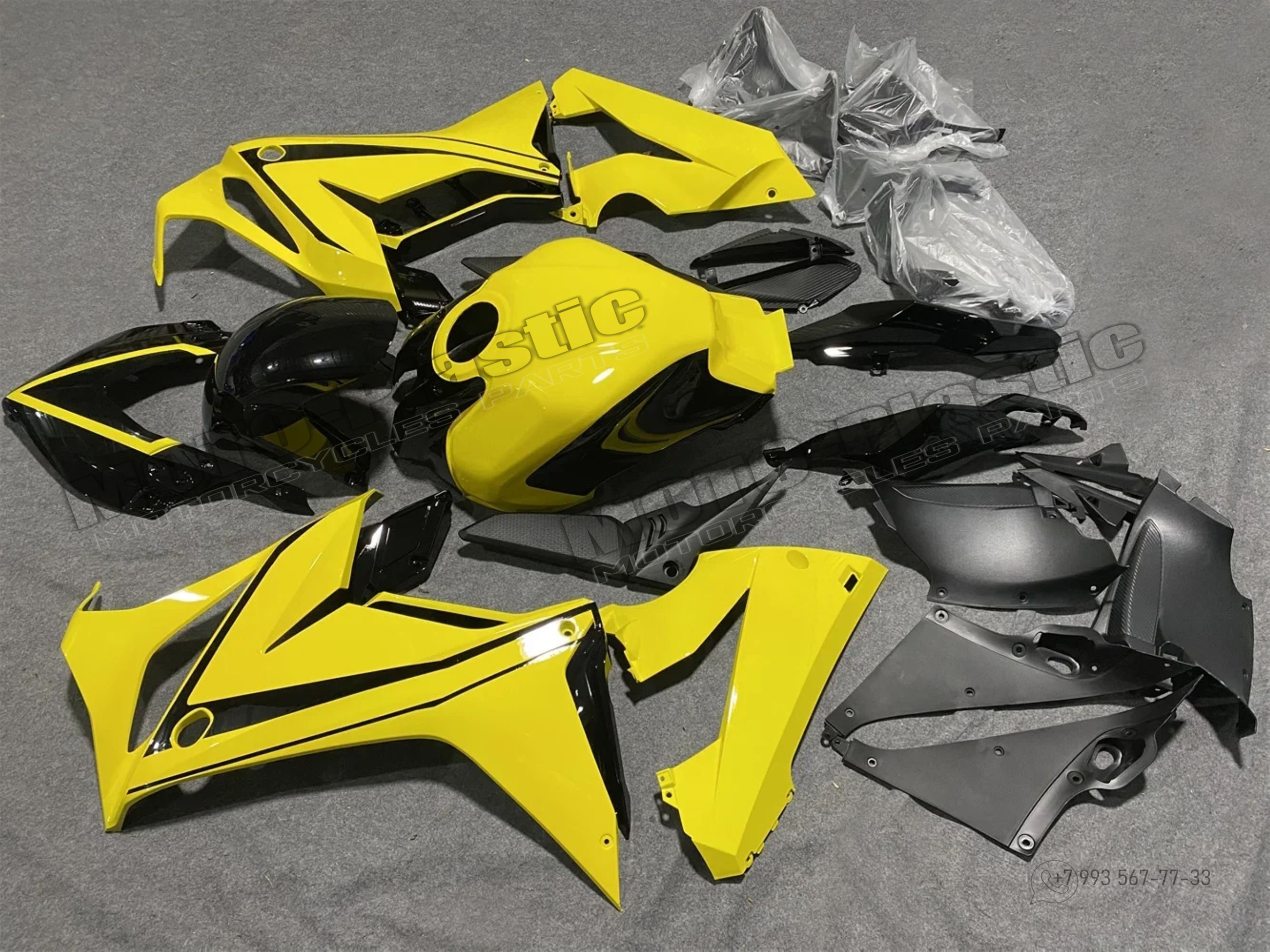 Комплект пластика Honda CBR650R 2021-2022. Черный Желтый