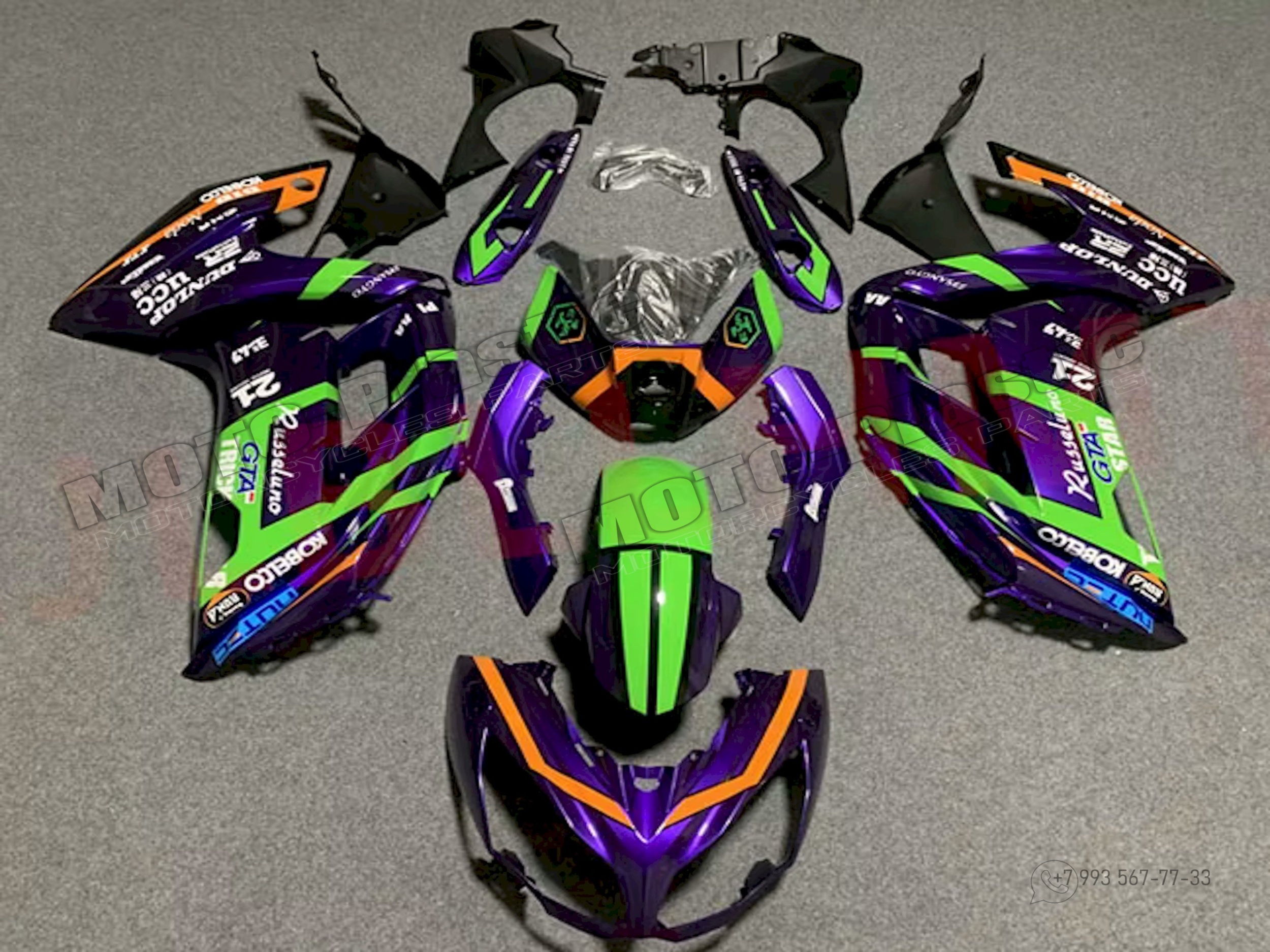 Комплект пластика Kawasaki Ninja 650R/ER-6f 2012-2016 Фиолетовый Синий Зеленый