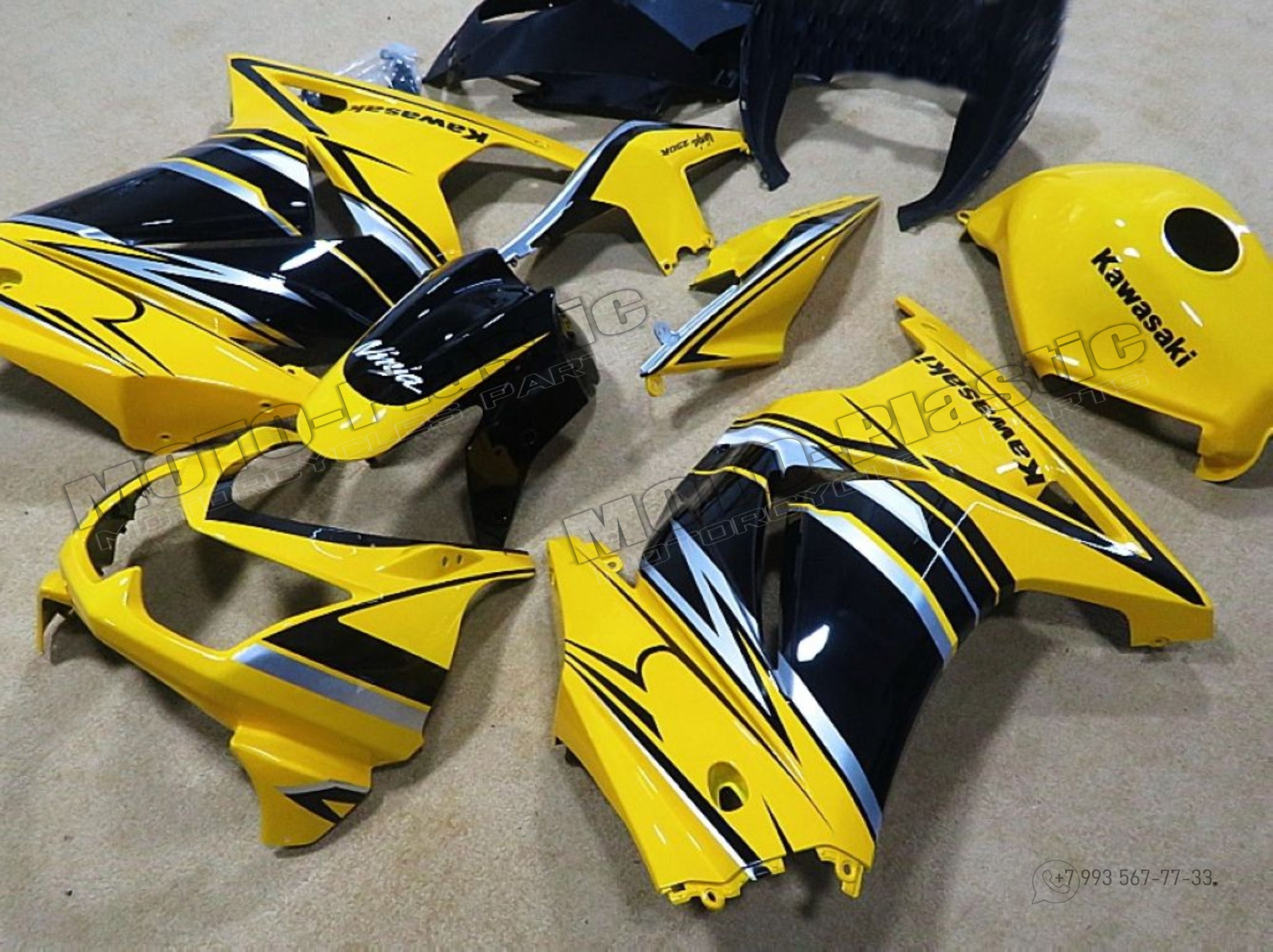 Комплект пластика Kawasaki Ninja 250 2008-2012 Белый Черный Желтый
