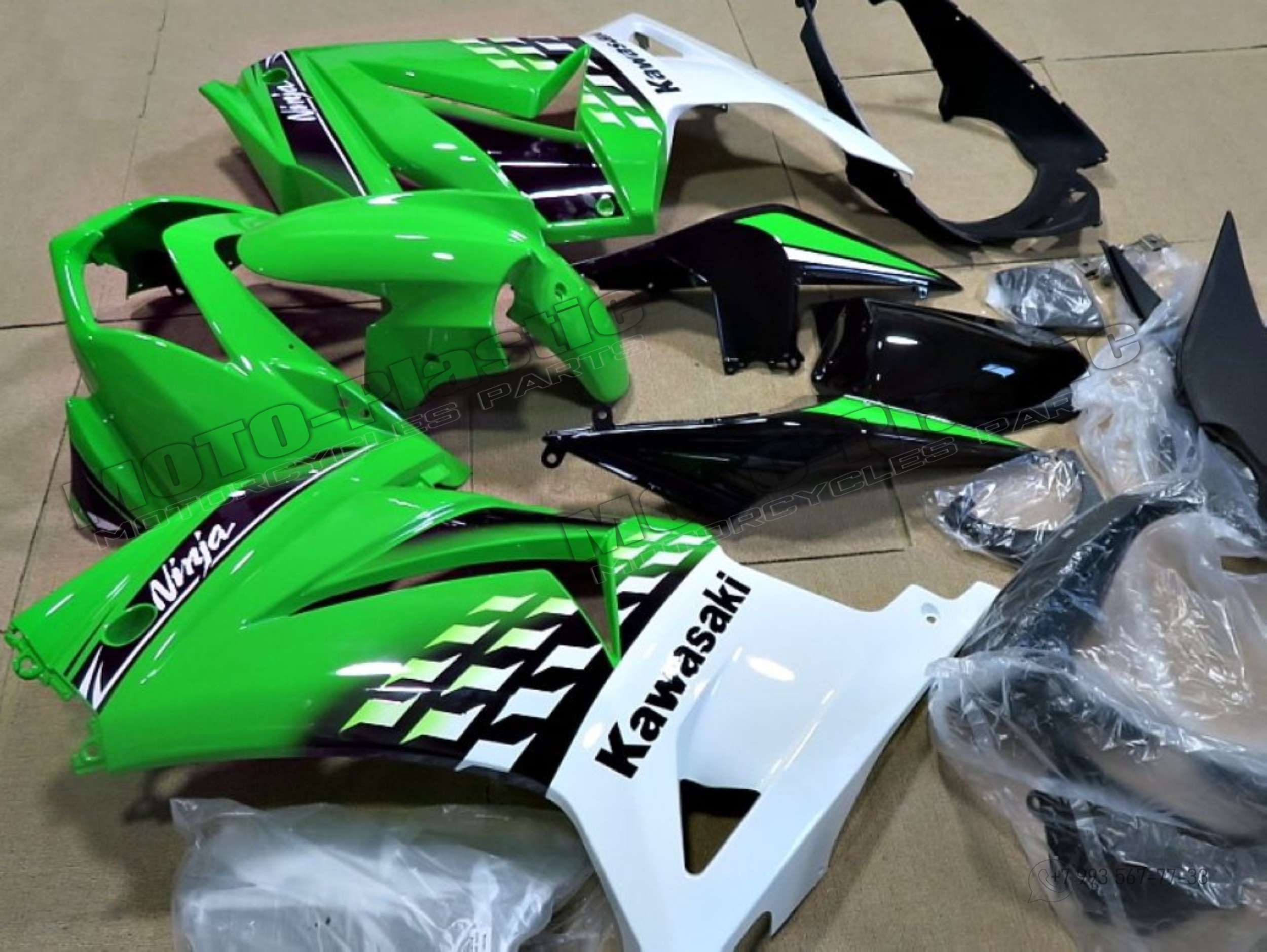 Комплект пластика Kawasaki Ninja 250 2008-2012 Черный Зеленый Белый