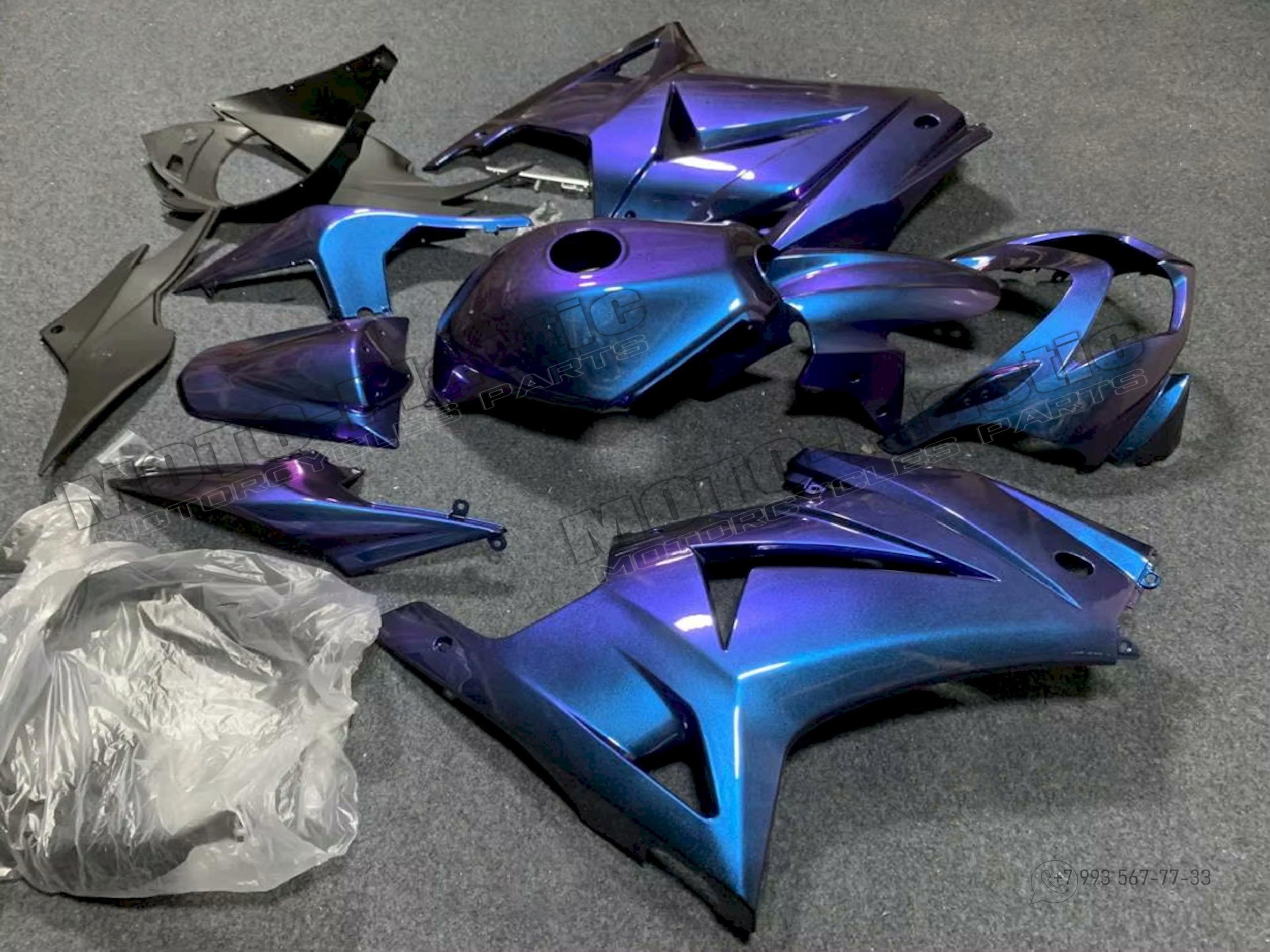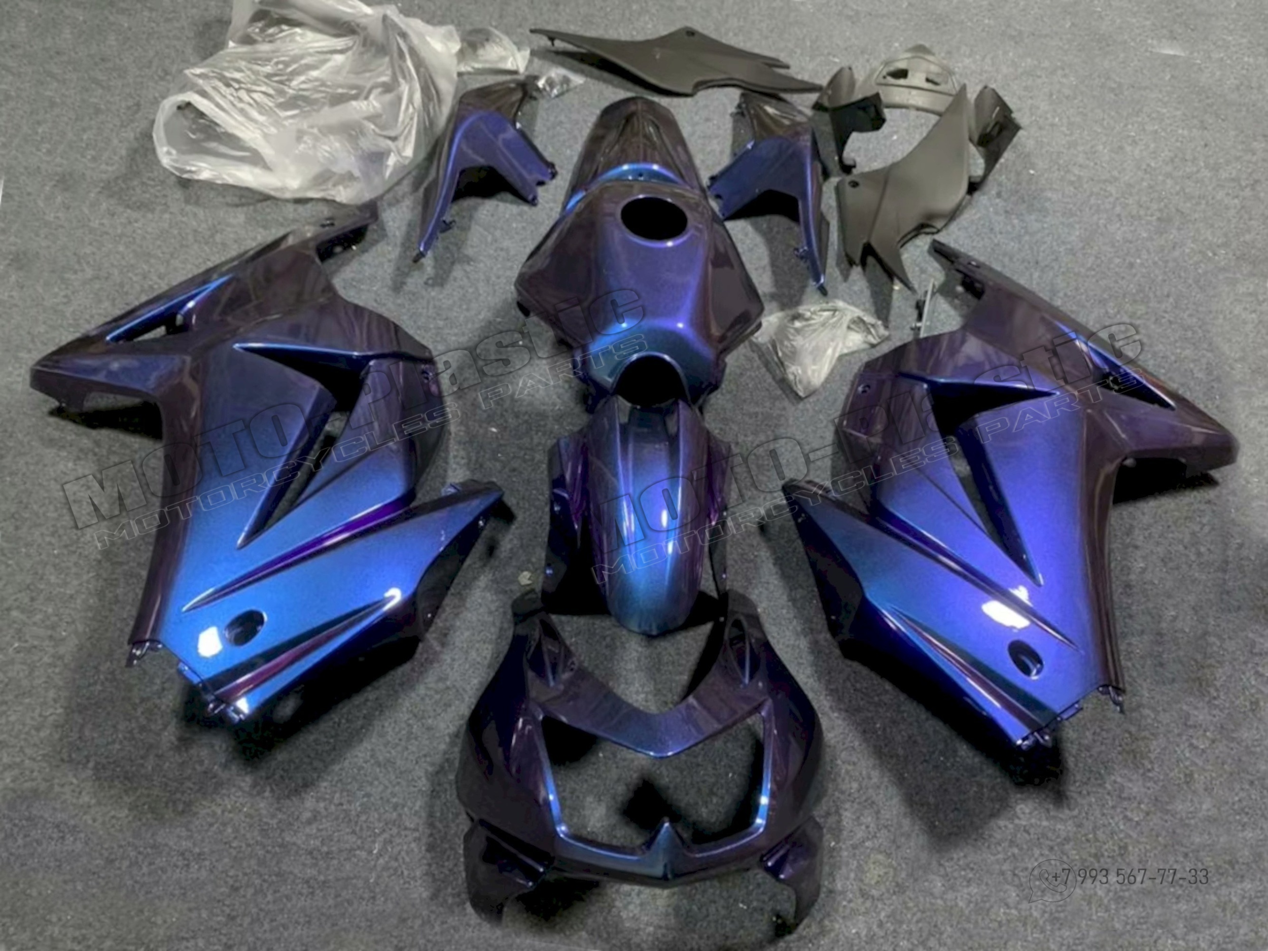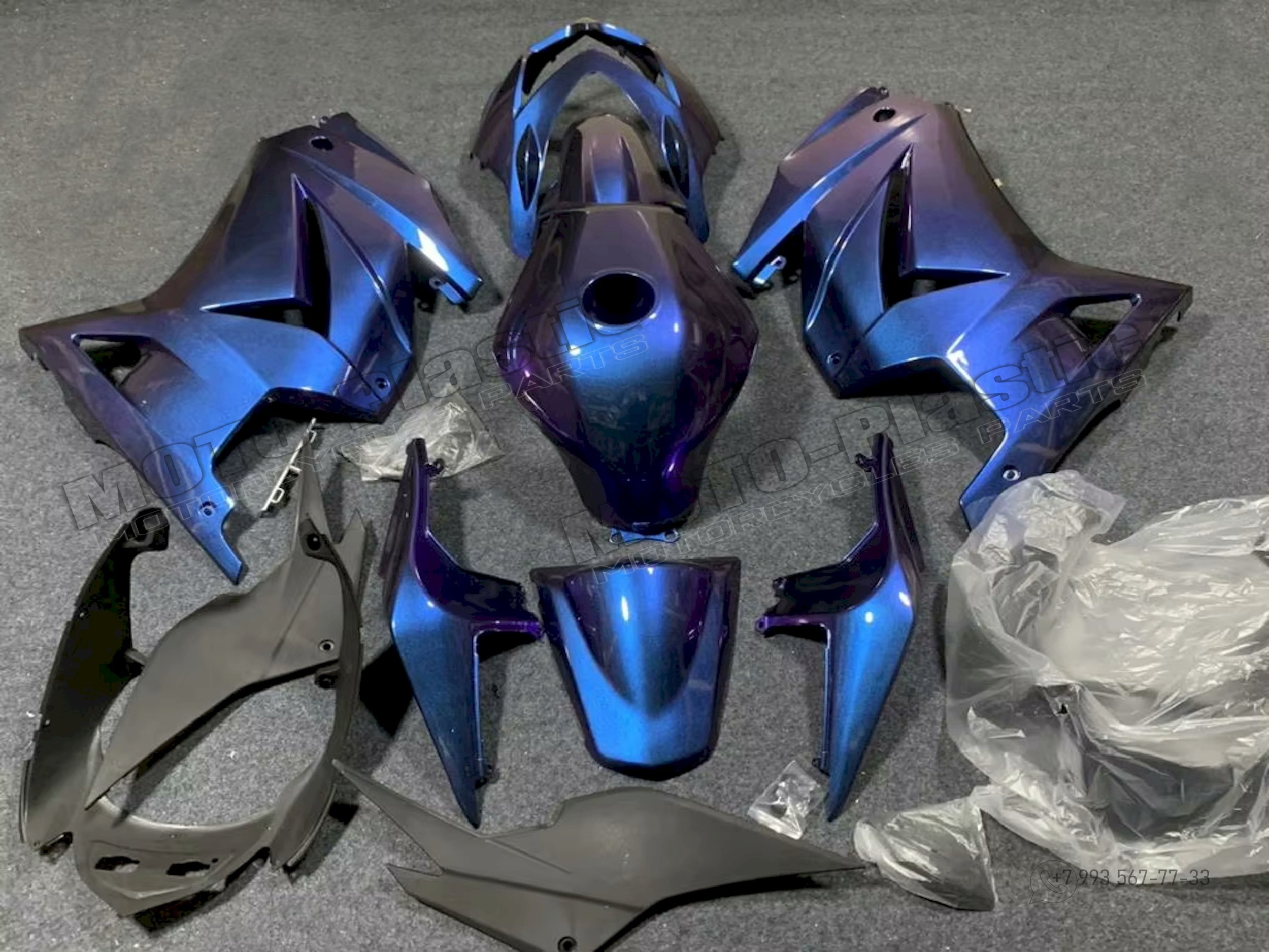 Комплект пластика Kawasaki Ninja 250 2008-2012 / хамелеон Фиолетовый Синий