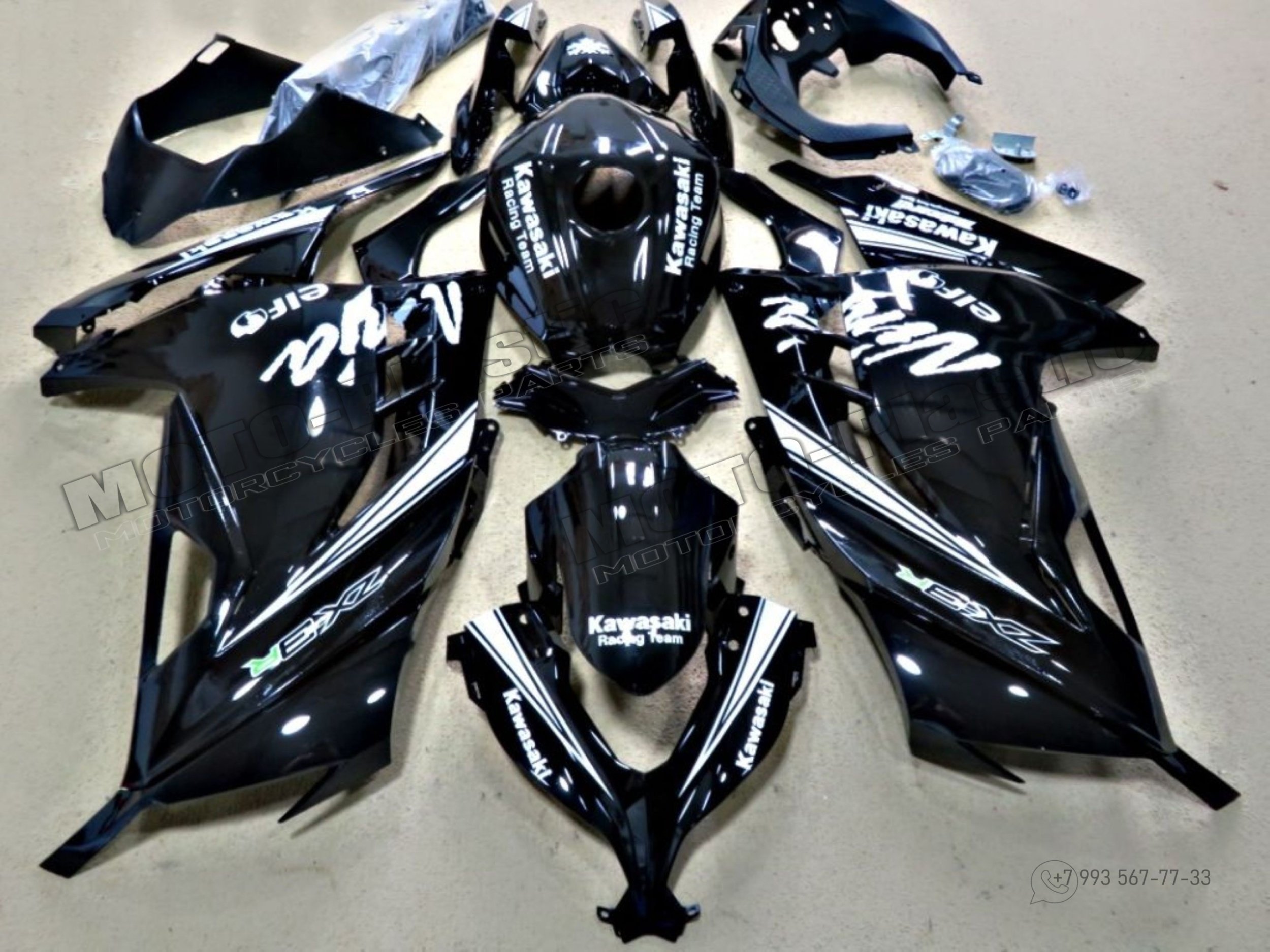 Комплект пластика Kawasaki ZX-300R 2013-2019 Черный Белый