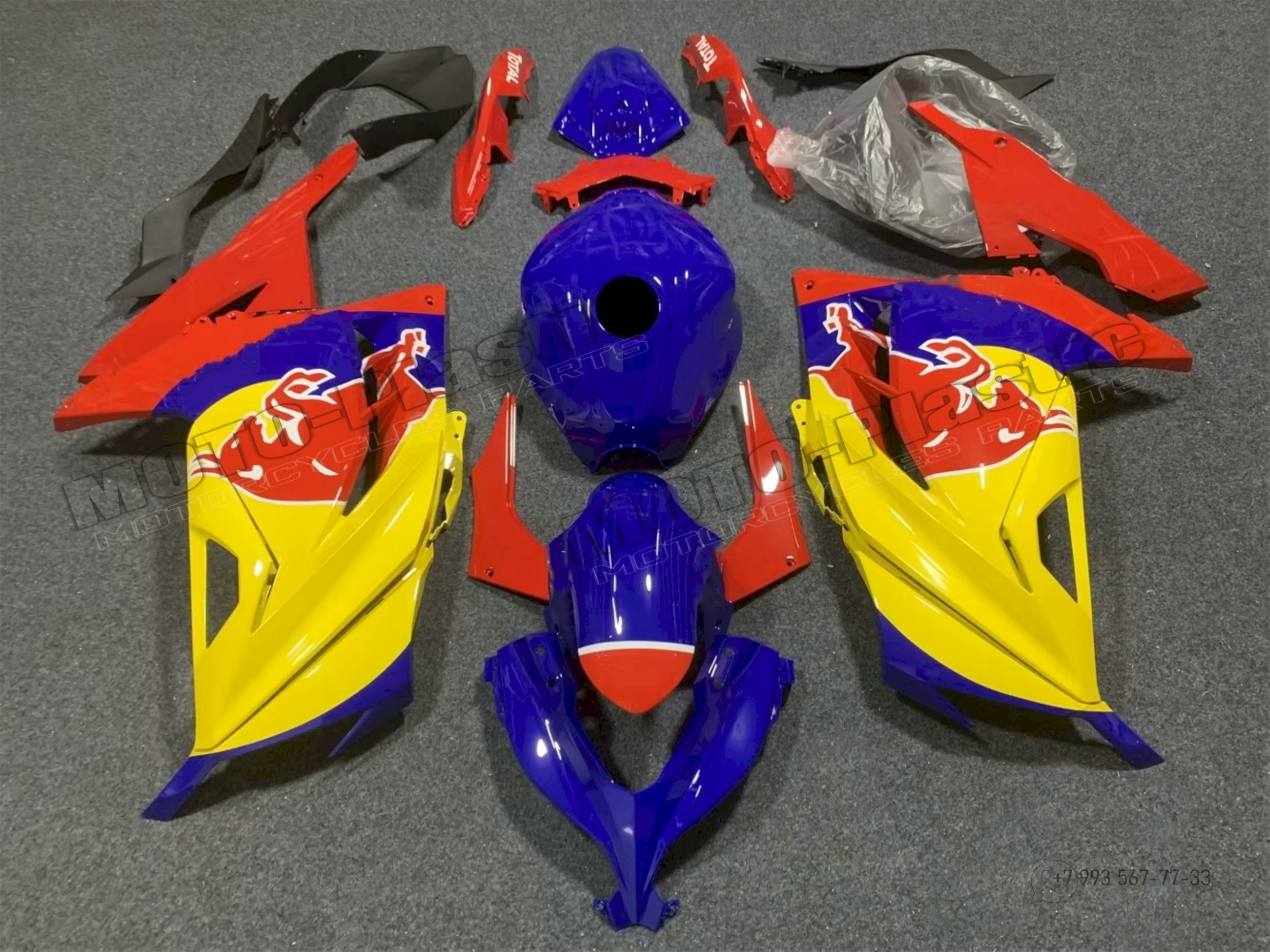 Комплект пластика Kawasaki ZX-300R 2013-2019 Red Bull Синий Красный Желтый
