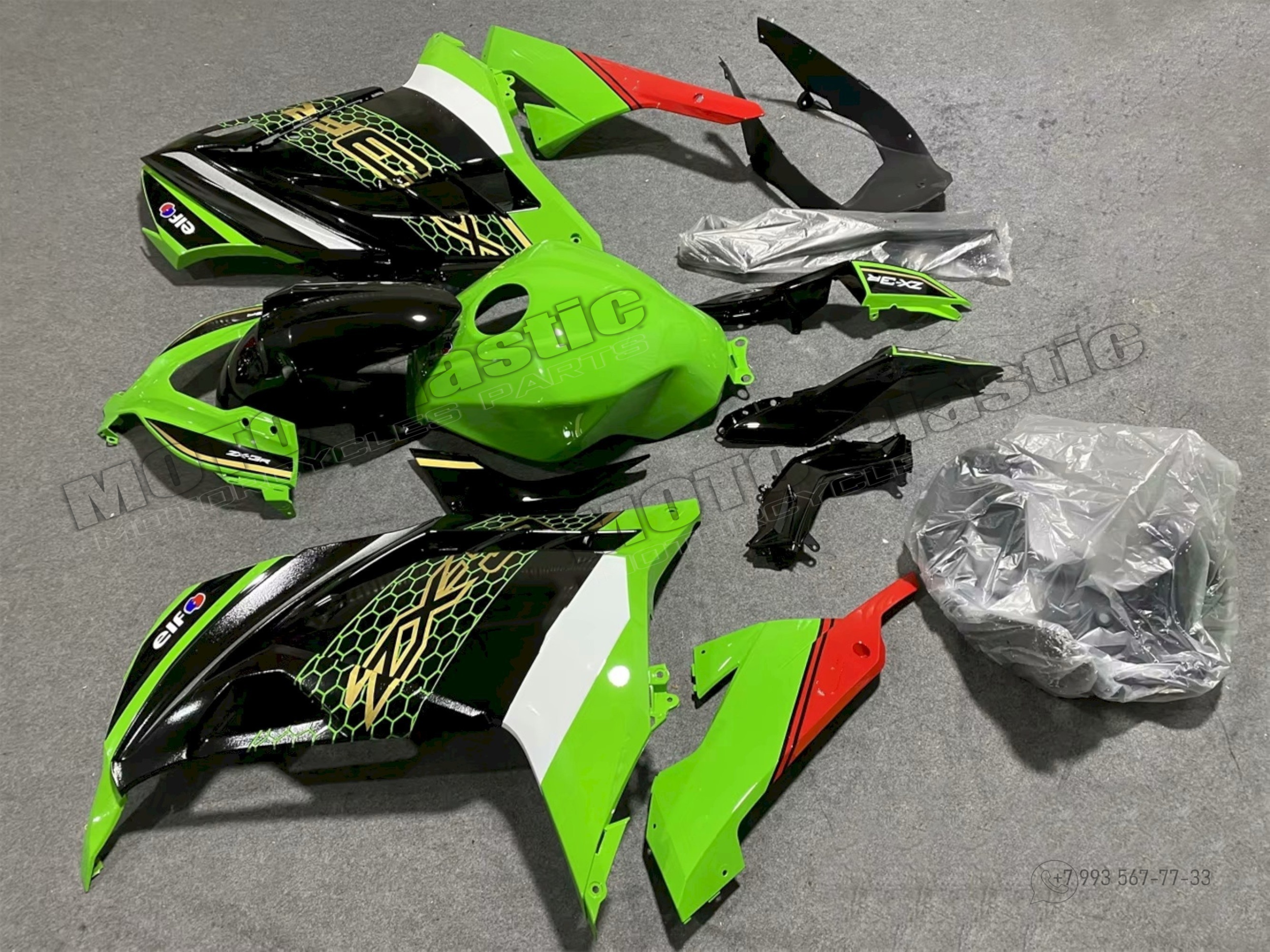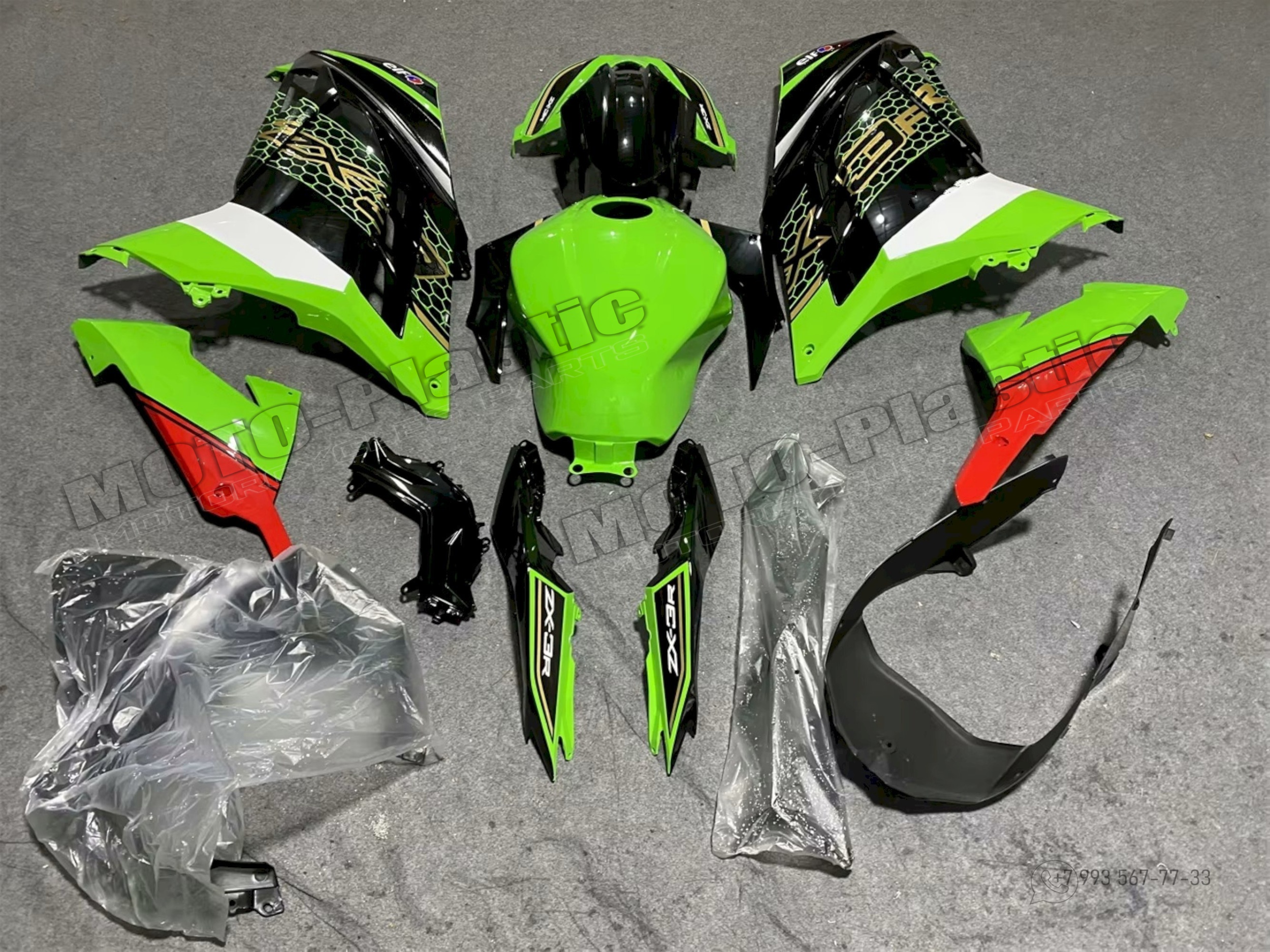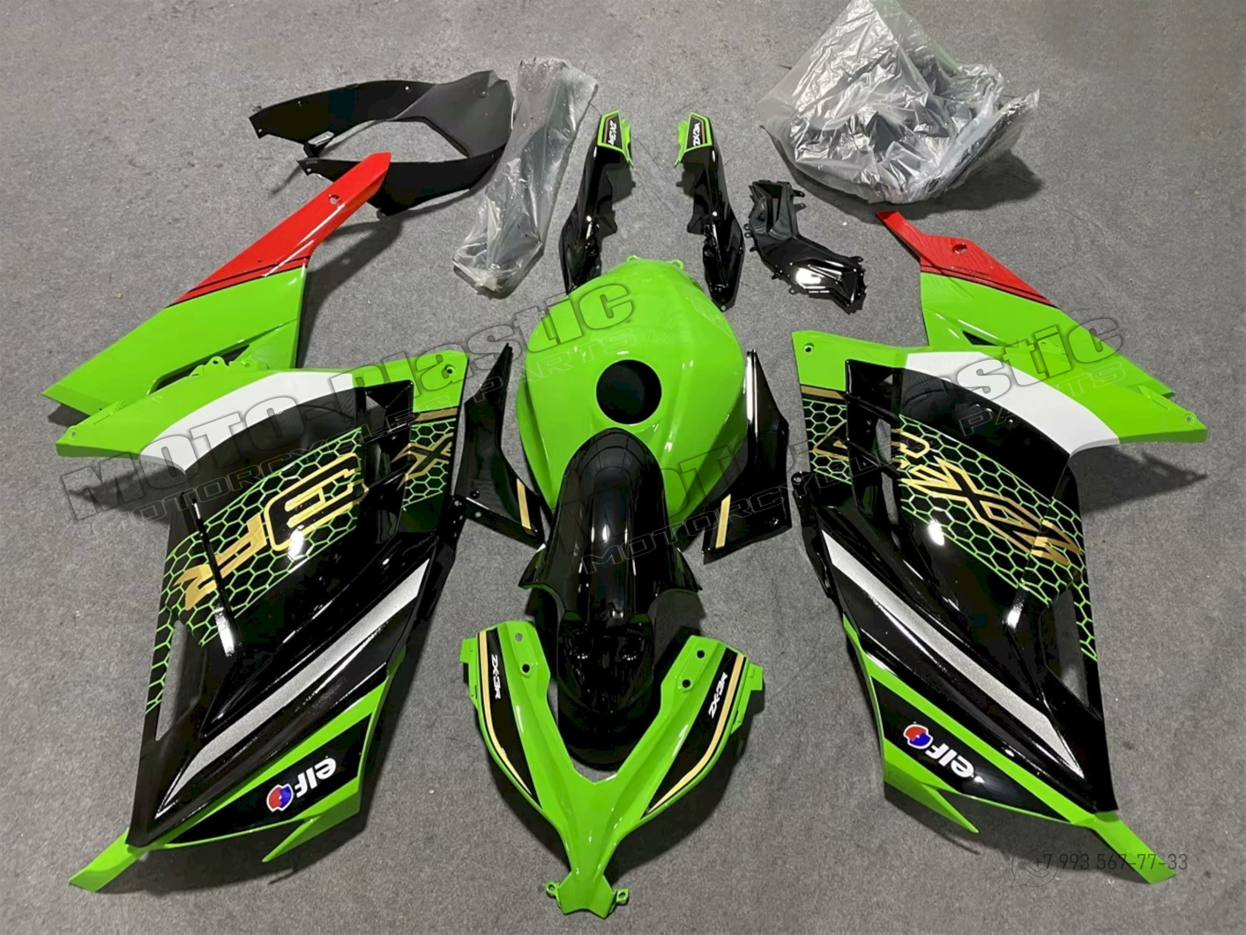 Комплект пластика Kawasaki ZX-300R 2013-2019 Белый Зеленый Красный Черный