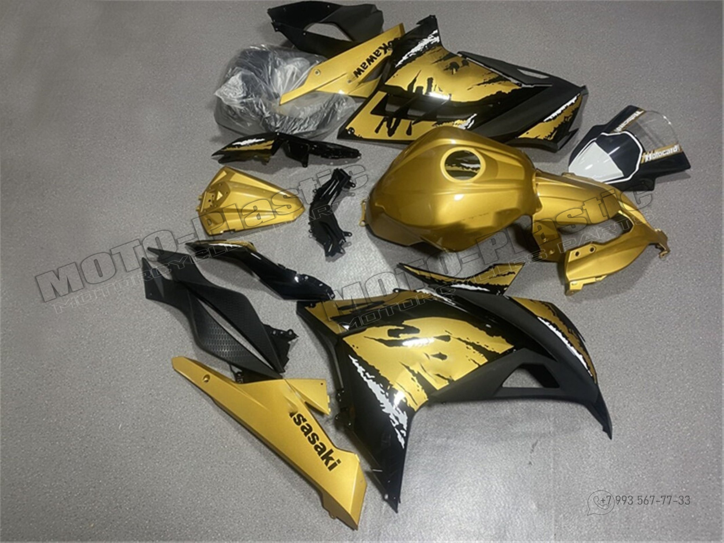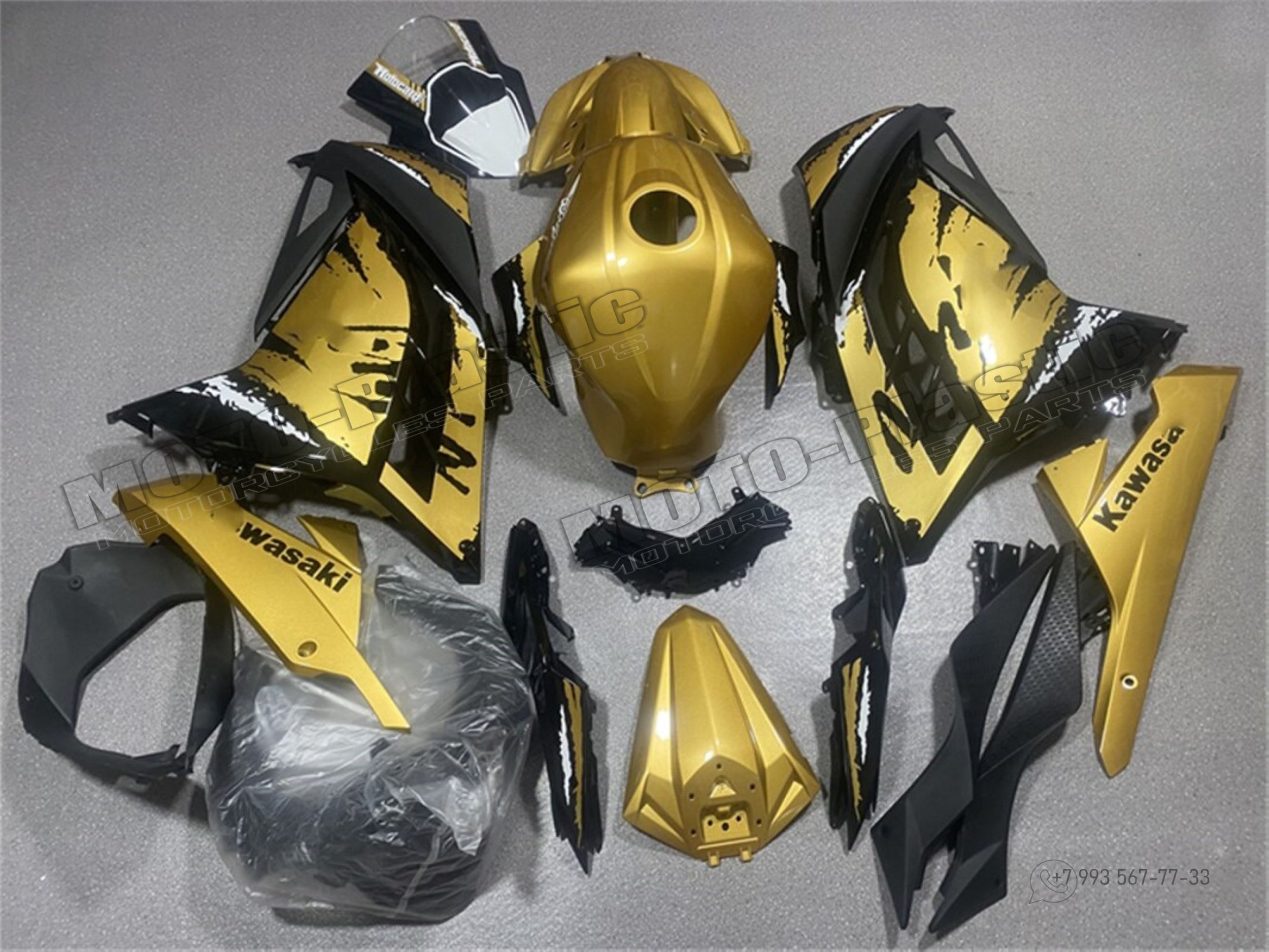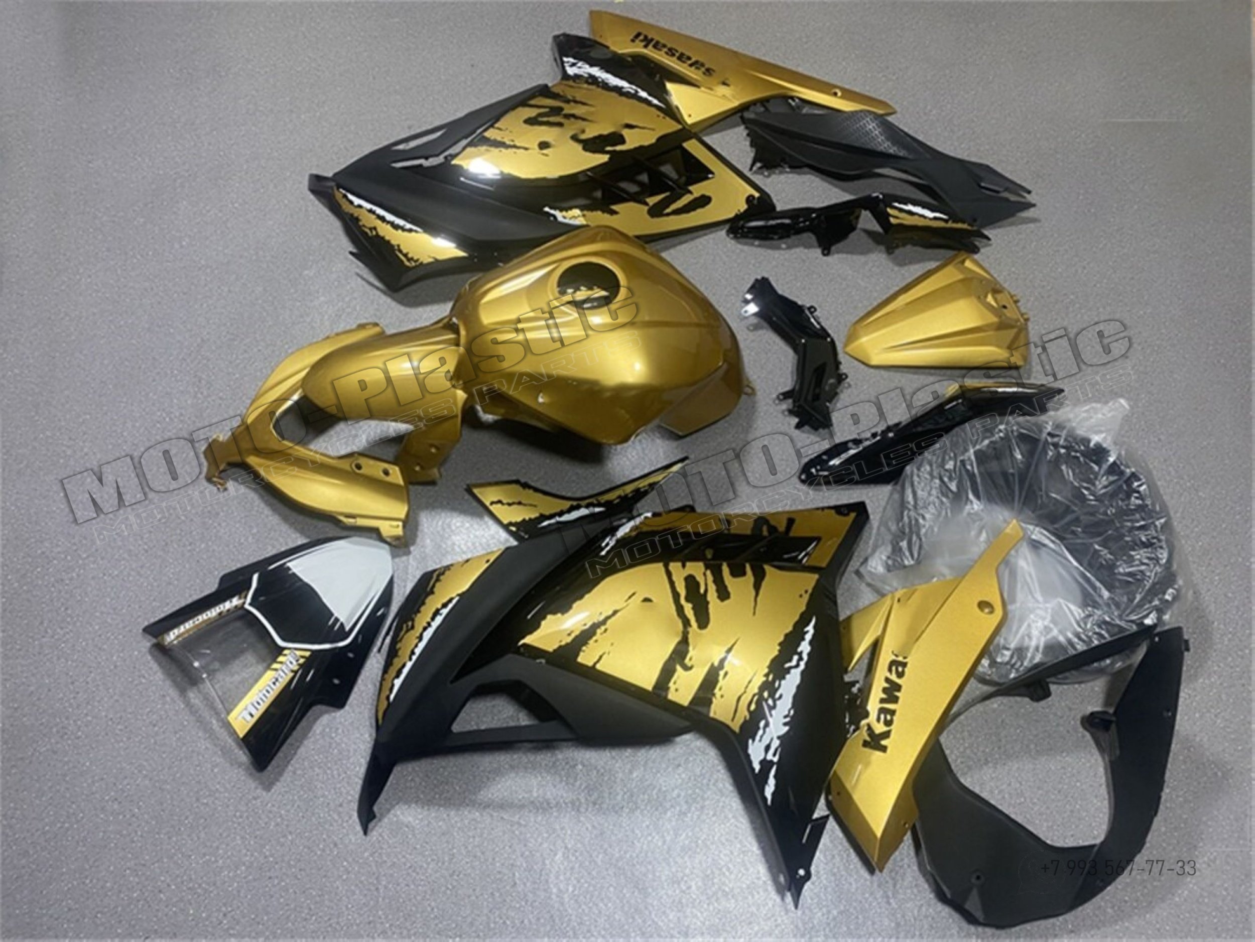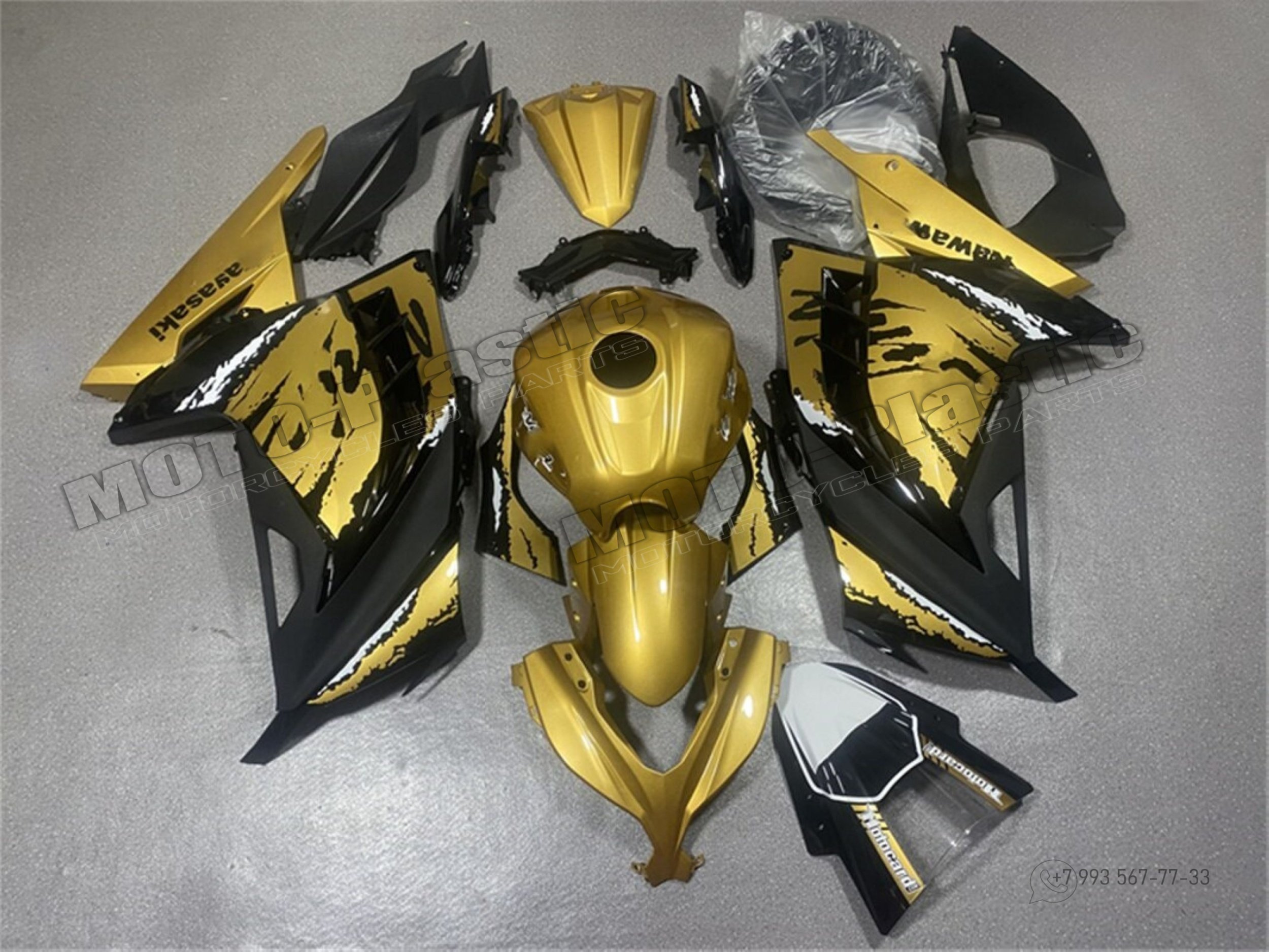 Комплект пластика Kawasaki ZX-300R 2013-2019 Золотистый Черный