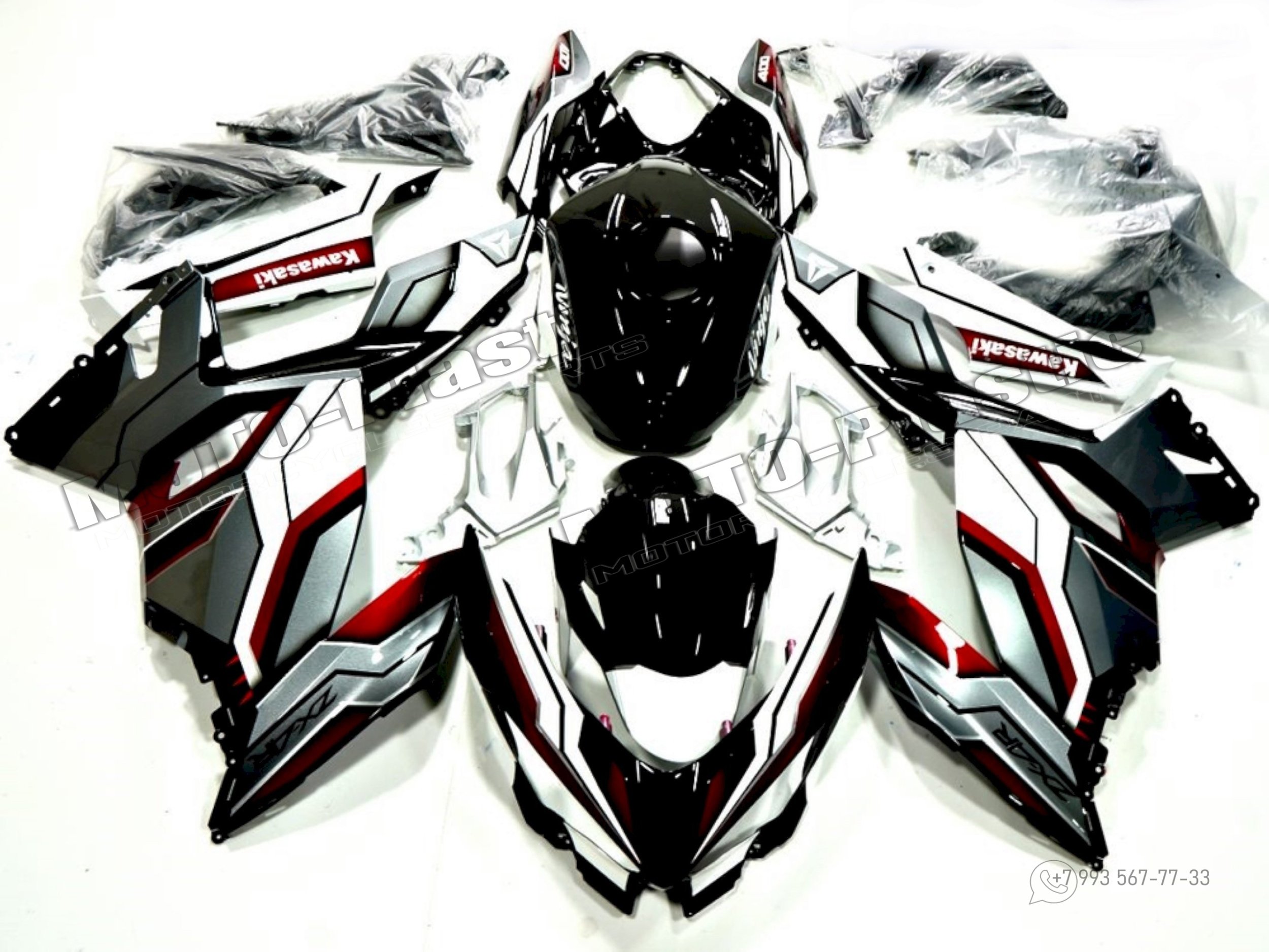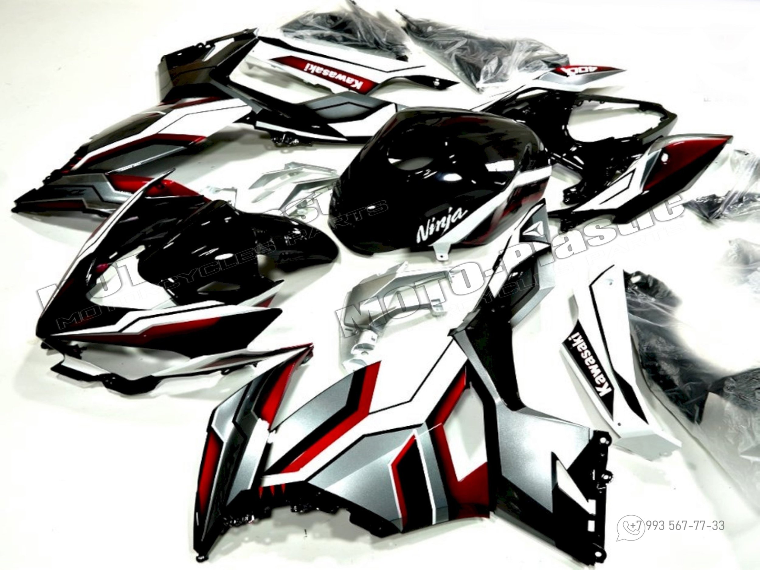 Комплект пластика Kawasaki Ninja 400 2018-2023 Белый Красный Серебряный Черный