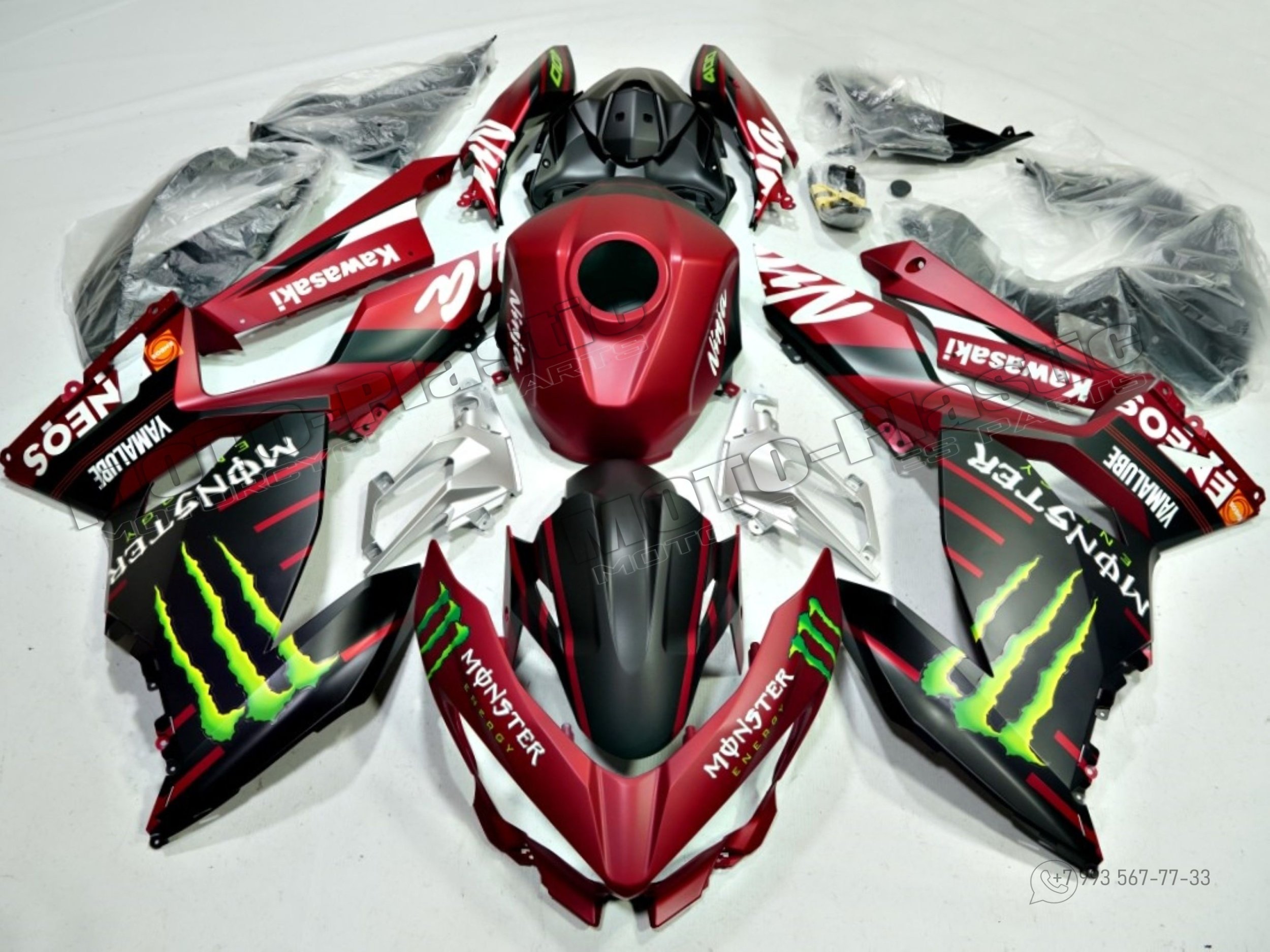 Комплект пластика Kawasaki Ninja 400 2018-2023 Monster Красный Черный
