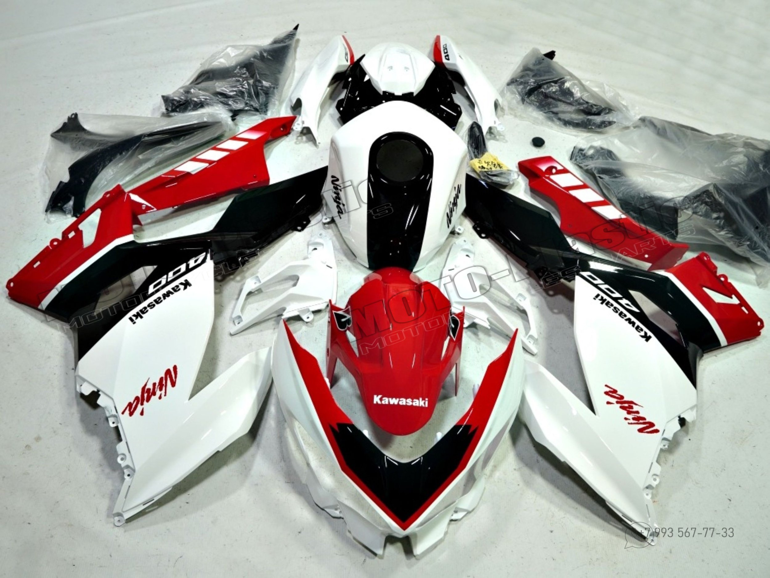 Комплект пластика Kawasaki Ninja 400 2018-2023 Красный Белый Черный