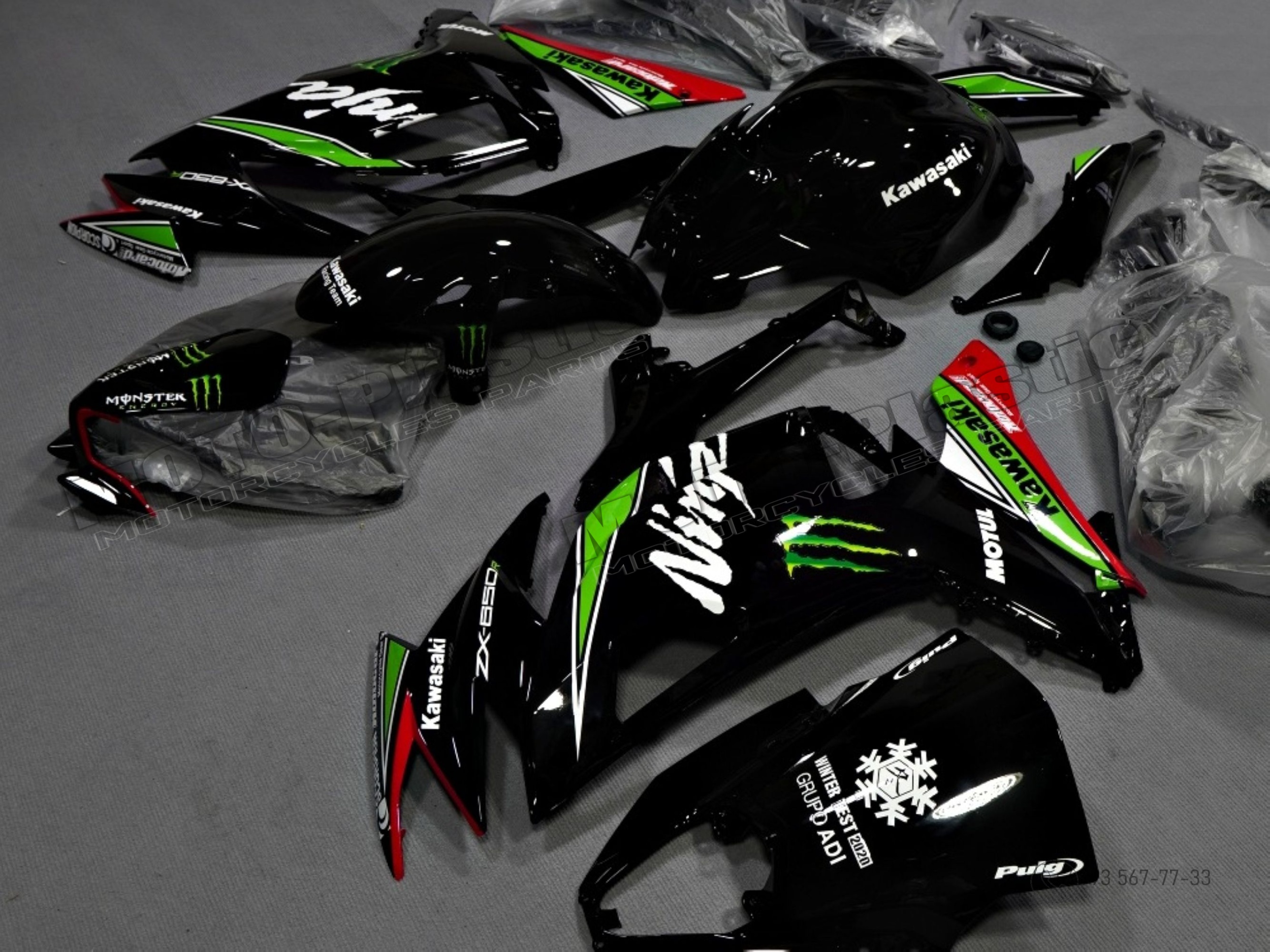 Комплект пластика Kawasaki Ninja 650 2020-2022 Белый Зеленый Красный Черный Monster