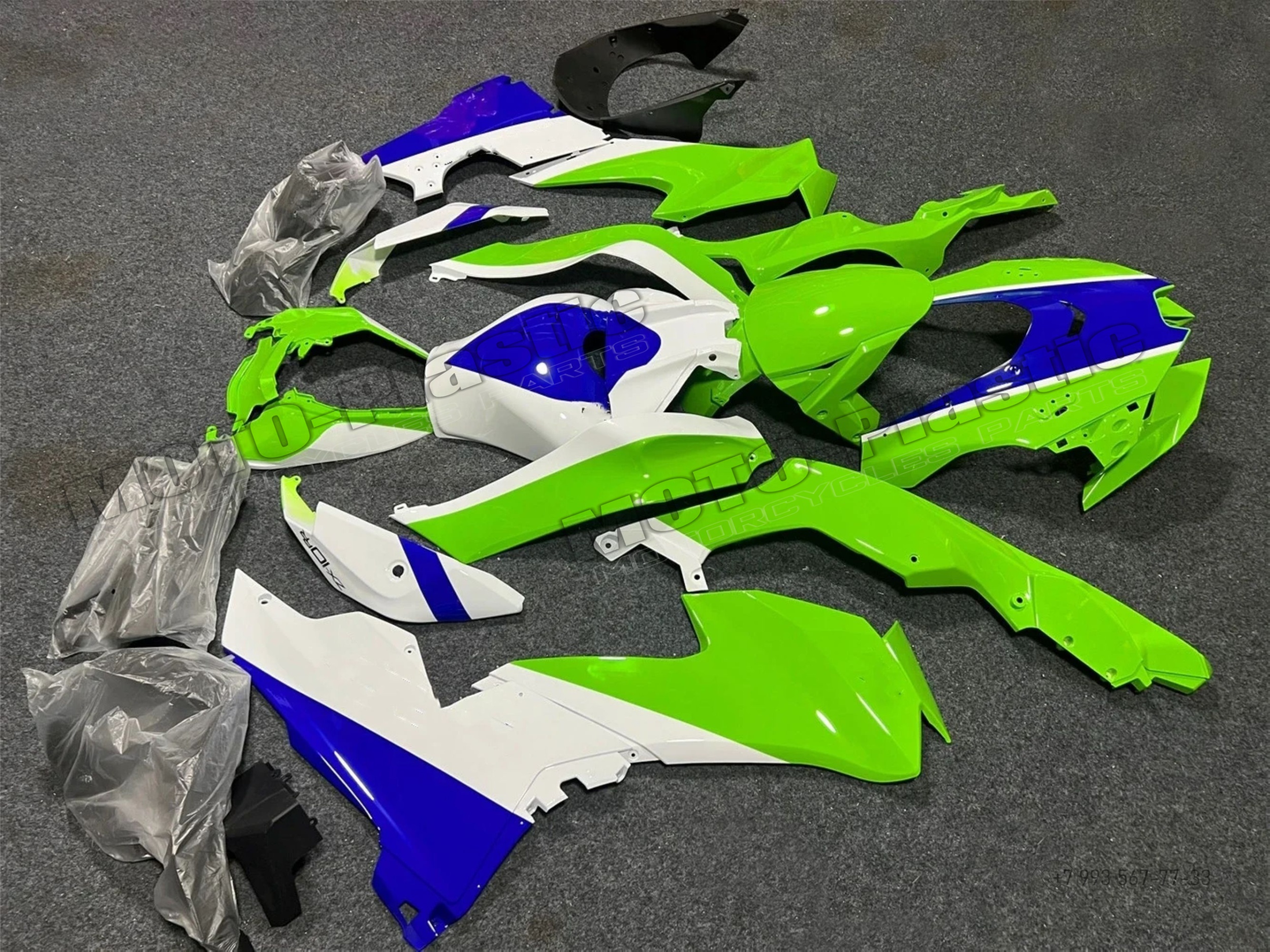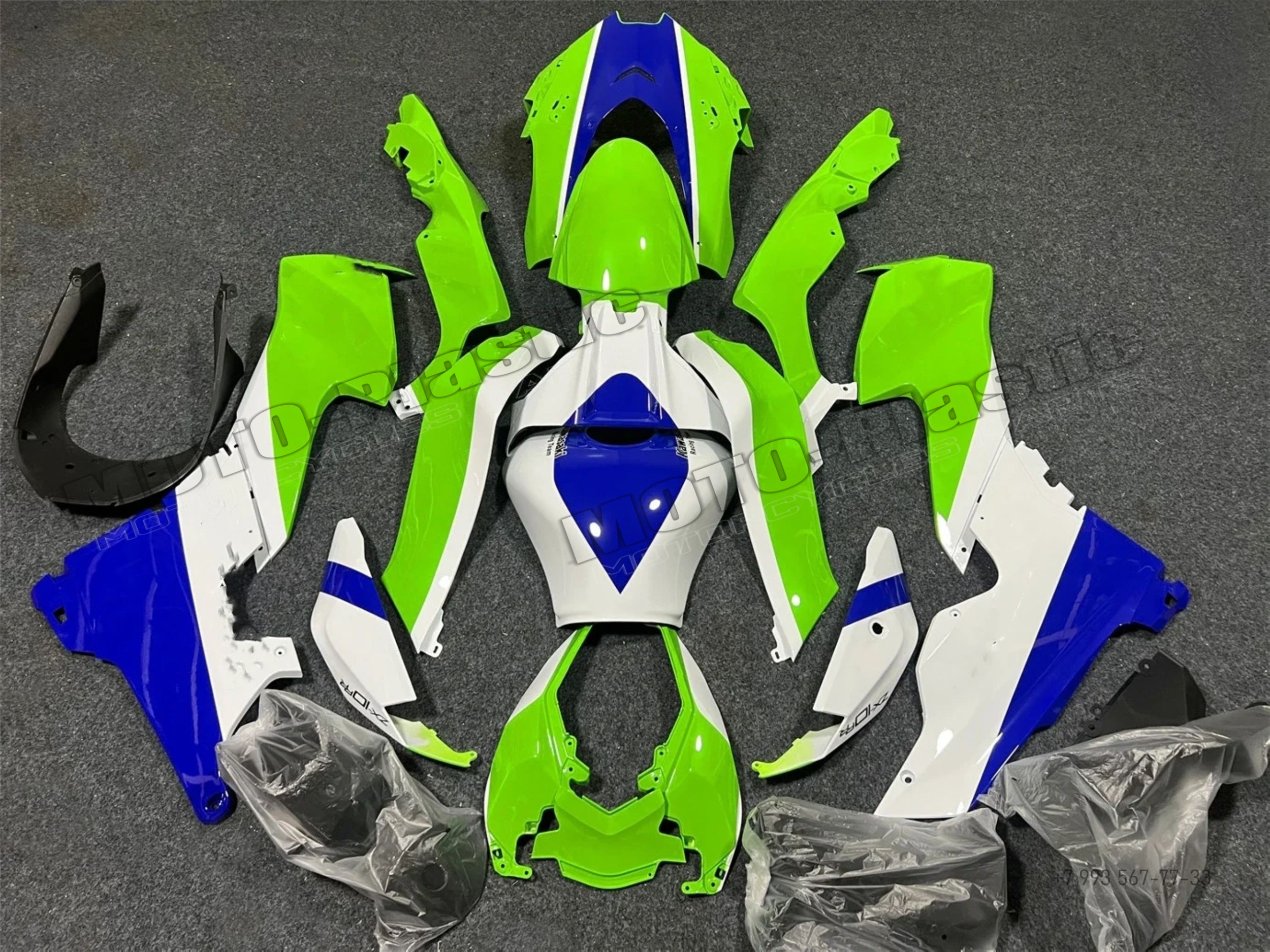 Комплект пластика Kawasaki ZX-10R 2021-2023 Синий Зеленый Белый