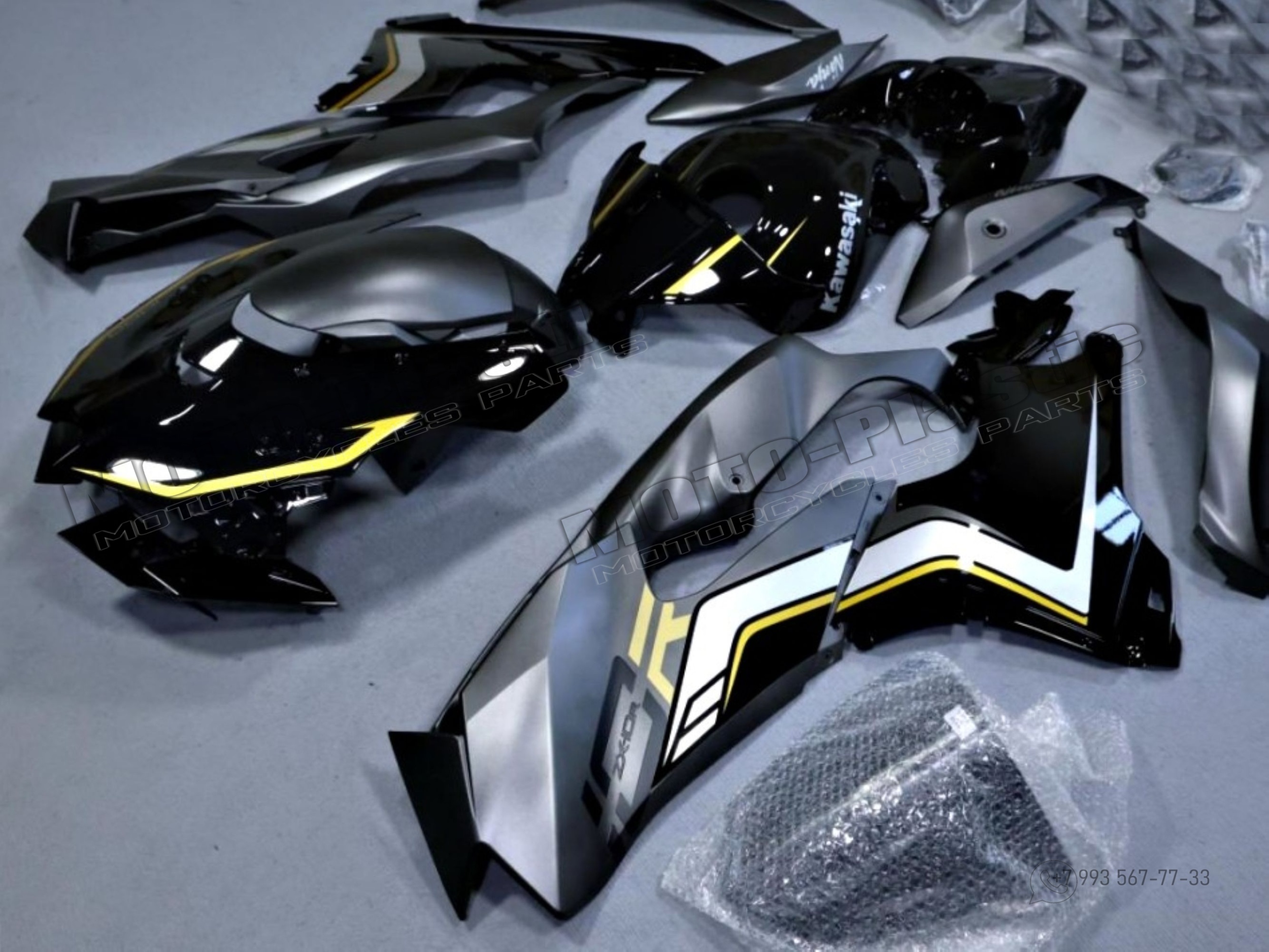 Комплект пластика Kawasaki ZX-10R 2021-2023 Черный Серый Желтый Белый