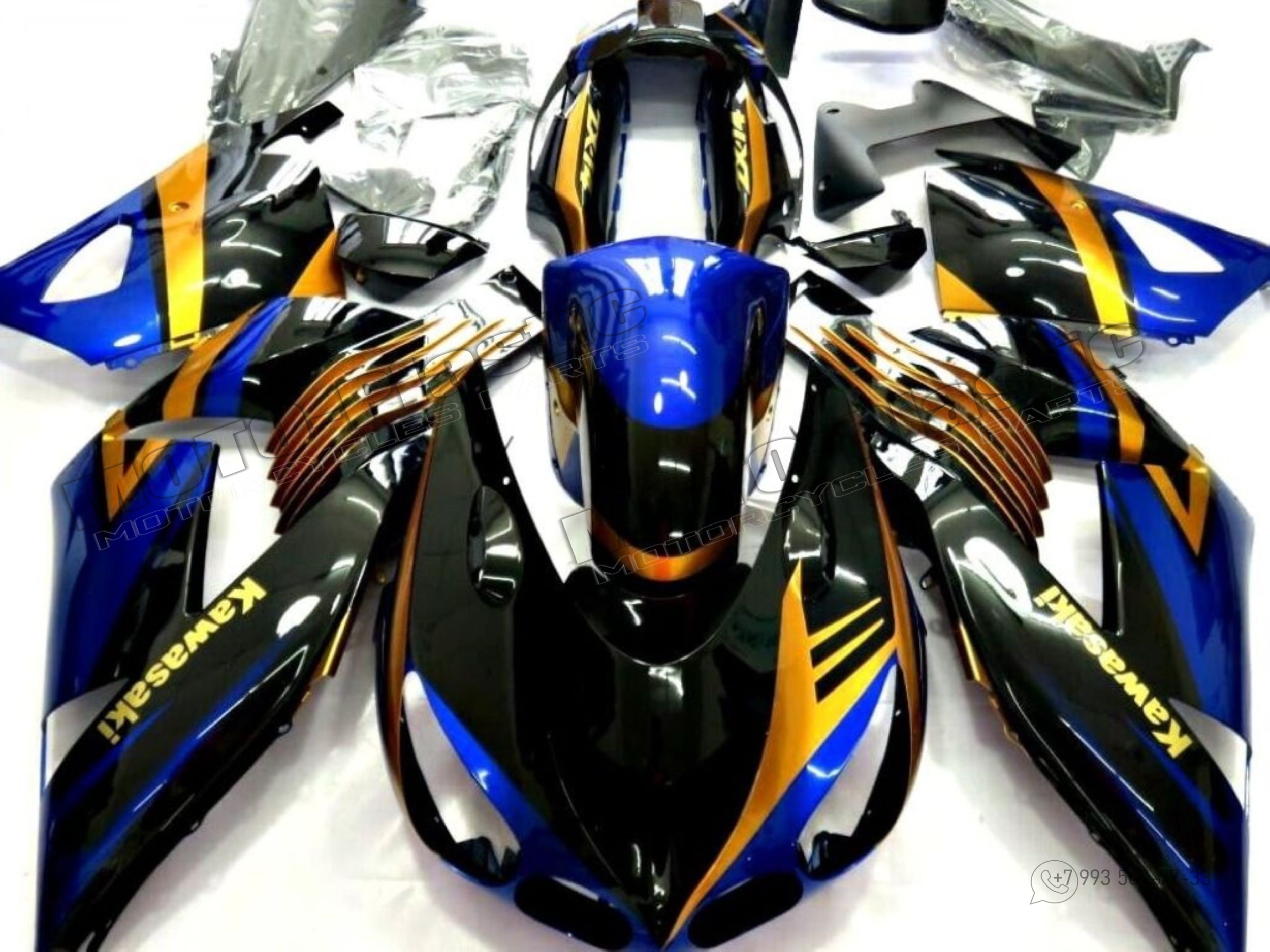 Комплект пластика Kawasaki ZX-14R 2012-2021 Черный Синий Желтый