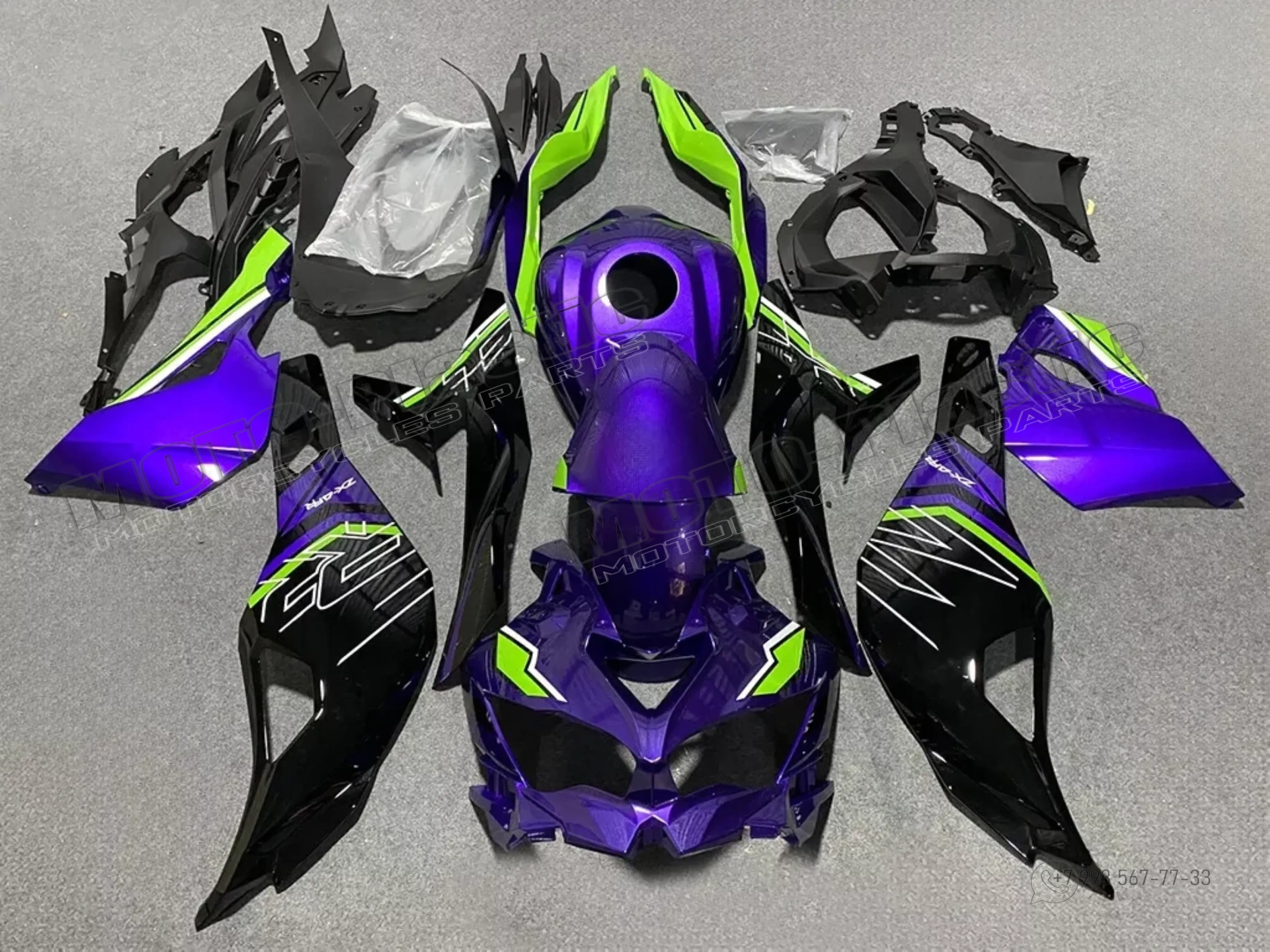 Комплект пластика Kawasaki Ninja ZX-4R 2023 Фиолетовый Черный Зеленый