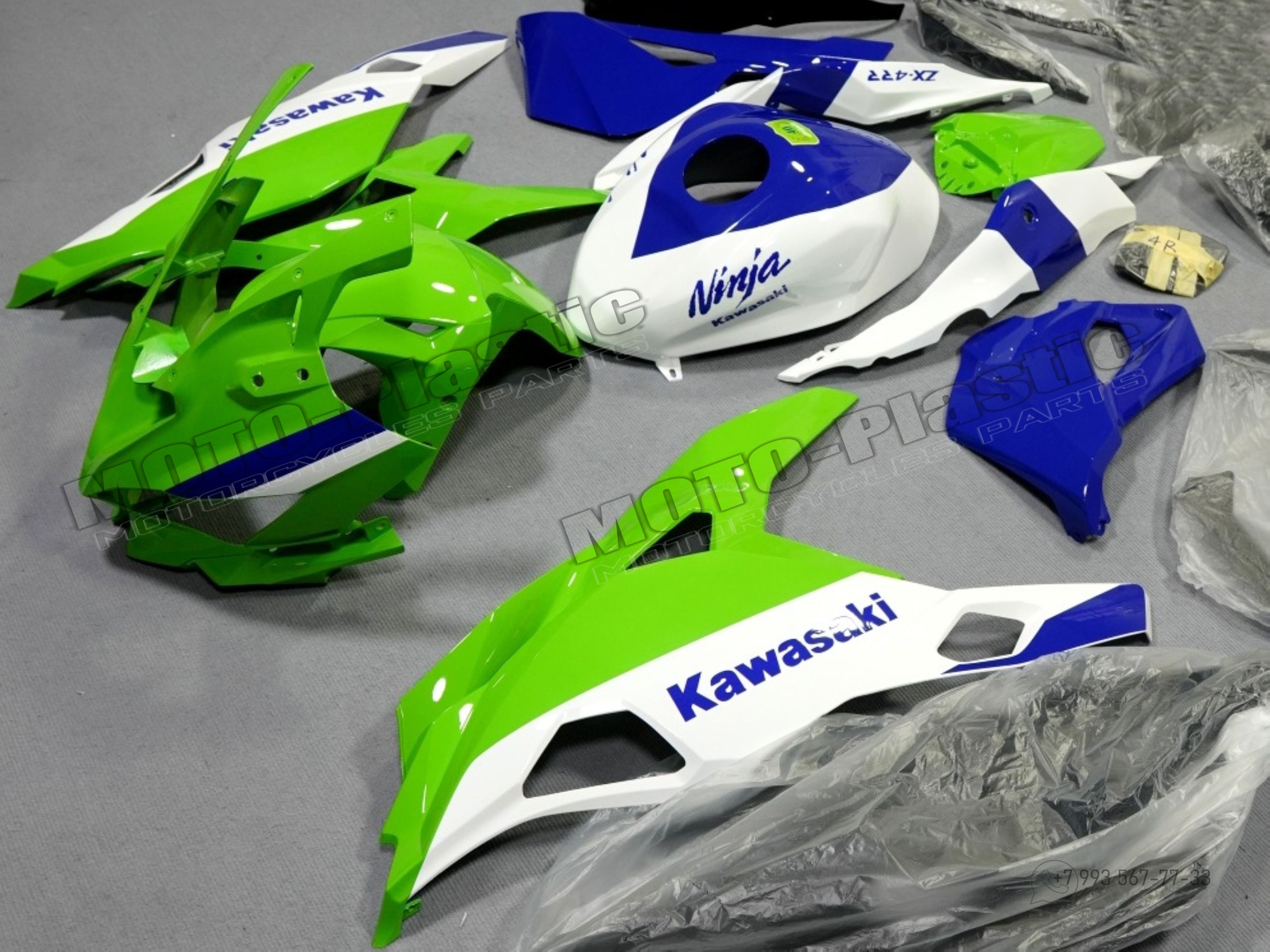 Комплект пластика Kawasaki Ninja ZX-4R 2023 Синий Зеленый Белый