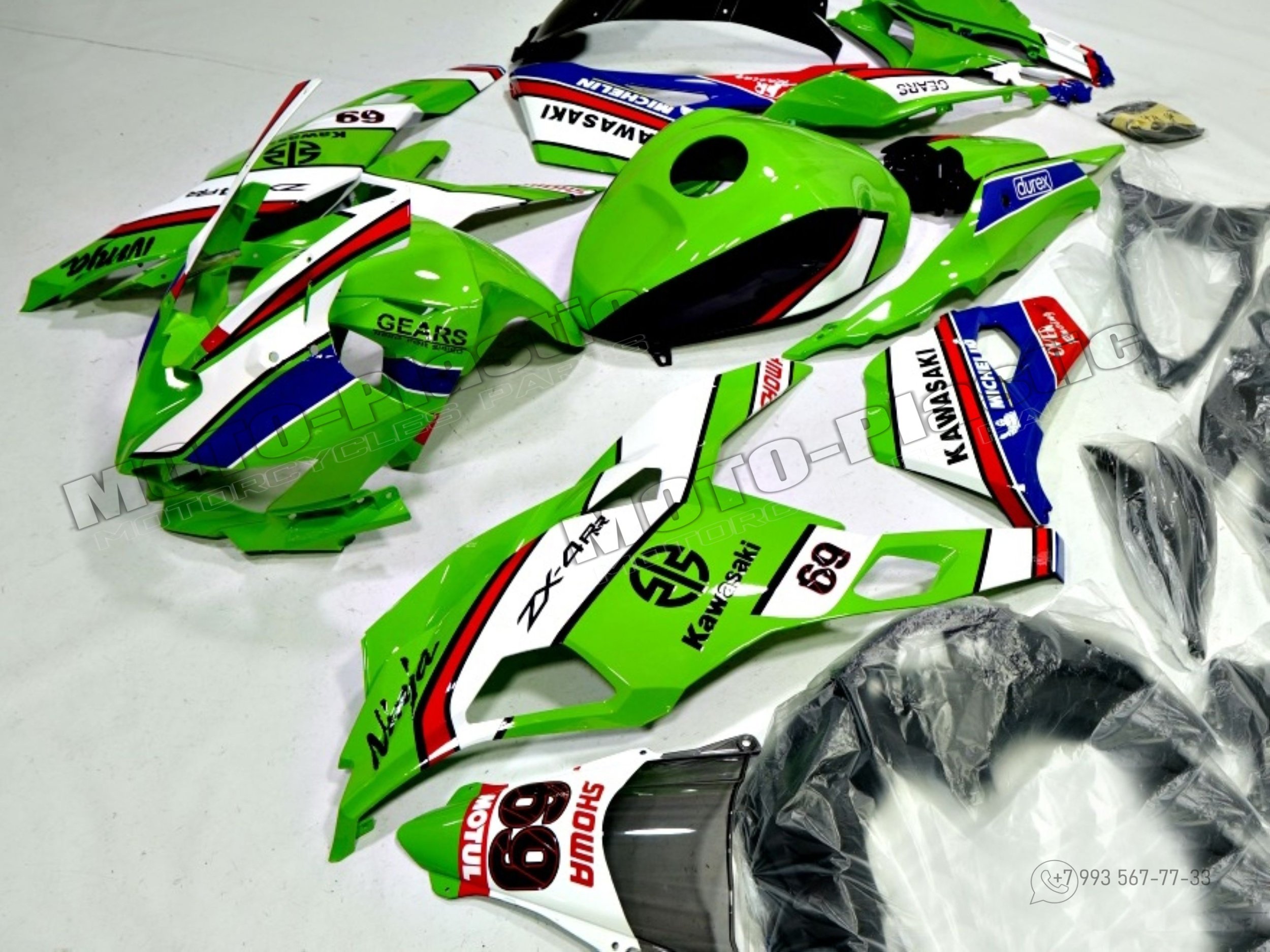 Комплект пластика Kawasaki Ninja ZX-4R 2023 Синий Красный Зеленый Белый