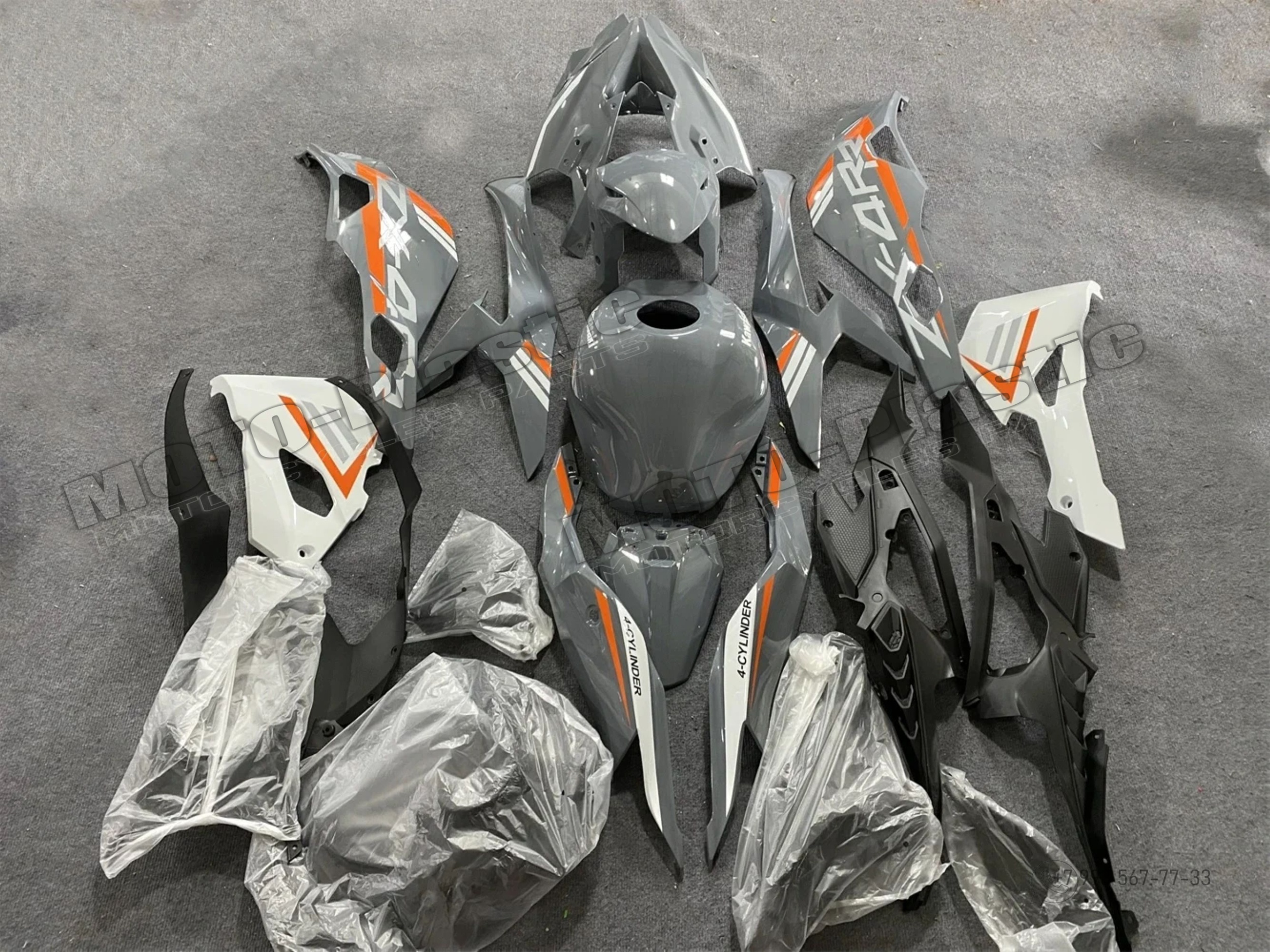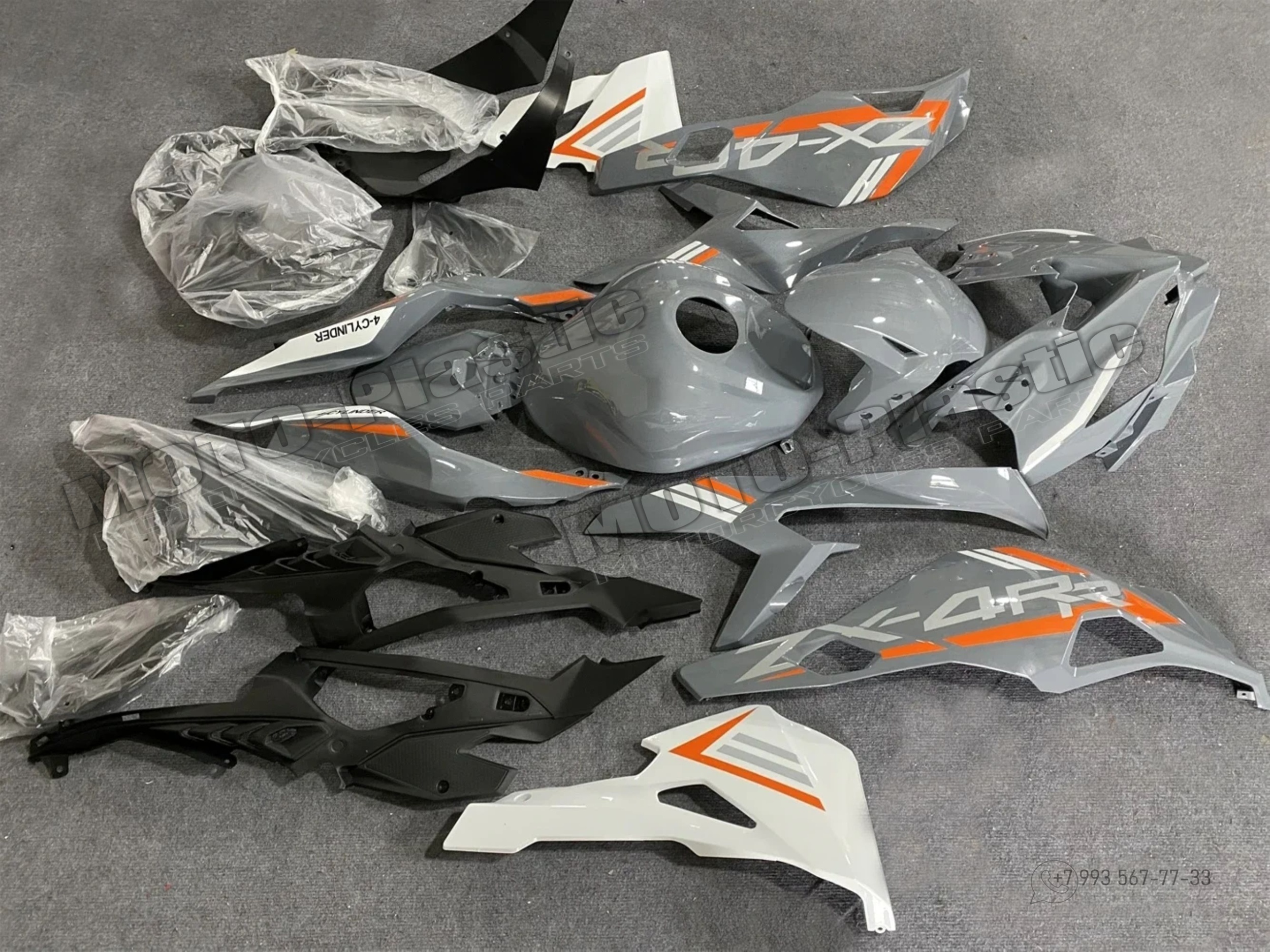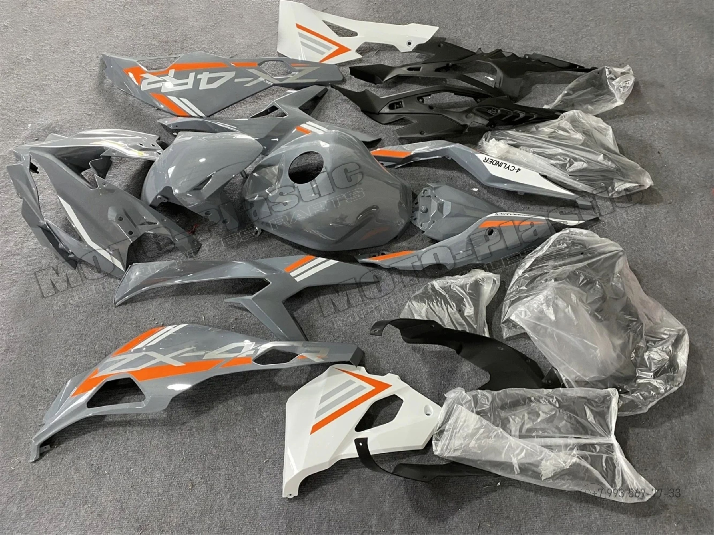 Комплект пластика Kawasaki Ninja ZX-4R 2023 Серый Оранжевый Белый Черный