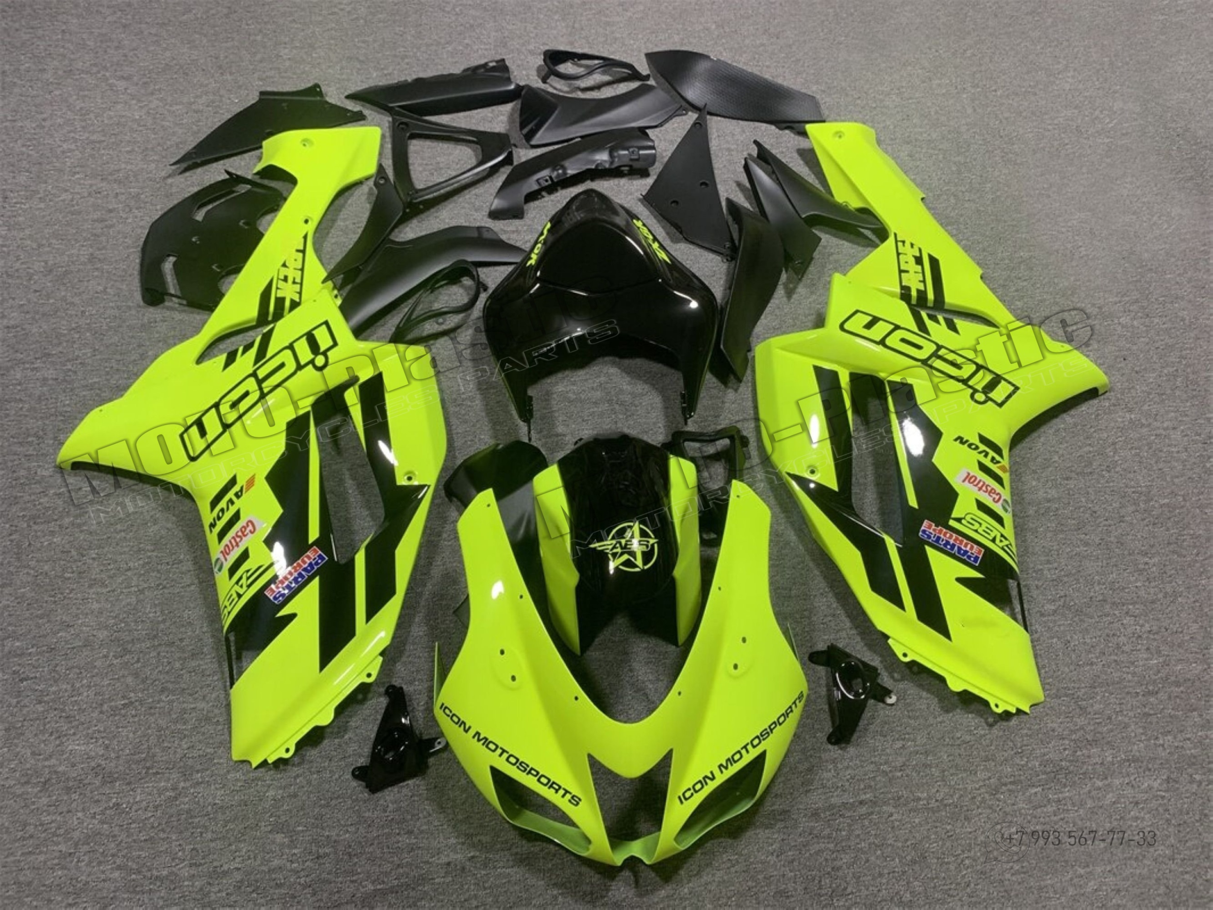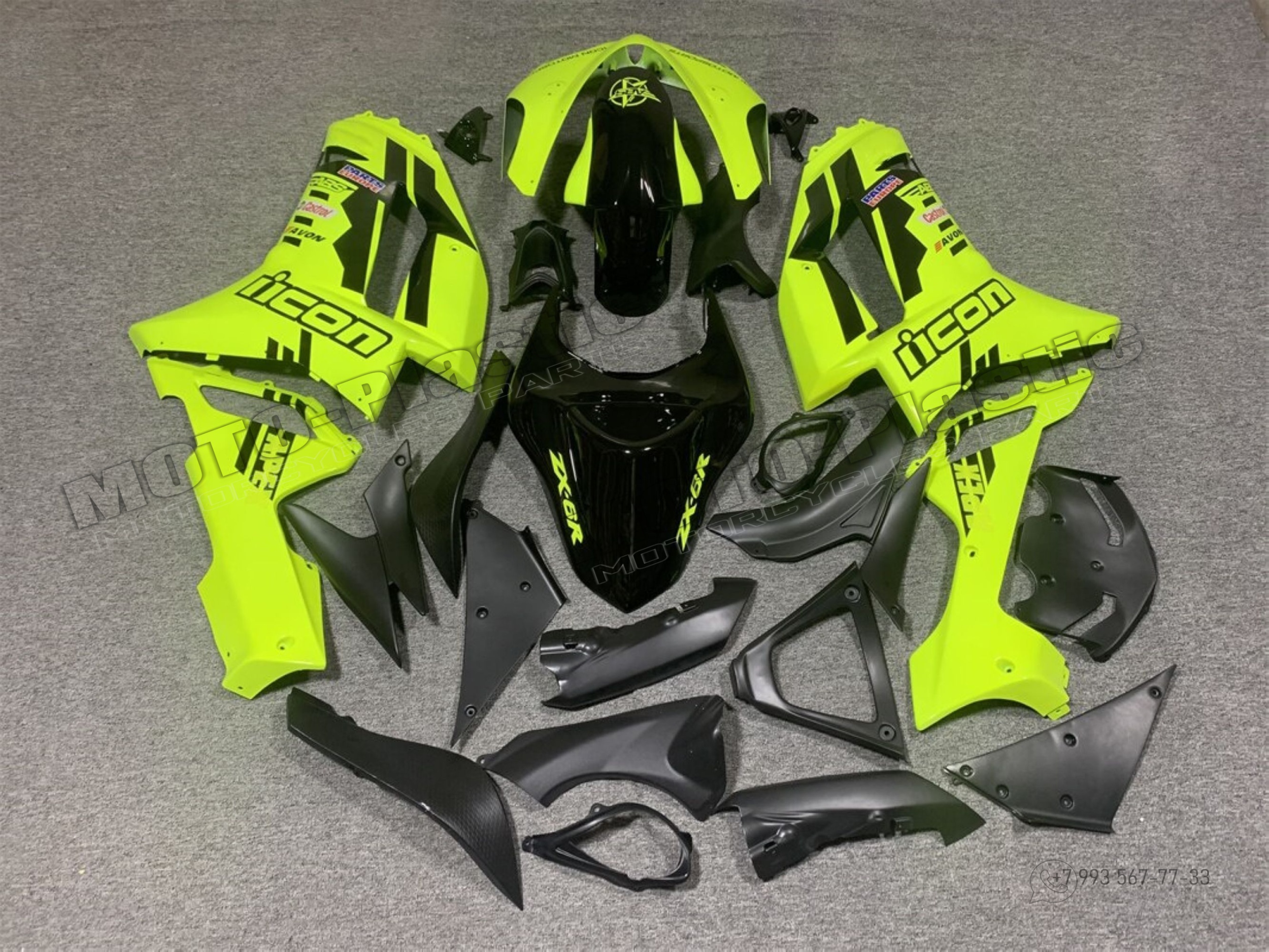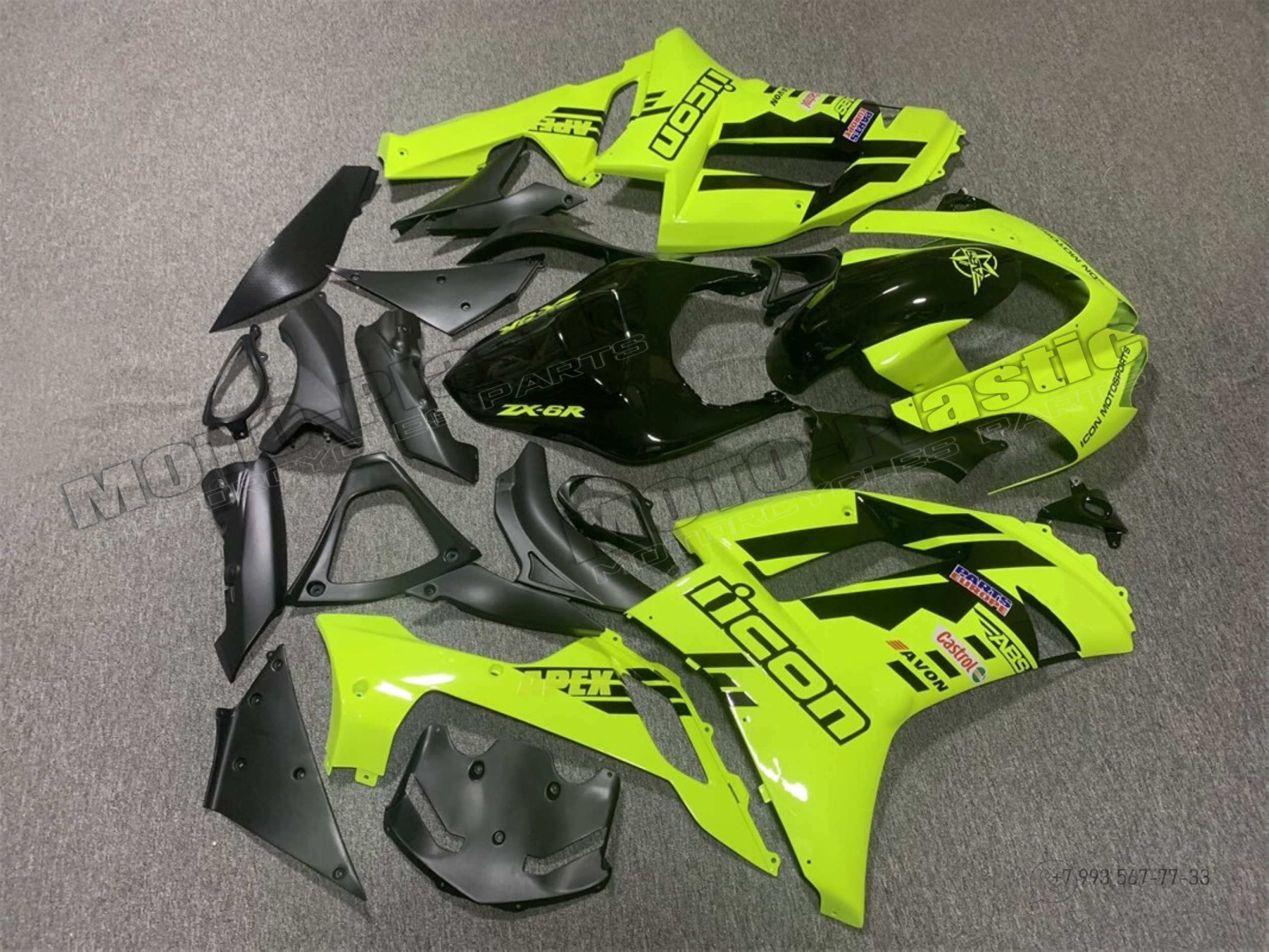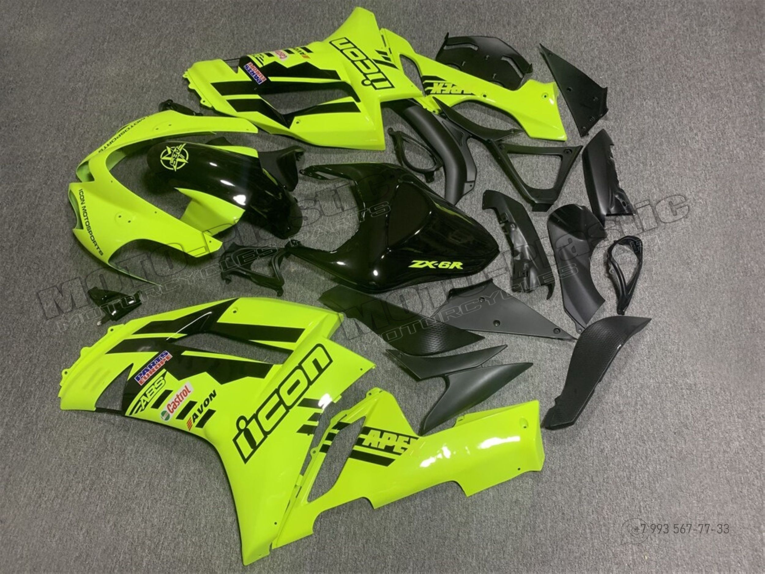 Комплект пластика Kawasaki ZX-6R 2007-2008 Черный Зеленый