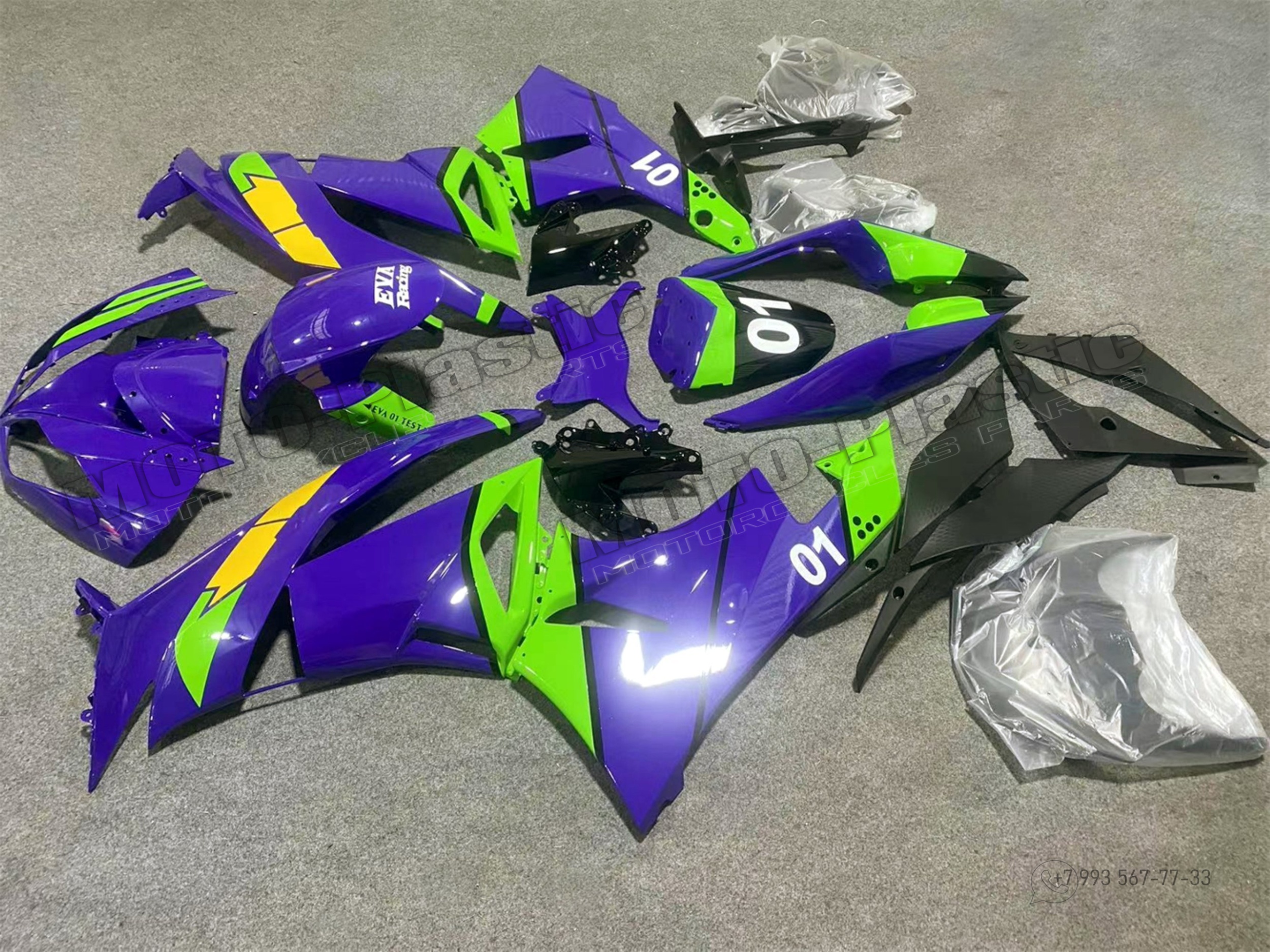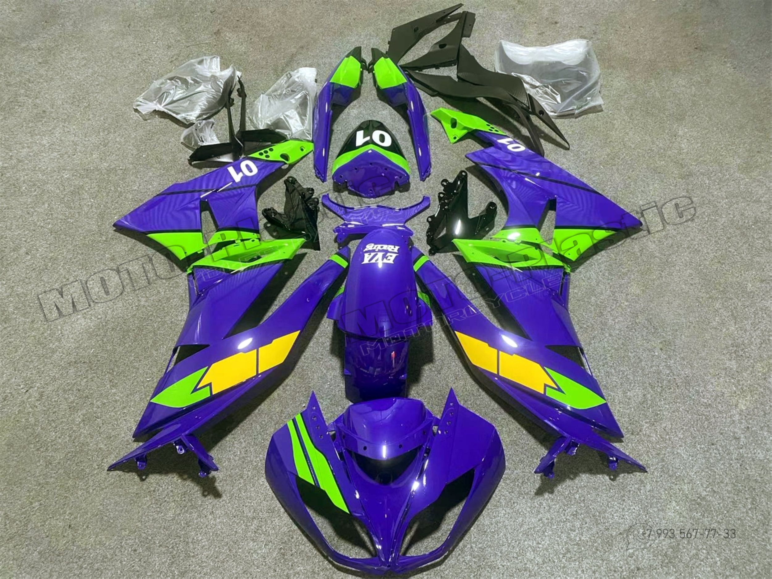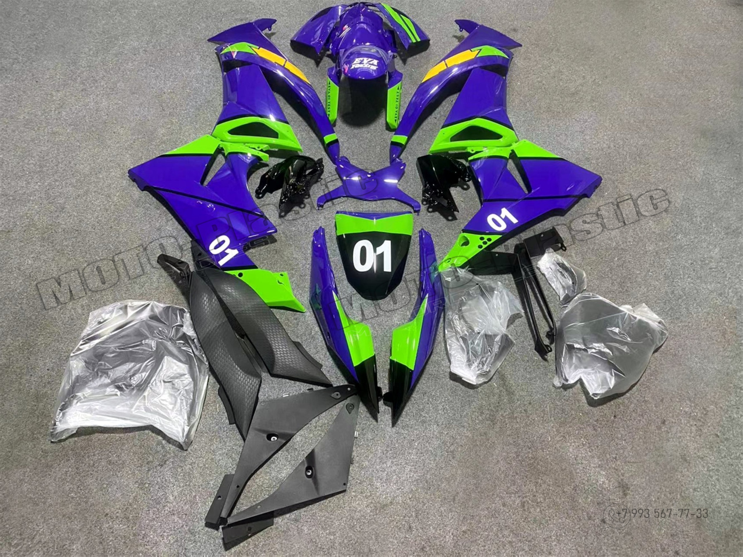 Комплект пластика Kawasaki ZX-6R 2009-2012 Желтый Зеленый Фиолетовый