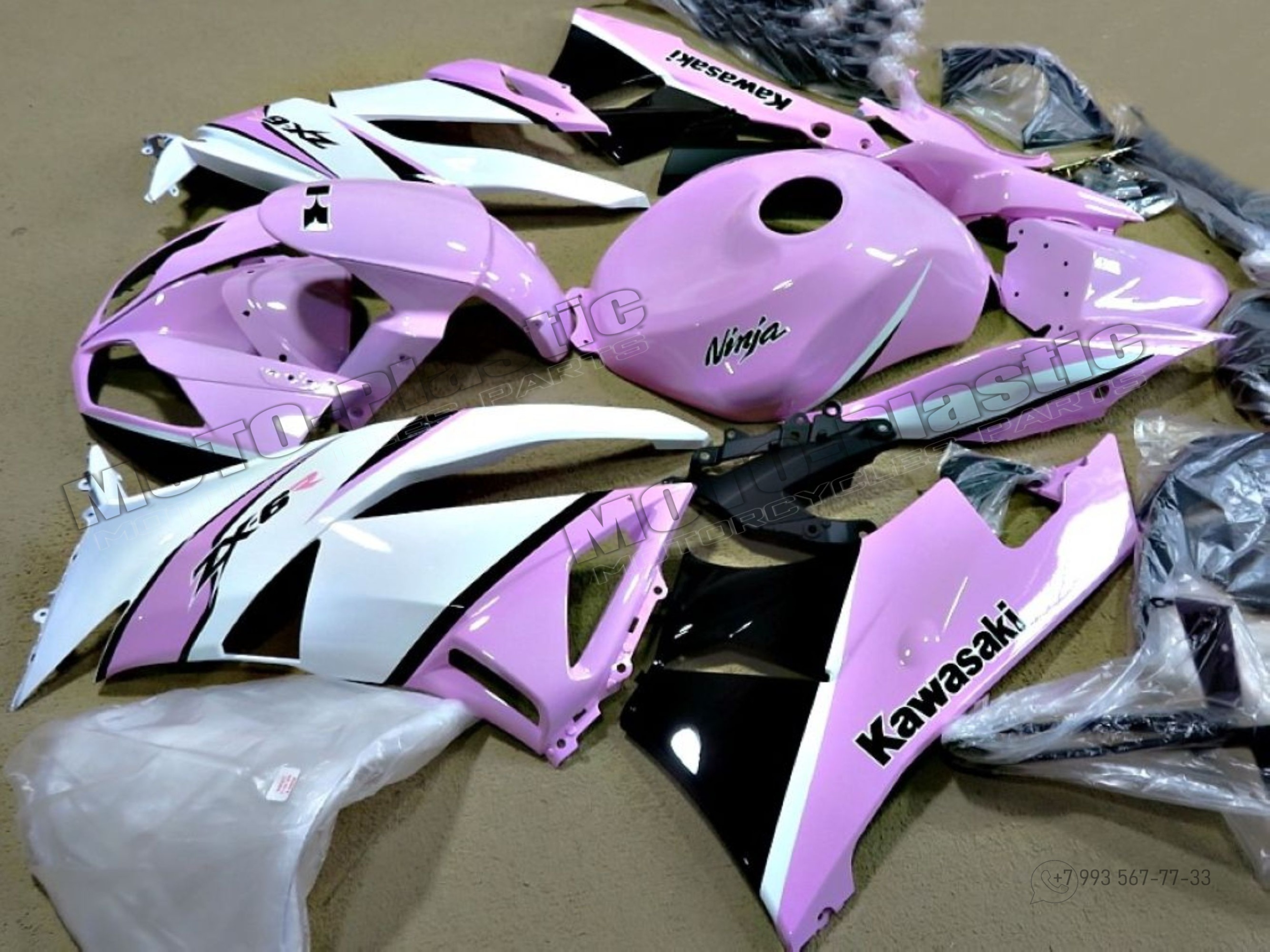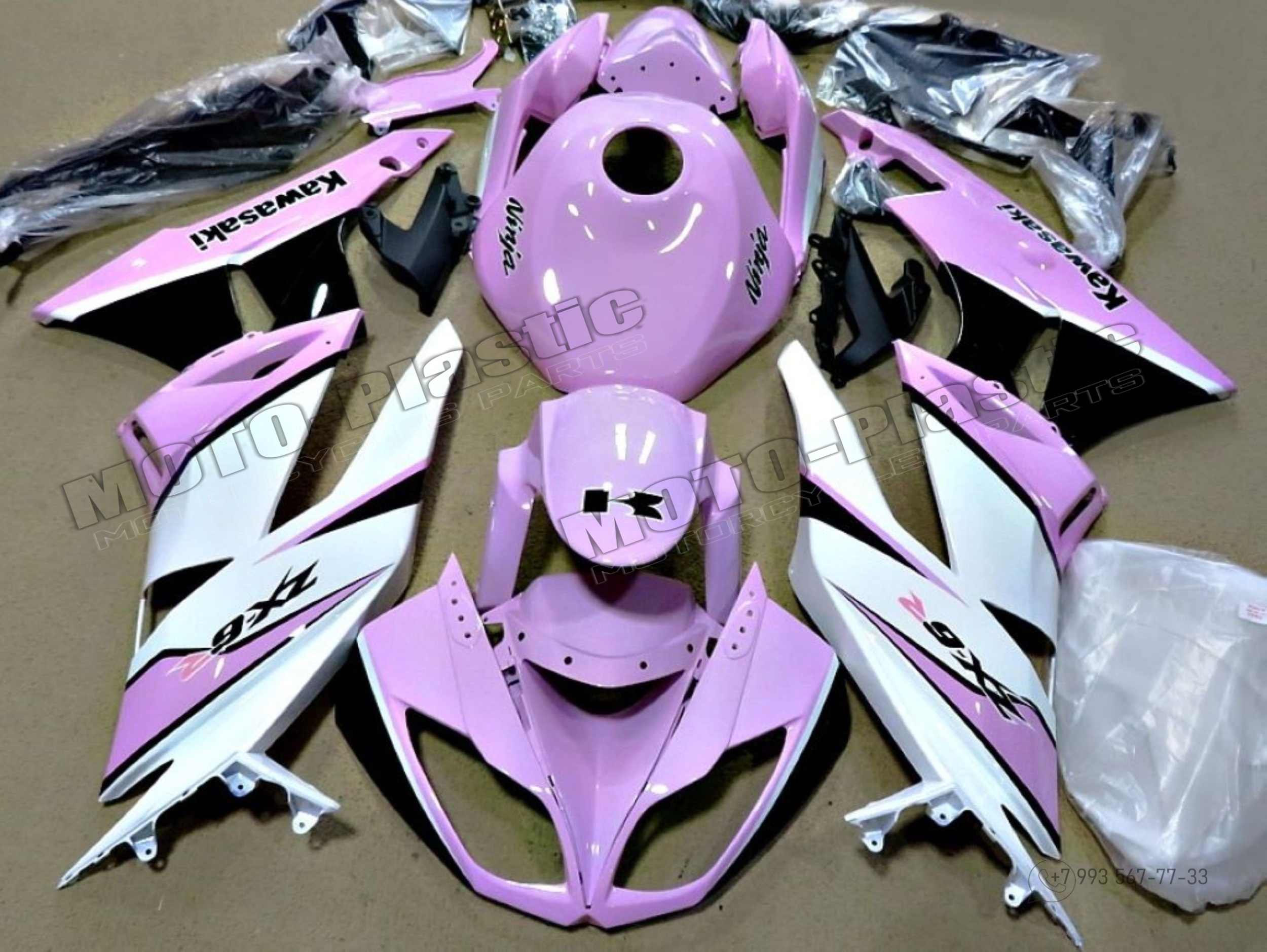 Комплект пластика Kawasaki ZX-6R 2009-2012 Белый Черный Розовый