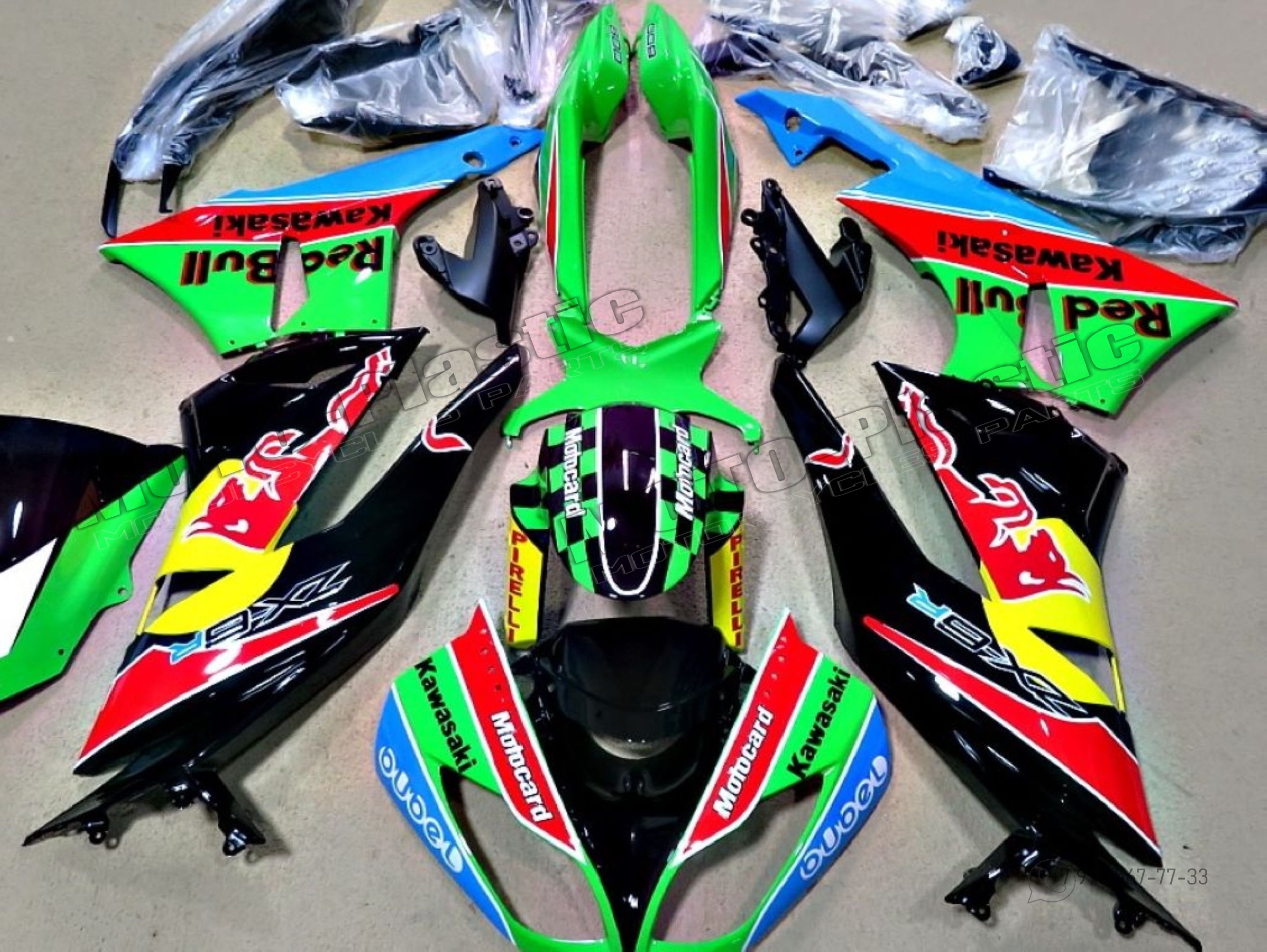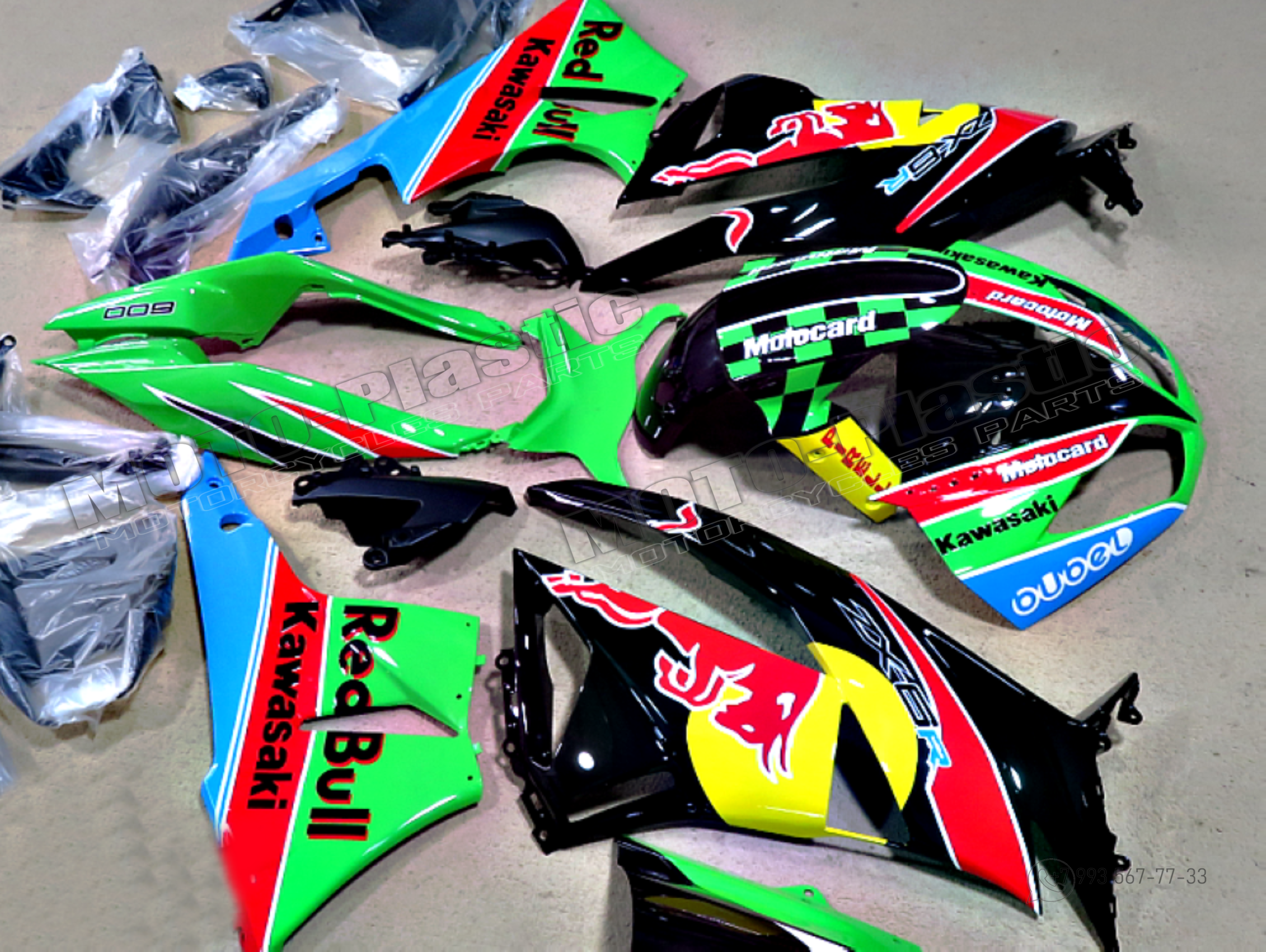 Комплект пластика Kawasaki ZX-6R 2009-2012 Синий Желтый Черный Зеленый Красный Red Bull