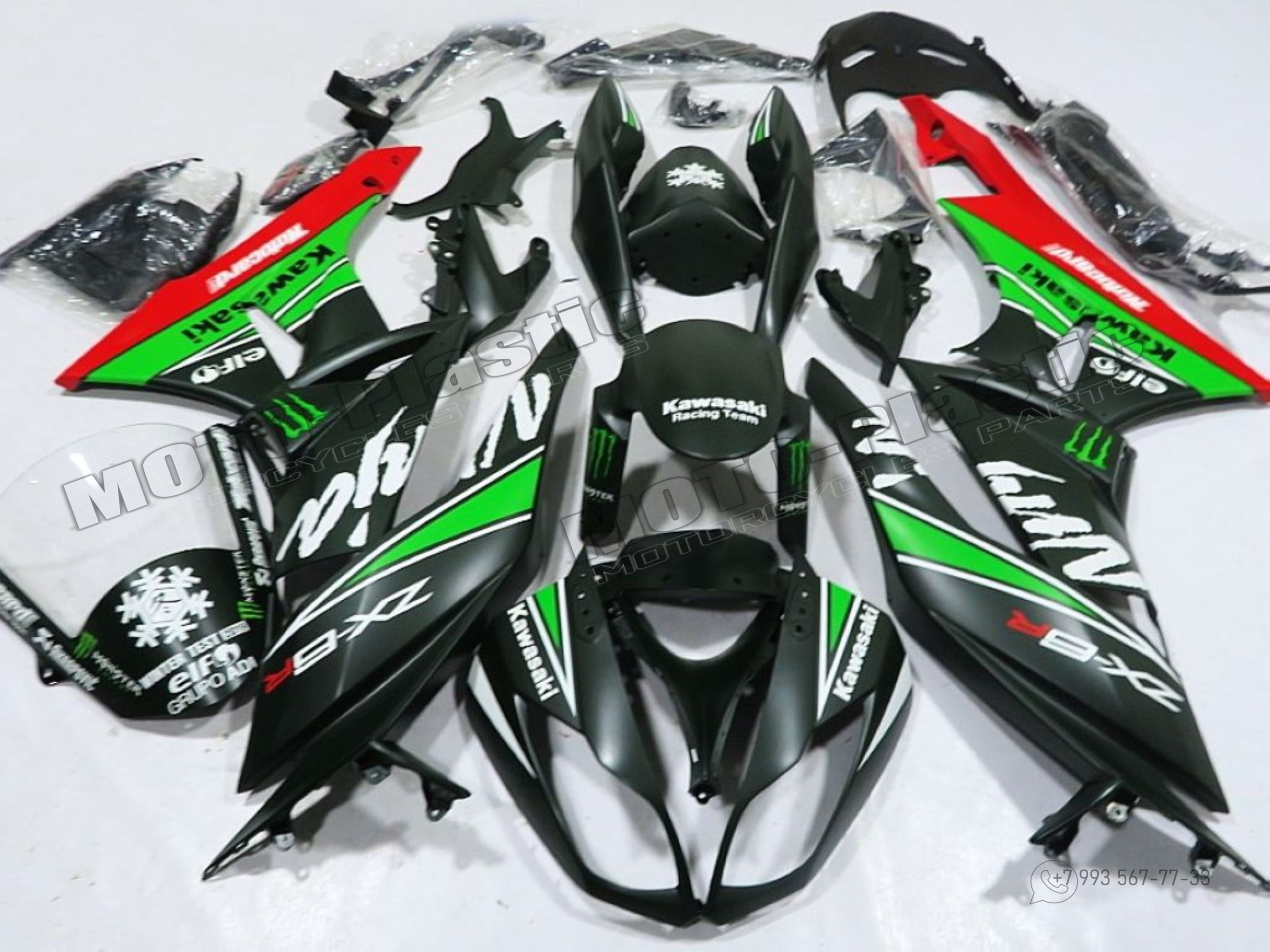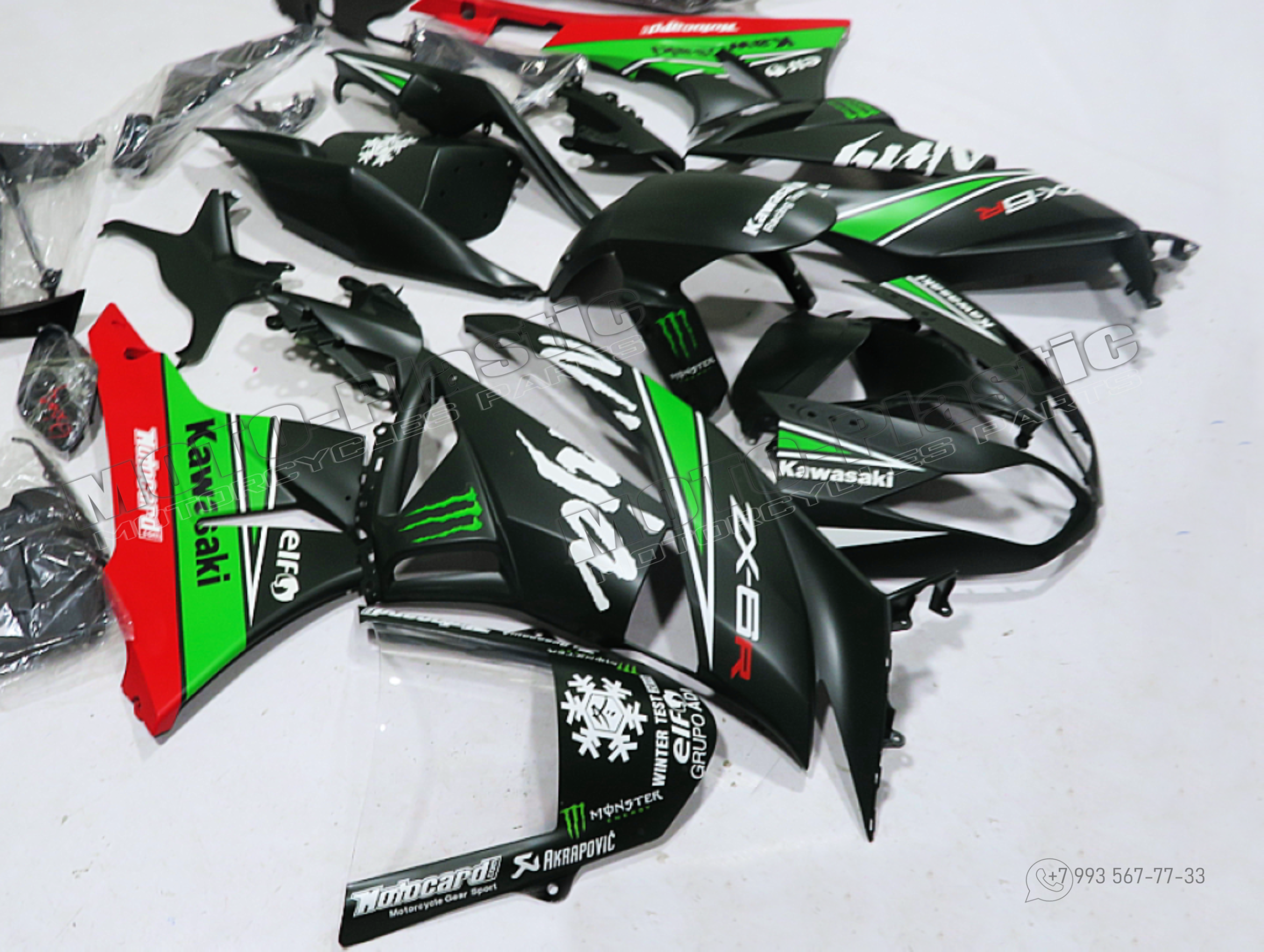 Комплект пластика Kawasaki ZX-6R 2013-2018 Черный Белый Зеленый Красный Monster
