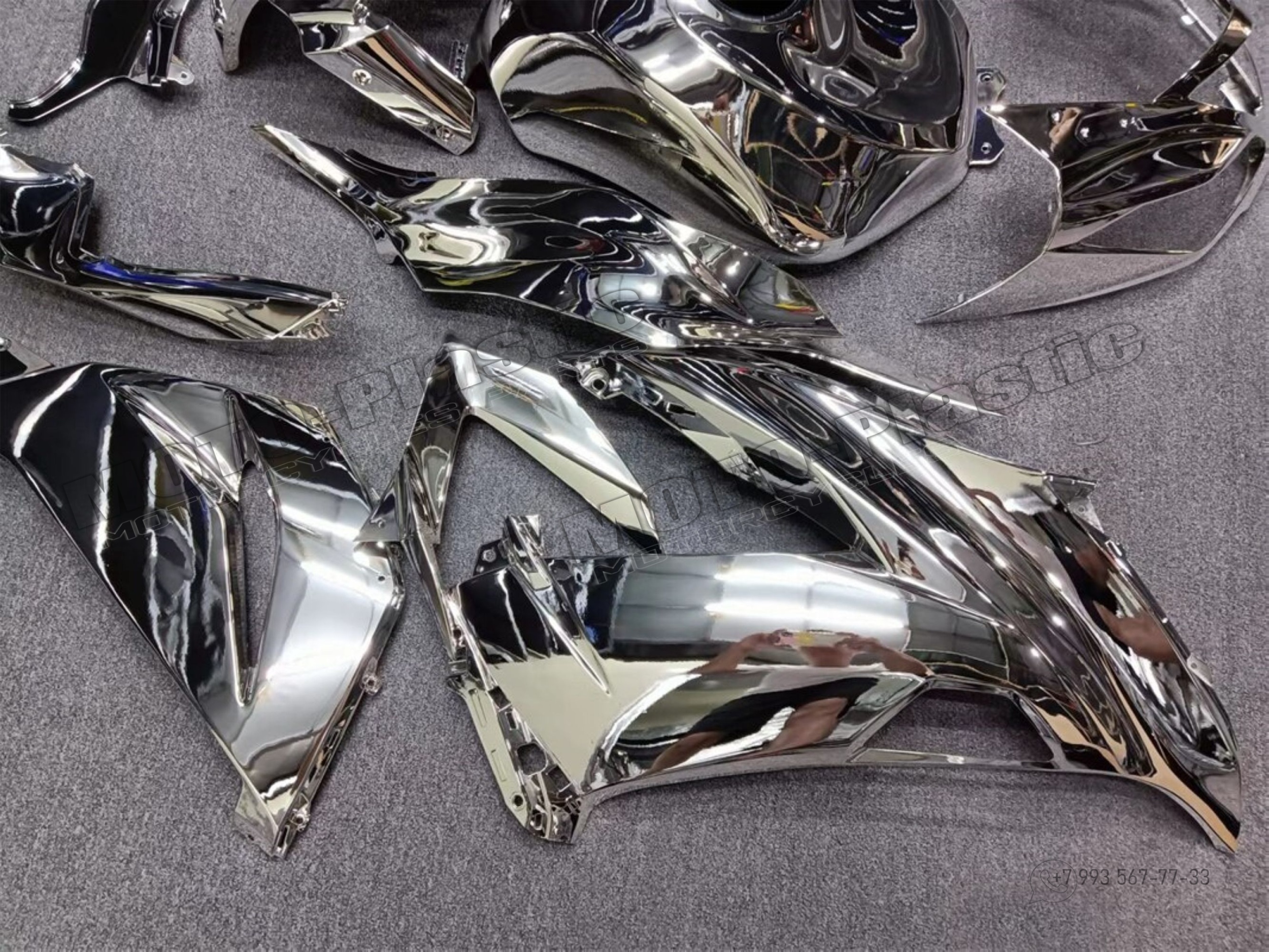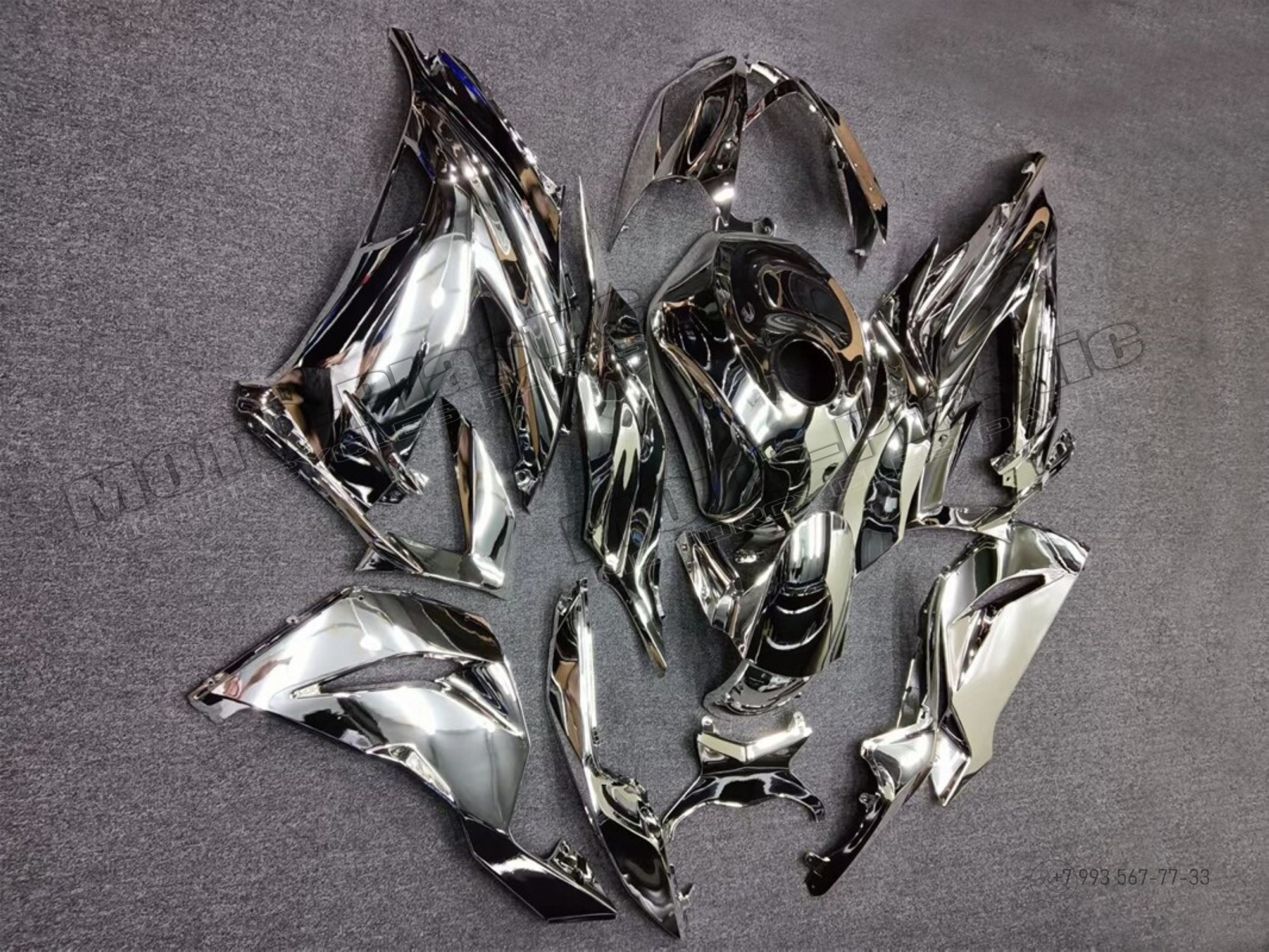 Комплект пластика Kawasaki ZX-6R 2013-2018 / Химическая металлизация (хромирование) Серый
