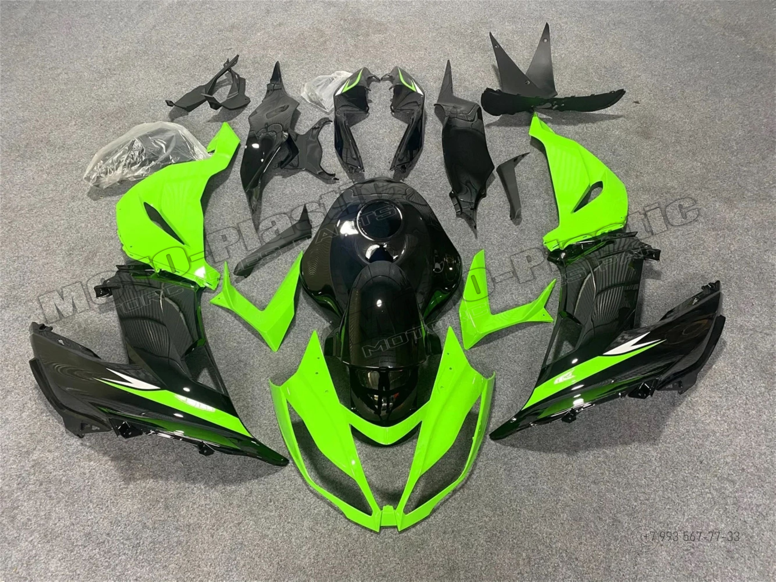 Комплект пластика Kawasaki ZX-6R 2013-2018 Зеленый Черный