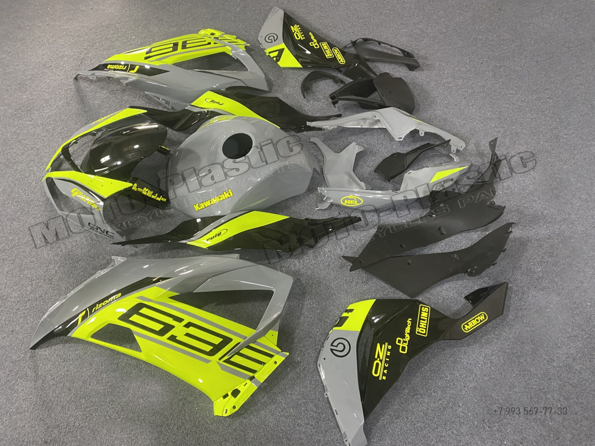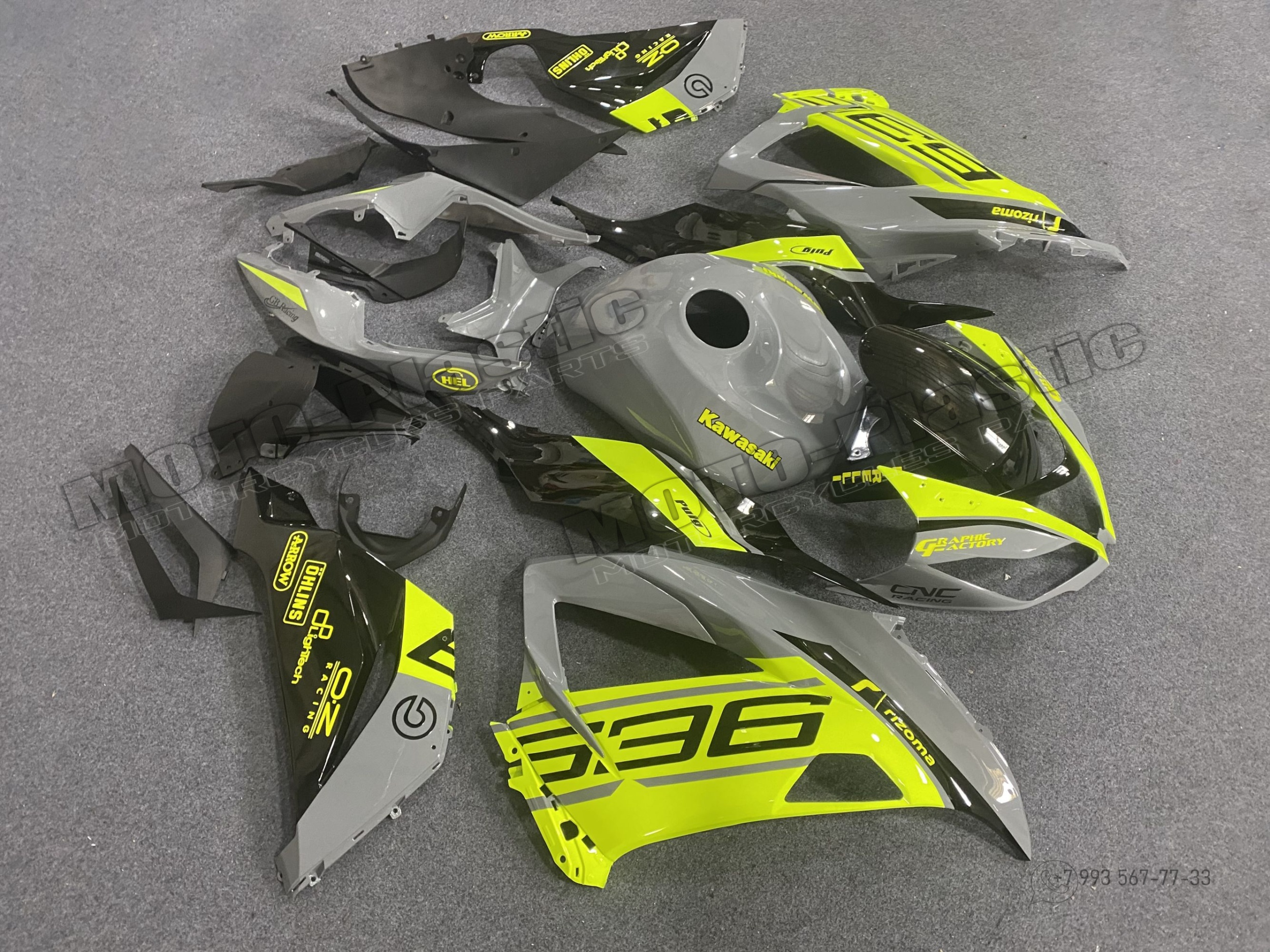 Комплект пластика Kawasaki ZX-6R 2013-2018 Желтый Черный Серый