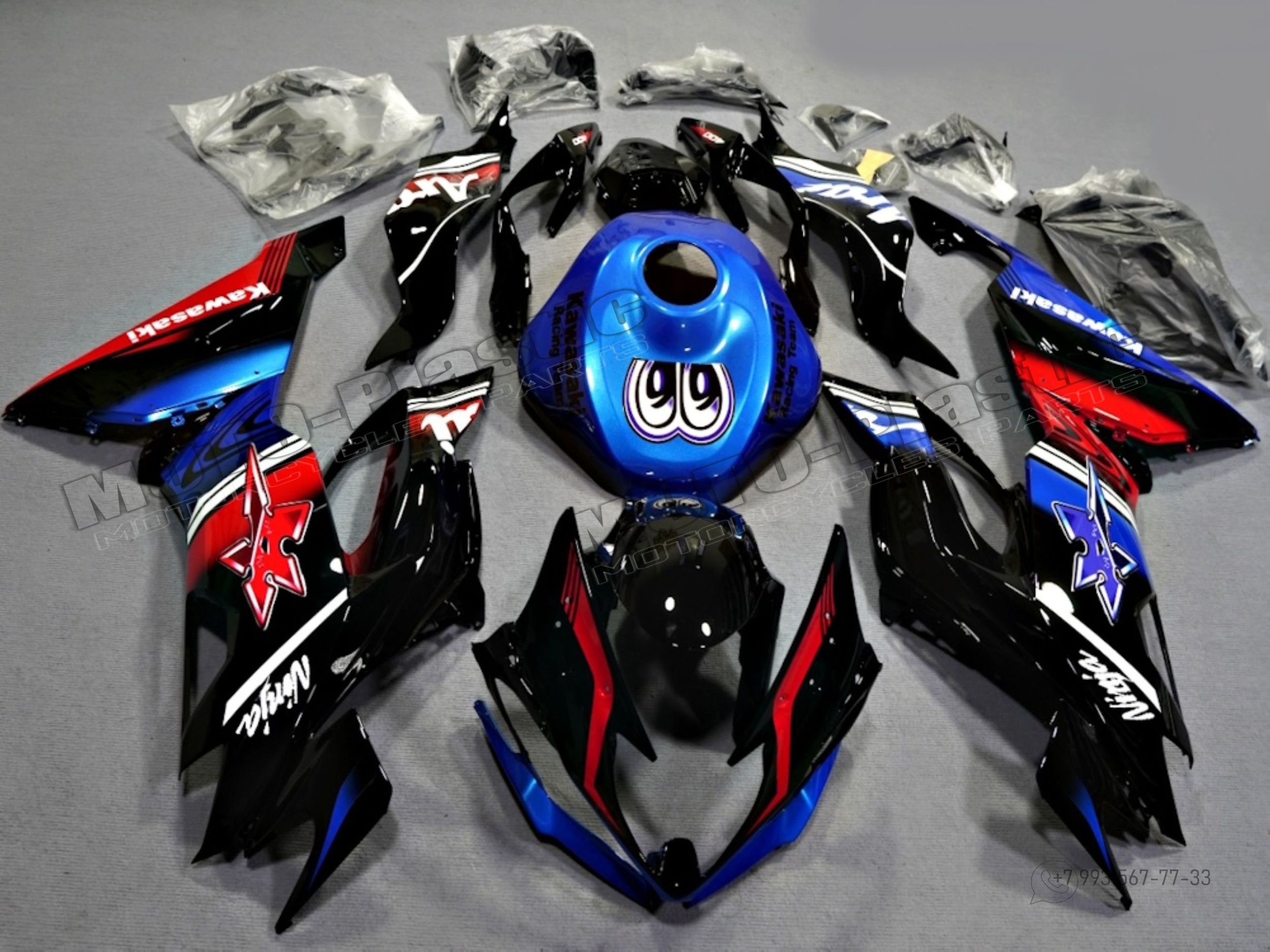 Комплект пластика Kawasaki ZX-6R 2019-2021 Синий Черный Белый Красный
