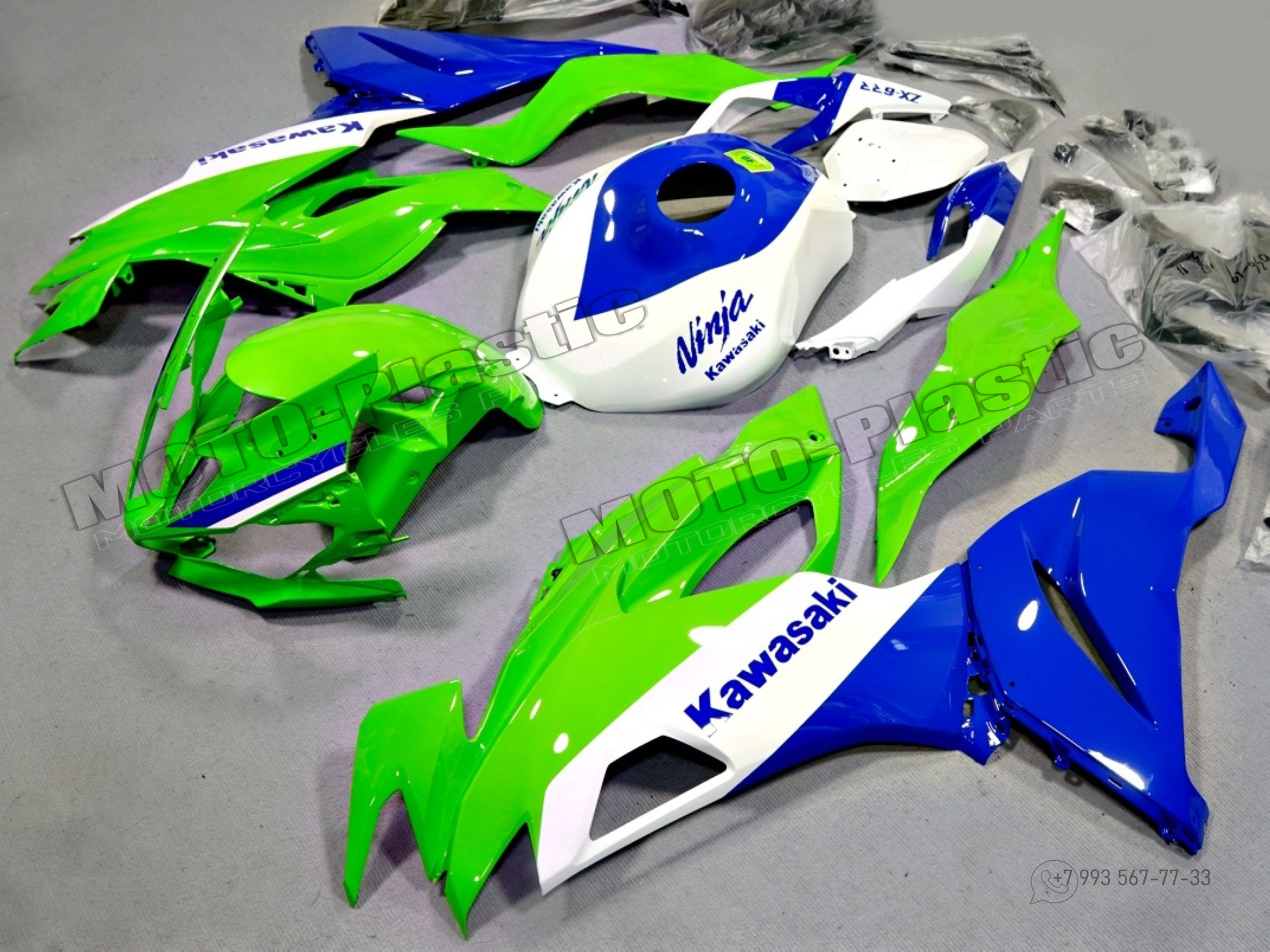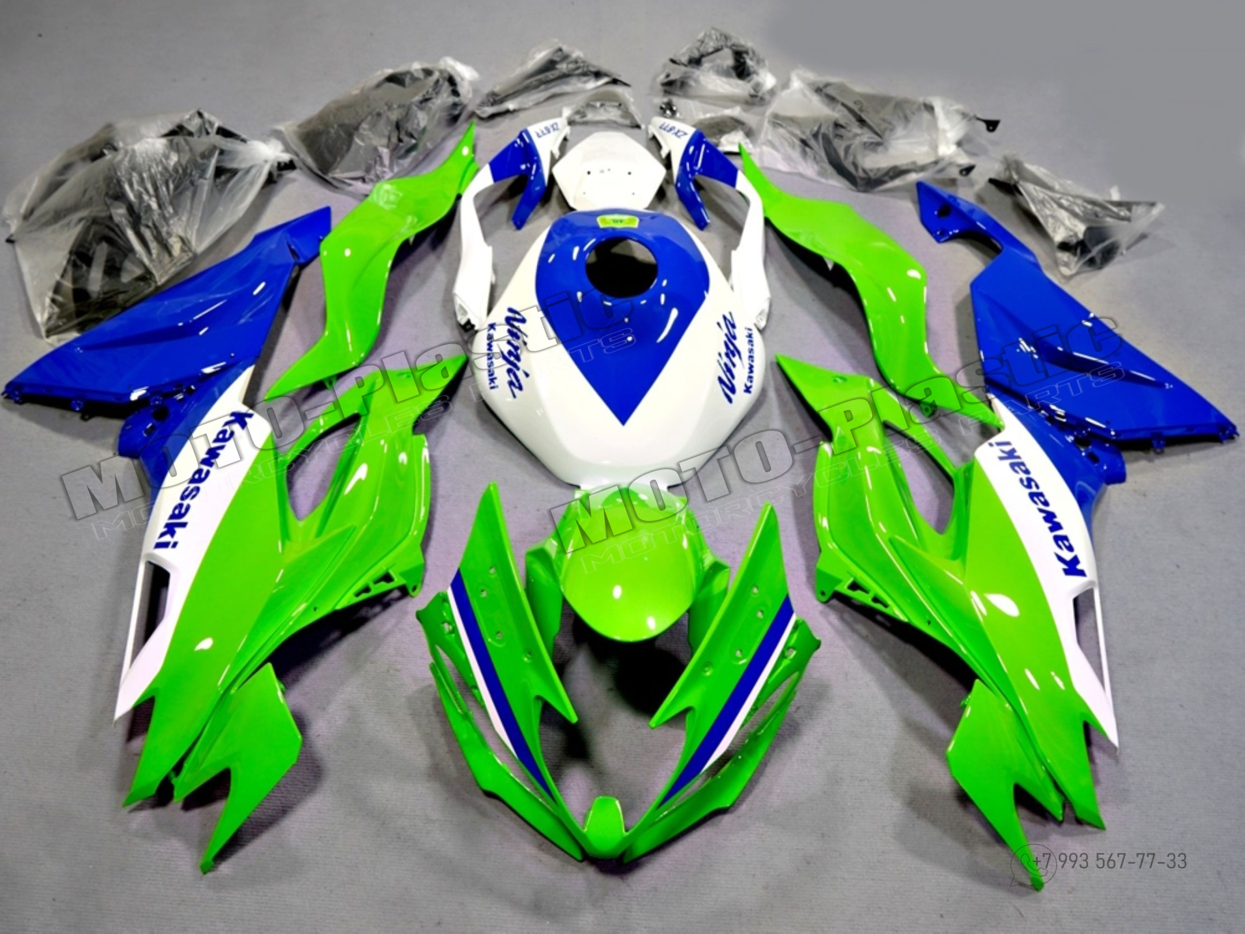 Комплект пластика Kawasaki ZX-6R 2019-2021 Синий Зеленый Белый