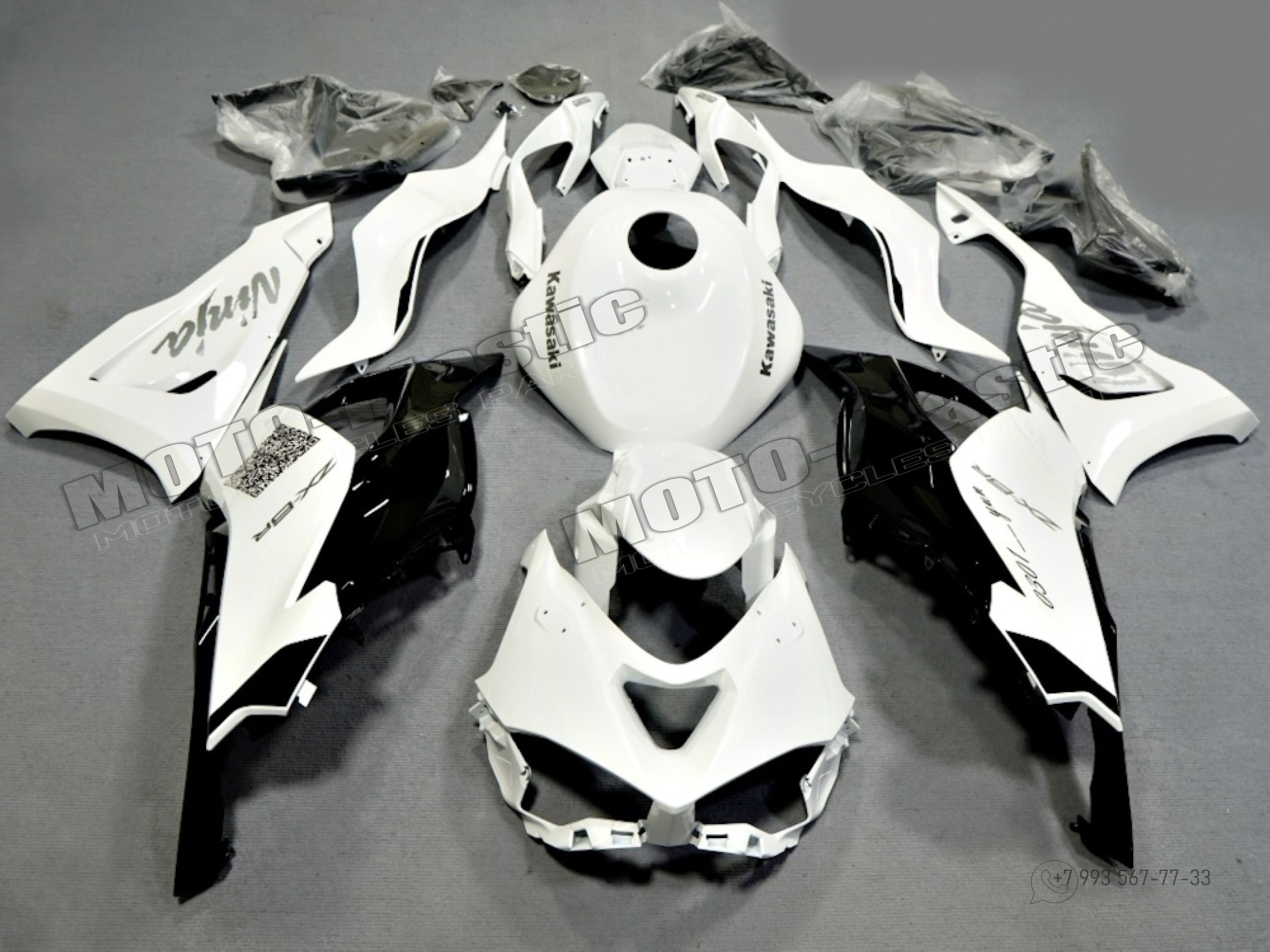Комплект пластика Kawasaki ZX-6R 2023-2024 Белый Серебряный Черный