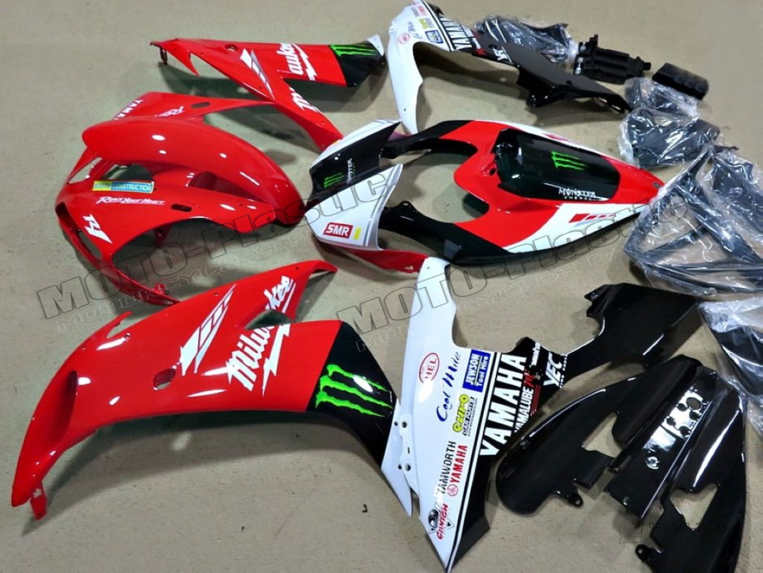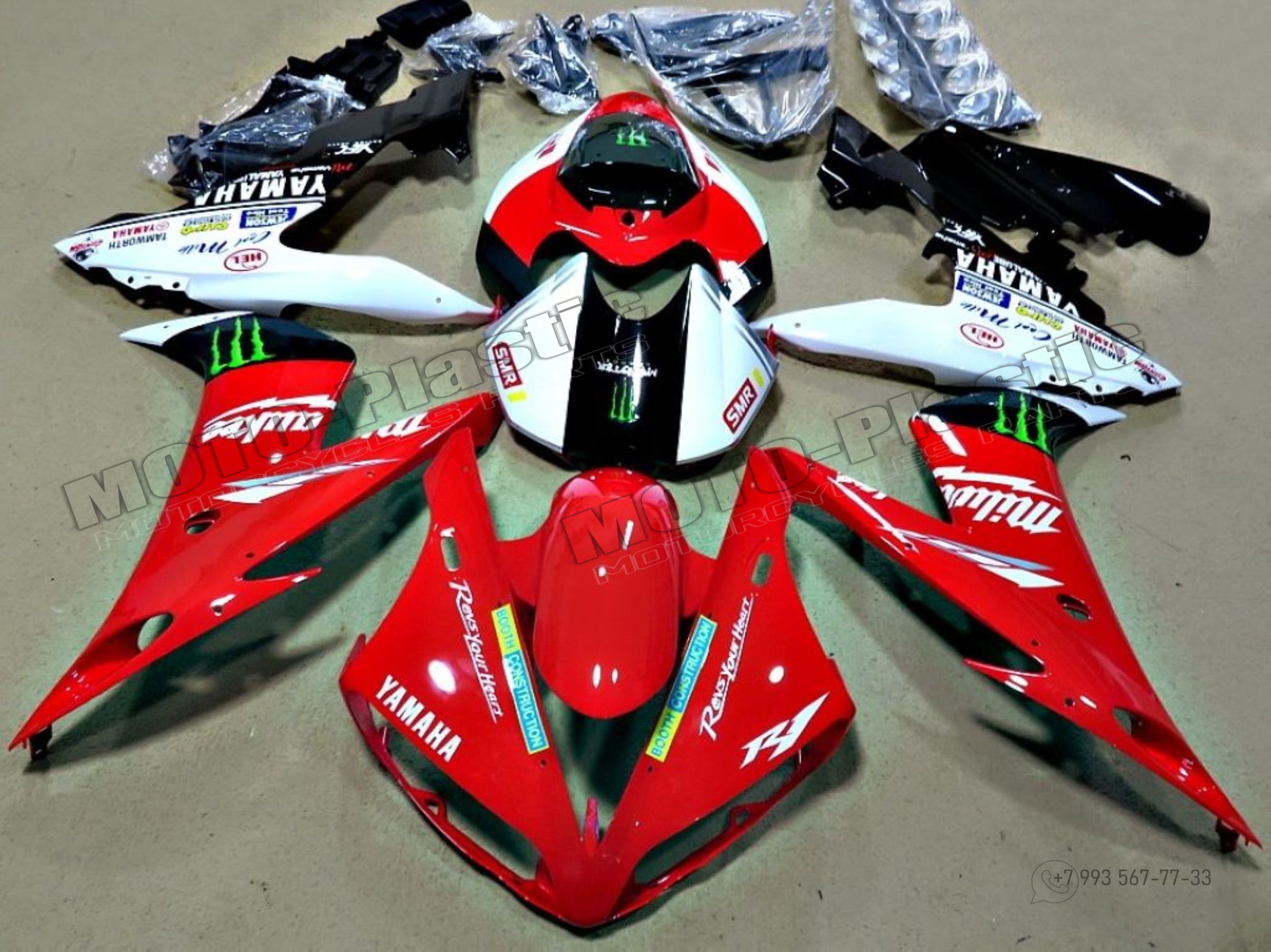 Комплект пластика Yamaha YZF R1 2004-2006 Белый Черный Monster Красный