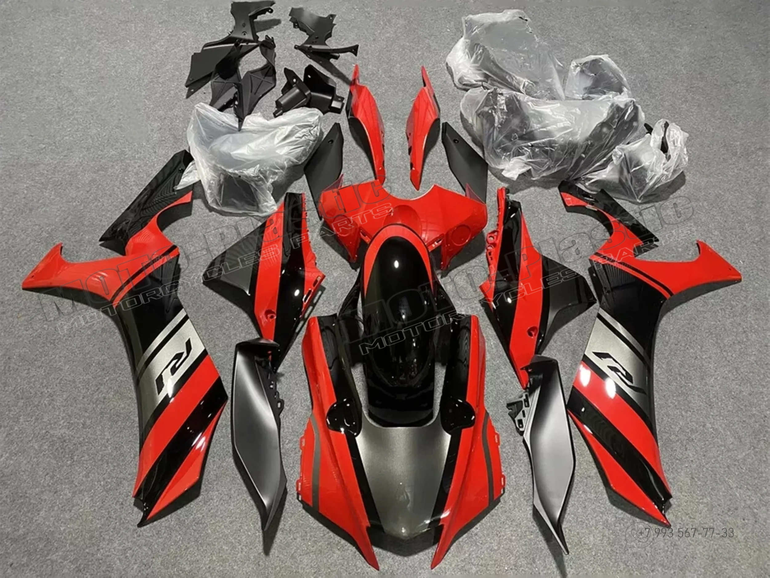 Комплект пластика Yamaha YZF R1 2021-2023 Черный Серый Красный
