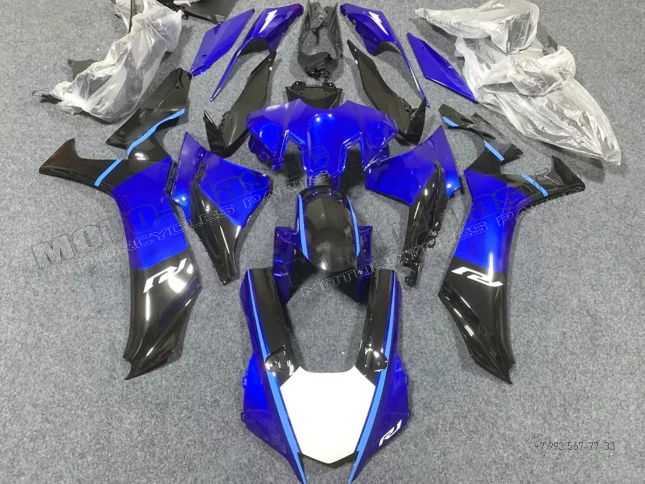 Комплект пластика Yamaha YZF R1 2021-2023 Черный Синий Белый